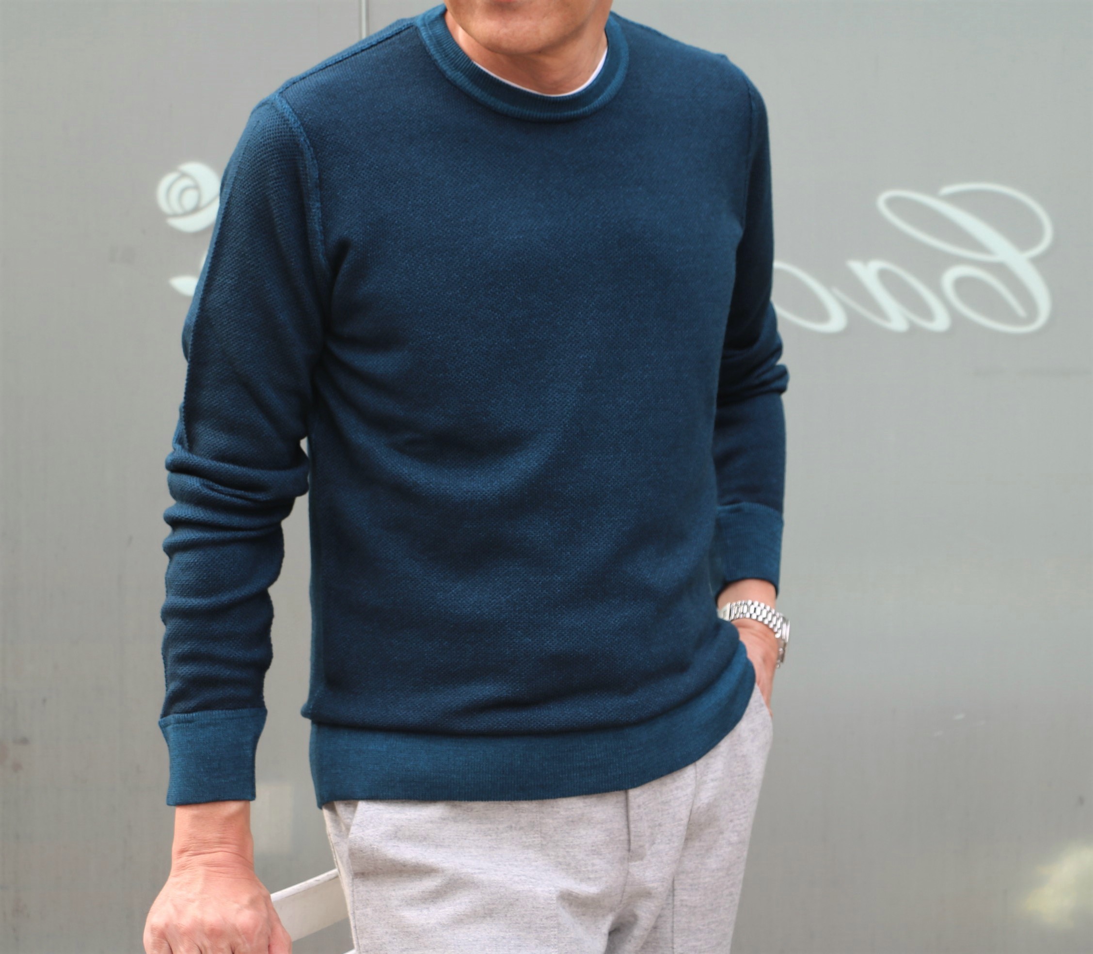 合わせたニットはFEDELI(フェデーリ)、パンツはPT TORINO(ピーティートリノ)、靴はCROCKETT&JONES(クロケットアンドジョーンズ)です。