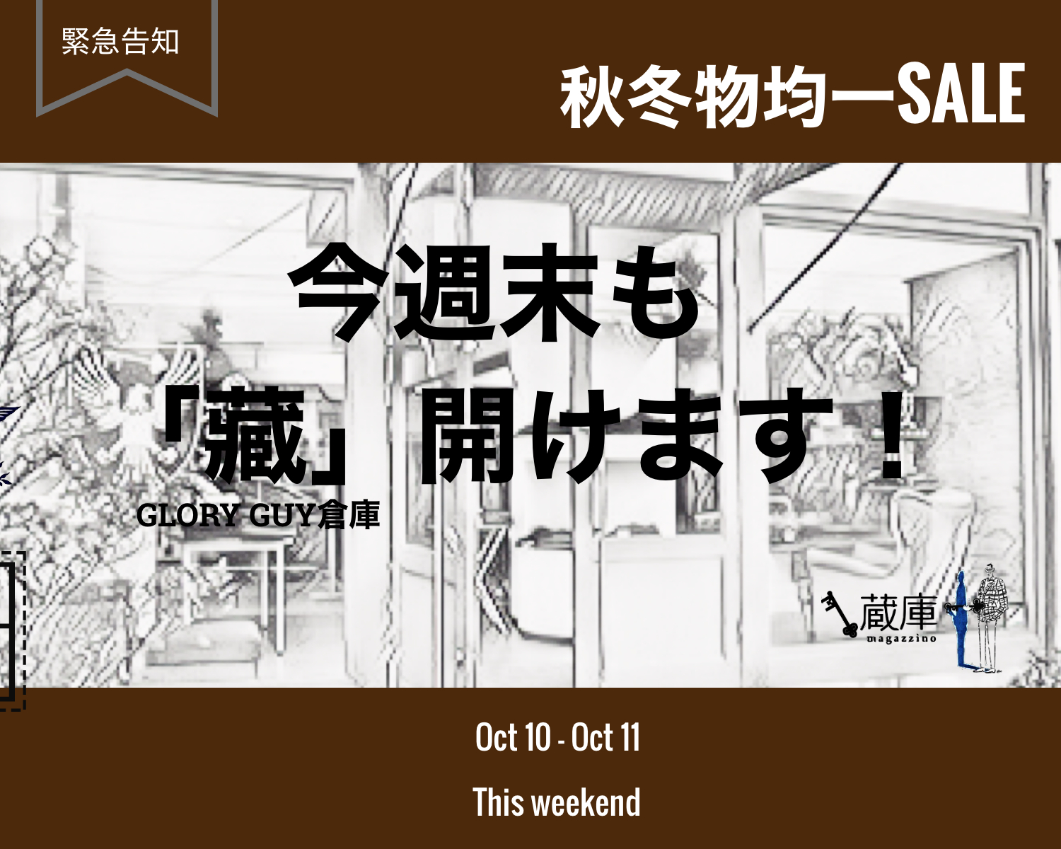 今週末も開けています。気温が下がり、更に実感できるアイテムが勢ぞろい。均一価格を含め、お値打ち商品が満載です。週末の天気が気になりますが、足元には十分お気をつけてお越しくださいませ。
