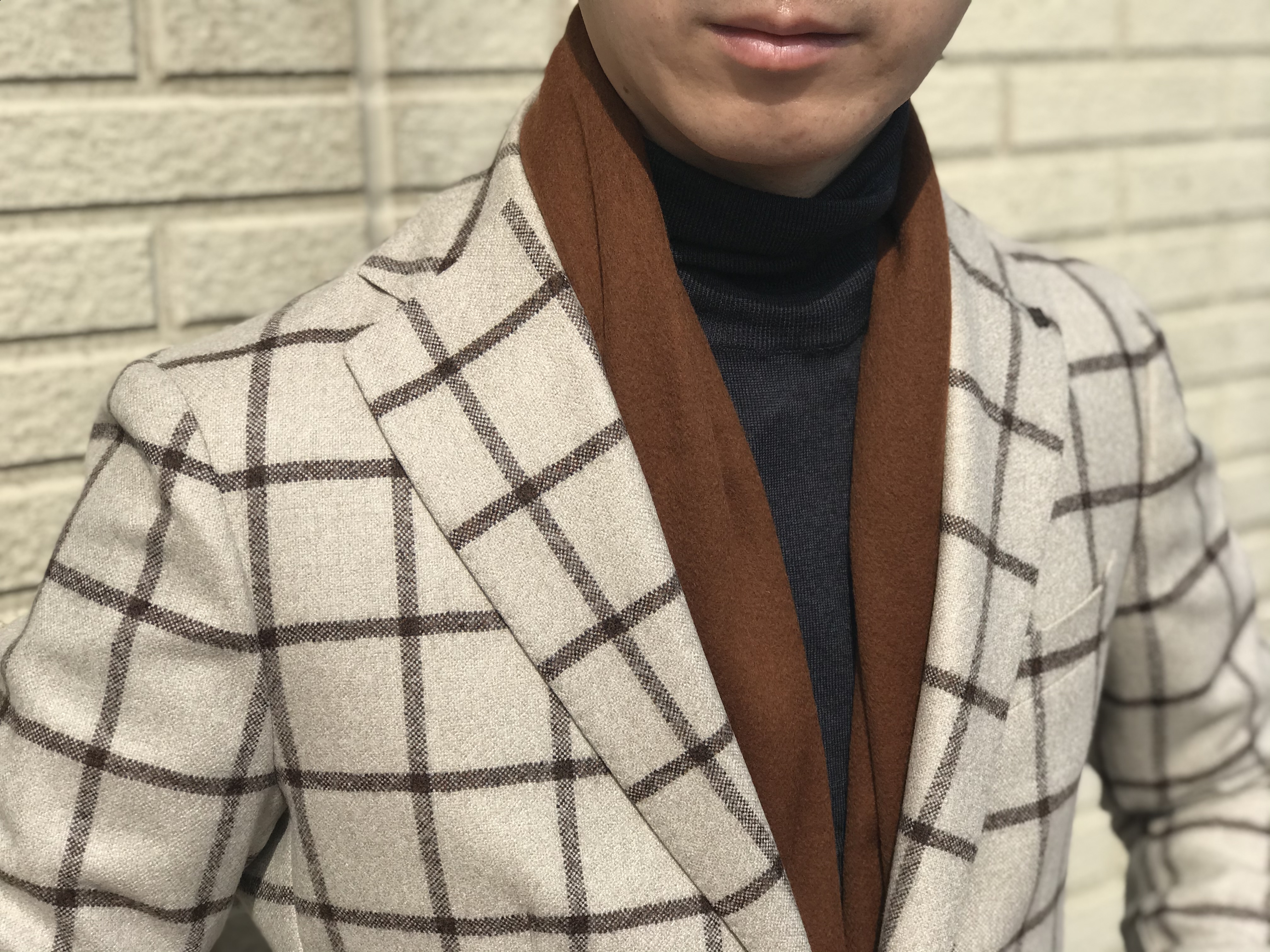昨年に引き続き登場したモノクログレンチェック×ライトグレイ無地。そして、タンブラウンに入ったネイビーのウィンドウペンチェック×チャコール無地。