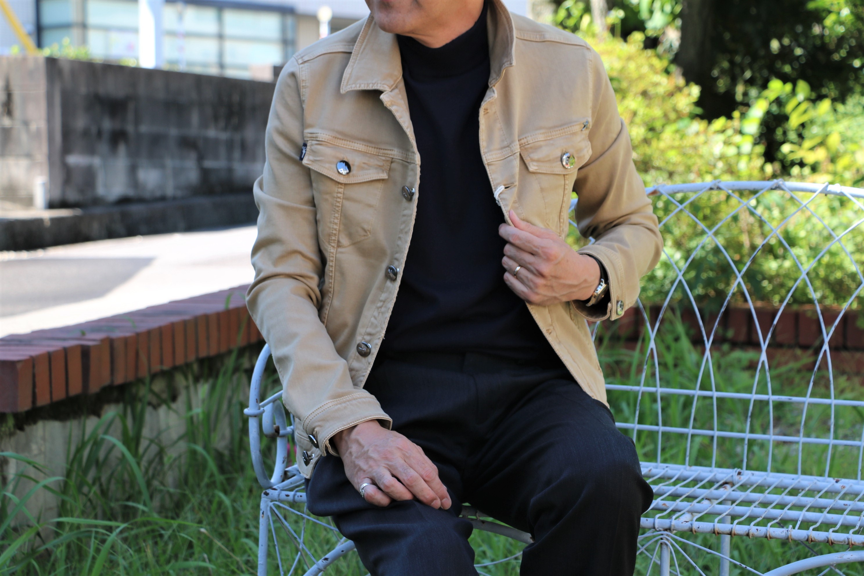 写真の二つのジャケットもモノトーン。日本人の顔にもよく合う色であり、モダンに見せるには最適な色彩ですが、合わせるとなると意外と難しい。そんなことを踏まえながら、コーディネートしてみました。
