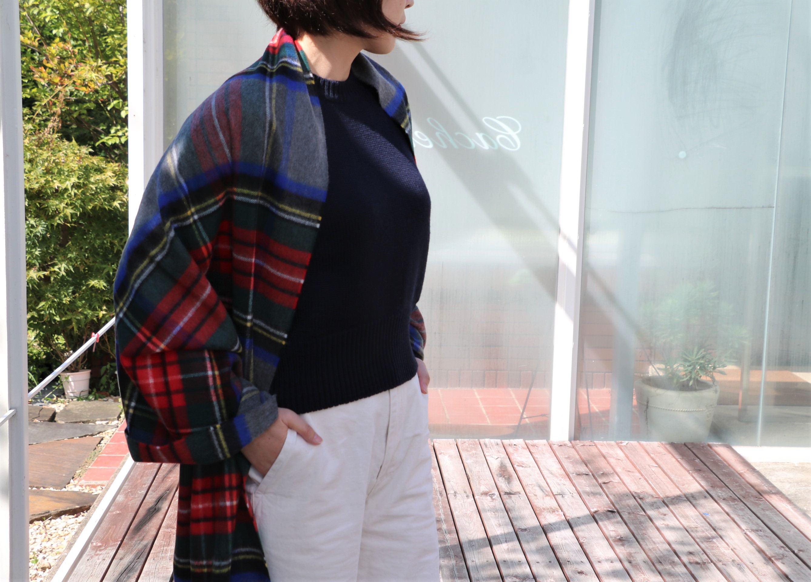 待っていた仕事が、モデルではなく、カメラマン。レディース店カシェートの撮影です。早くもJohnstons of Elgin(ジョンストンズ)です。いつも担当しているスタッフは、休み。代りにジュニアがカメラマンを務めるはずでしたが、メンズのBARACUTA(バラクータ)の接客中です。最近、お問い合わせも多く、昨日のブログで彼が書いていたように、視聴回数がかなり伸びているようです。