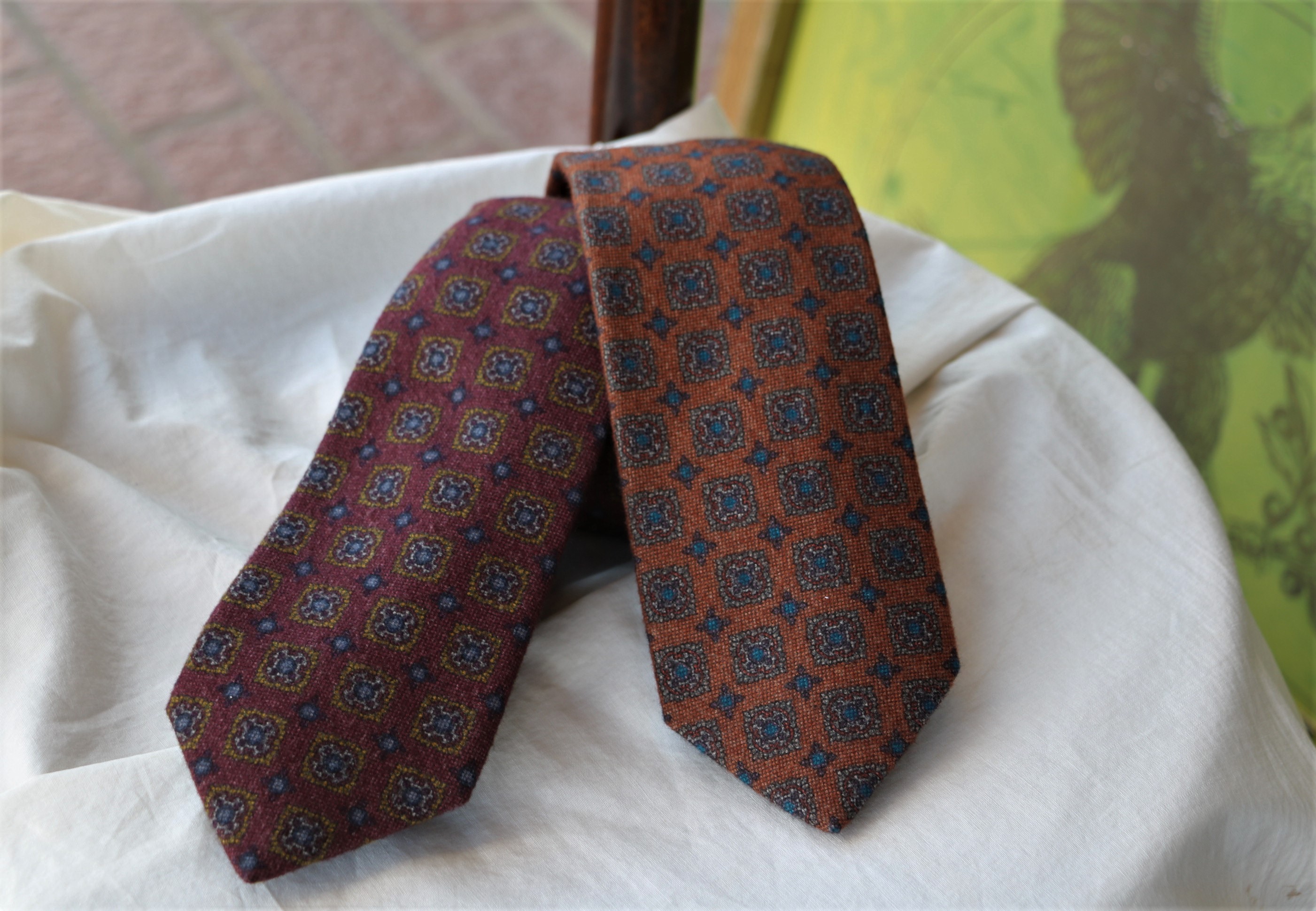 昨日、ご紹介のTITO ALLEGRETTO(ティト アレグレット)のスーツに合わせていました。シルクと違い、控えめな色出しのウール。全体の色合いに溶け込みながら、存在感を示します。