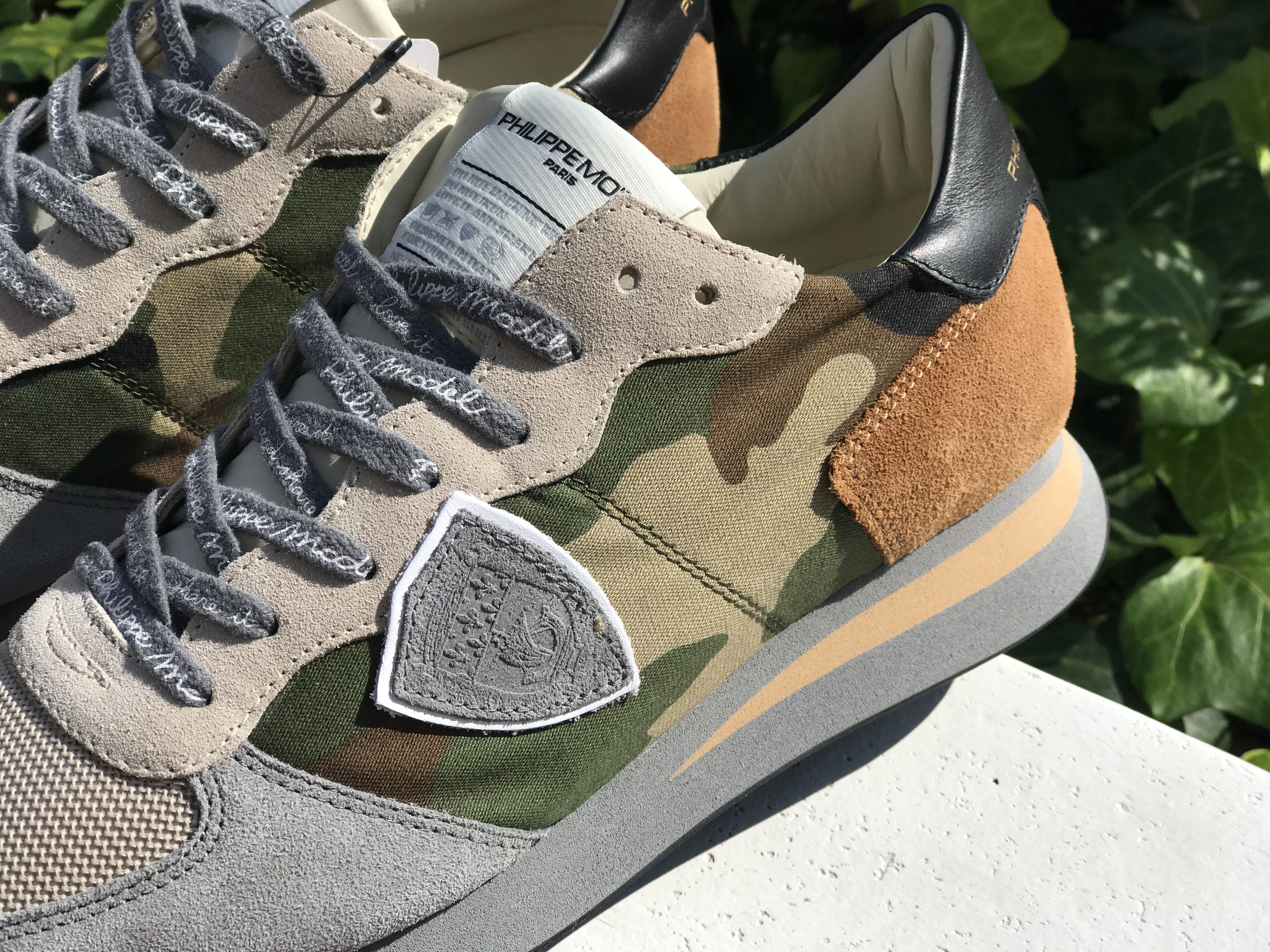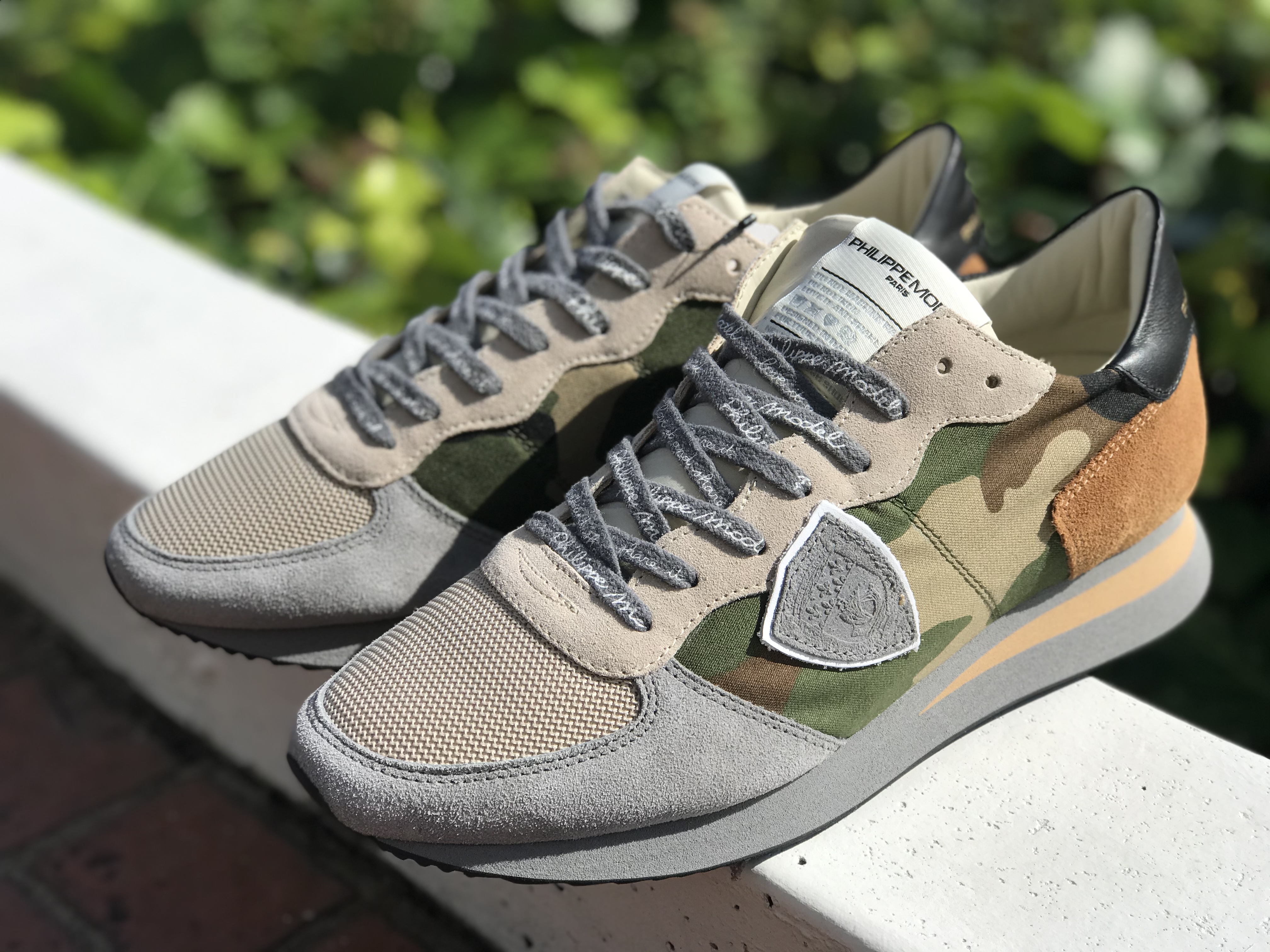MODEL:「TROPEZ X」カモフラ柄 スエード×キャンバスコンビスニーカー