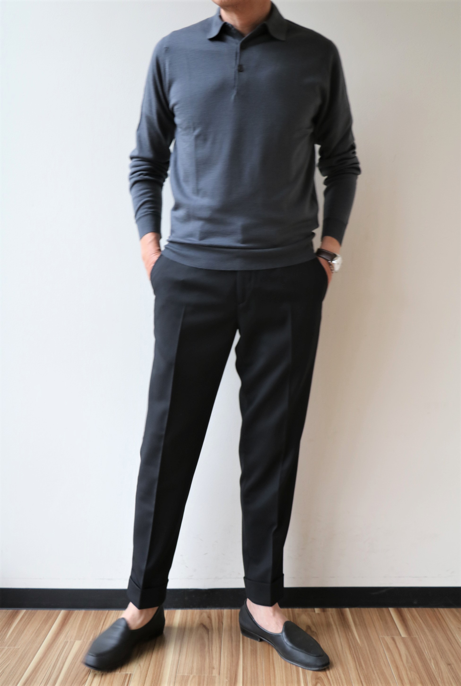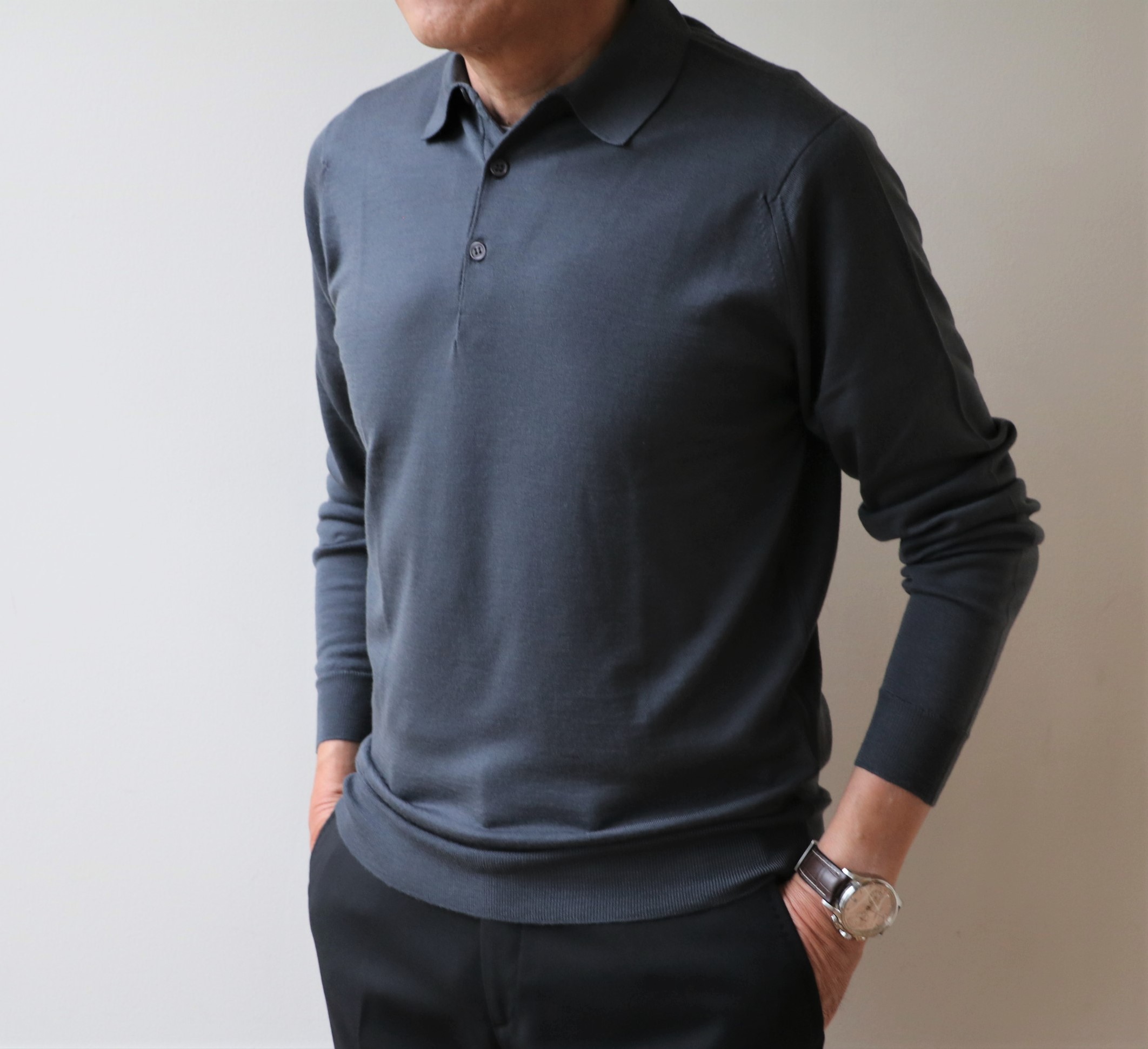 【JOHN SMEDLEY/ジョン スメドレー】の中で代表的なのが、ポロニット。従来のモデルをよりモダンに改良です。程よくリラックスした雰囲気ながらも、台襟や袖口、裾口などをシャープにすることで、伝統的なポロニットとは違う表情を持たせています。