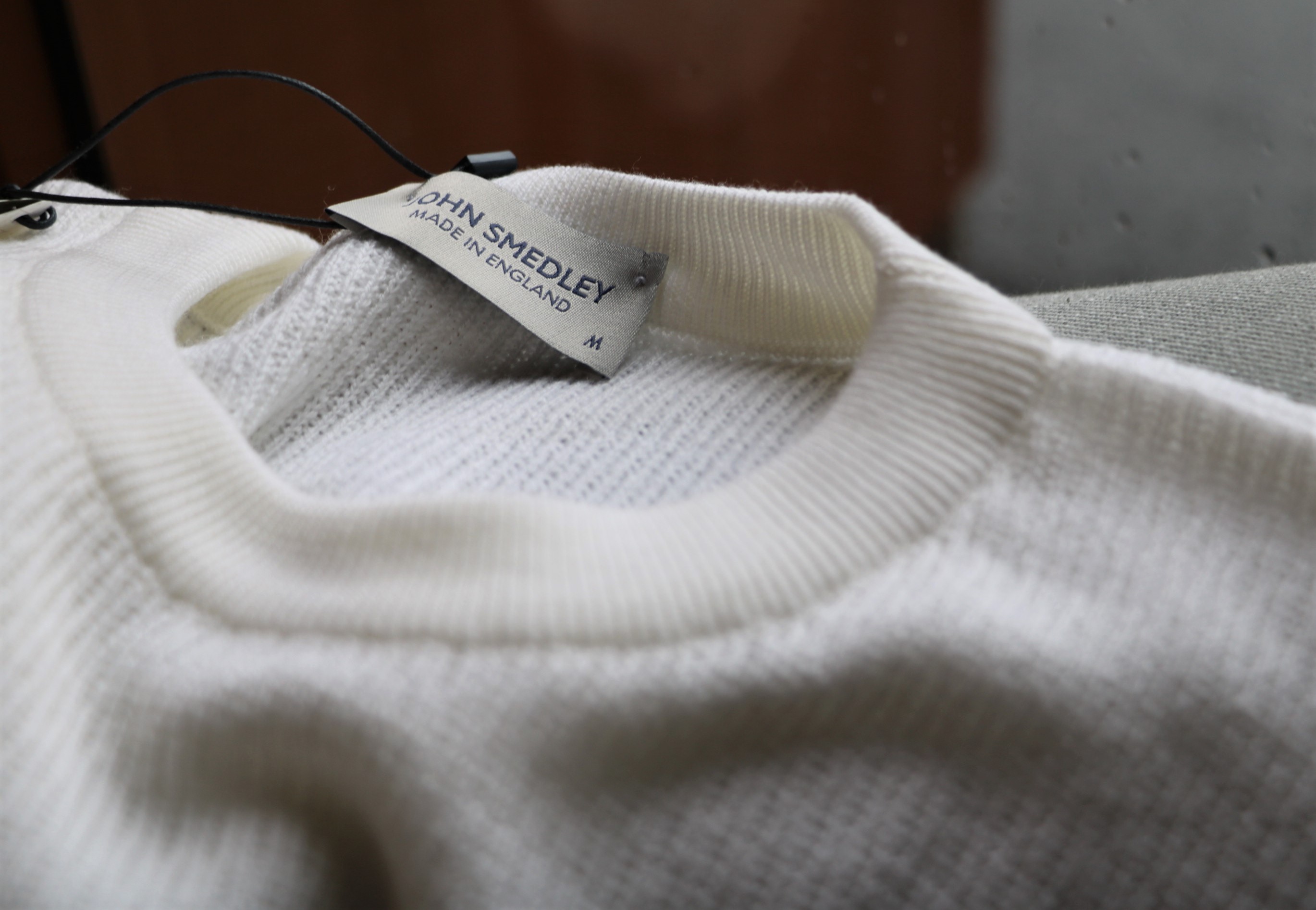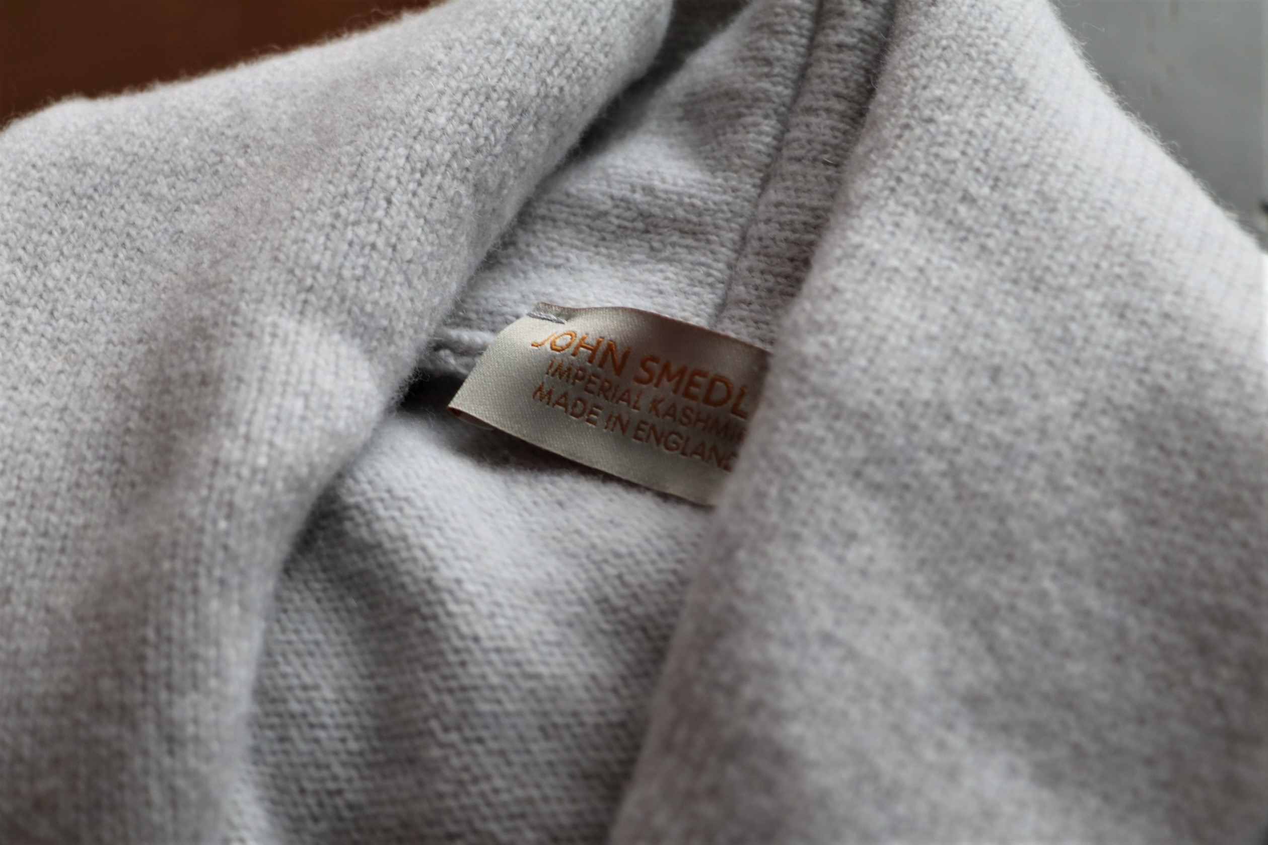 今季、初のご紹介となる【JOHN SMEDLEY/ジョン・スメドレー】。タグに注目ください。ブランドロゴの下に"IMPERIAL KASHMIR" の文字。インペリアル カシミールとは、インド北西部からパキスタン北東部に広がるカシミール地方でとれた最上級のカシミアのこと。定番のメリノウールとは別のコレクションです。