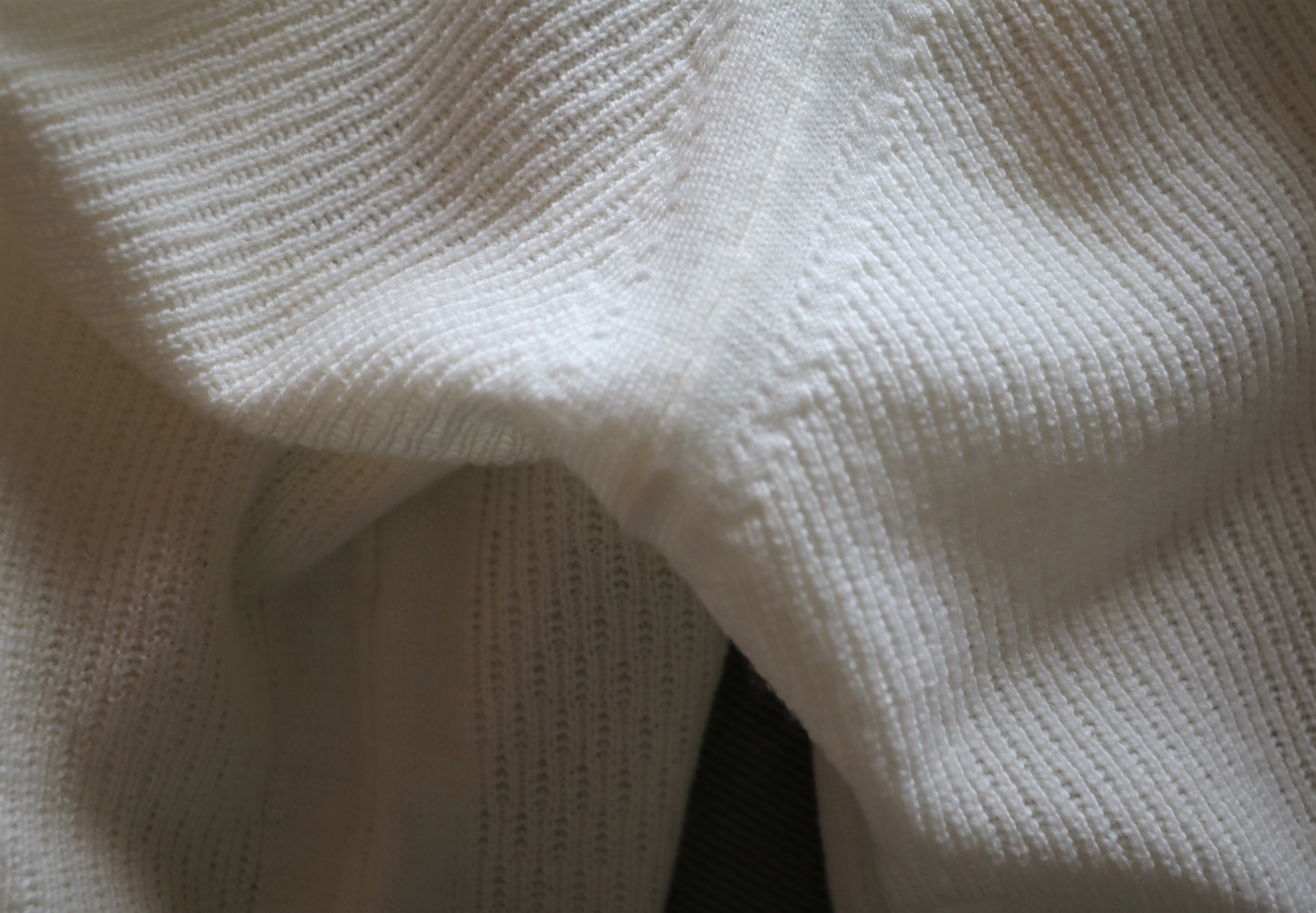 新しくついたモデル名は「A4463」。時代を超えて多くの方に愛されてきたメリノウールの30ゲージ。温度調整する機能や伸縮性の高さ、自宅の洗濯機でも洗えるなど、生活の必需品として活躍します。