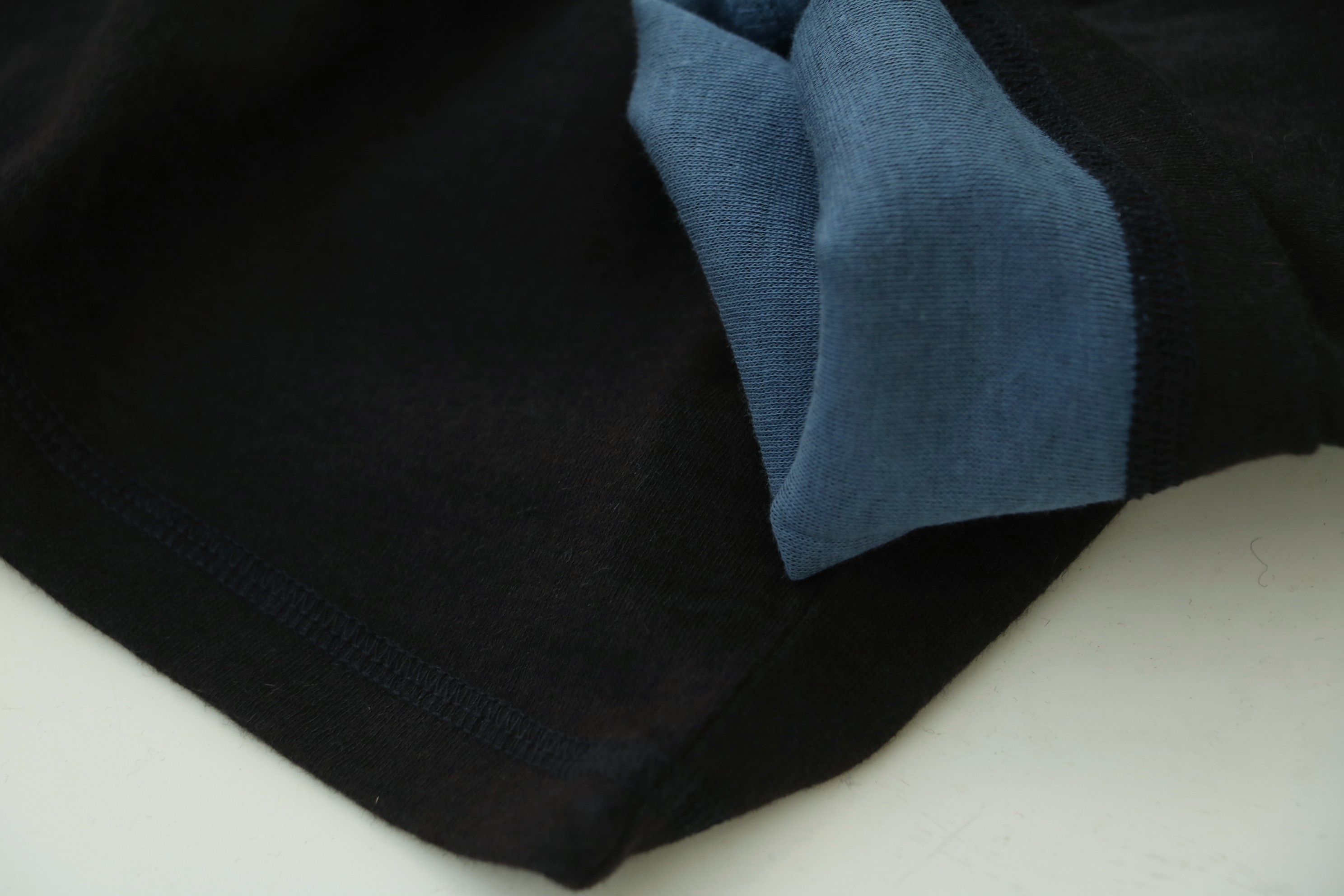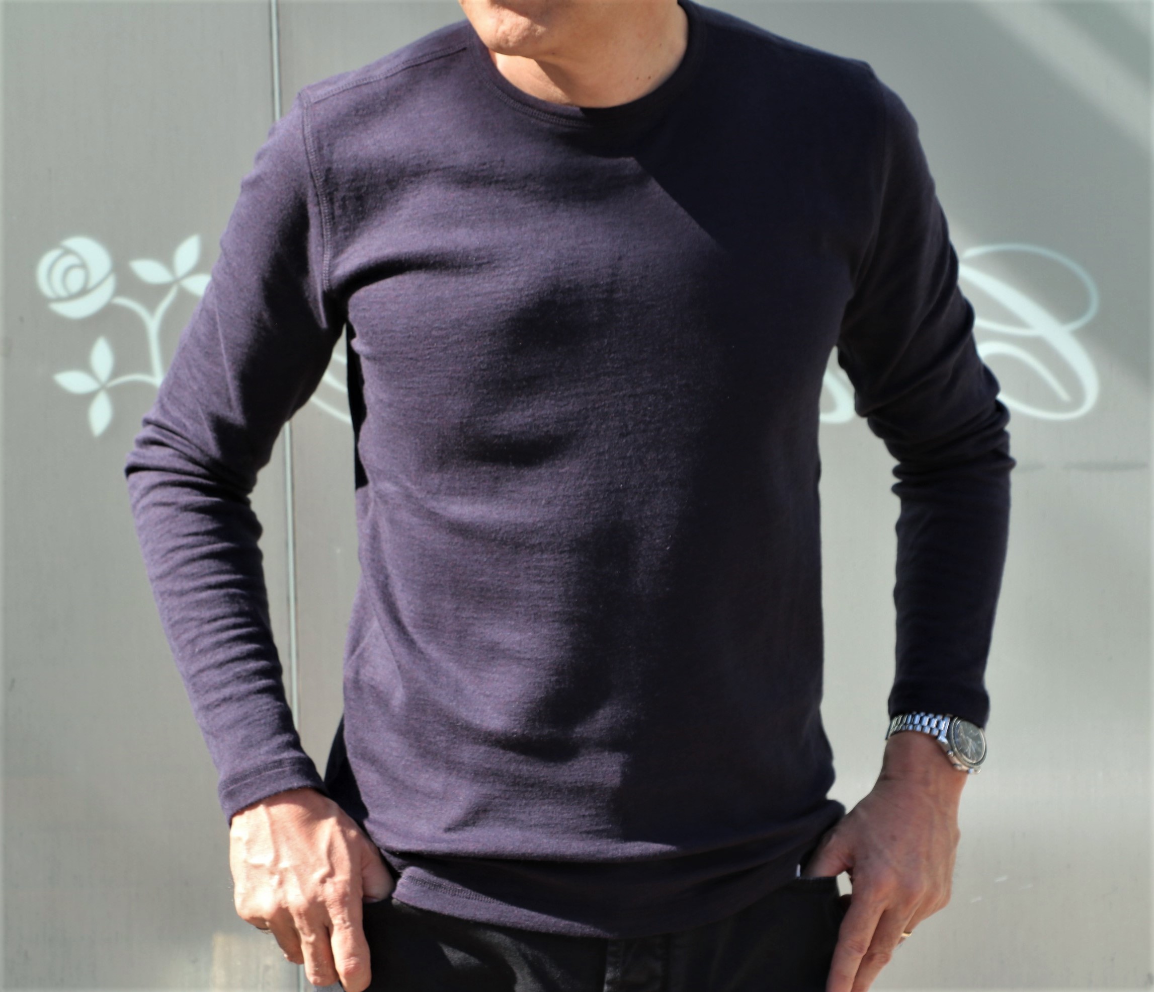 着心地は?と訊かれれば、とろけそうと答えます。肌触りといい、伸縮性と言い、申し分のない着心地です。ダブルフェイスによる奥行きのある色合いも魅力です。