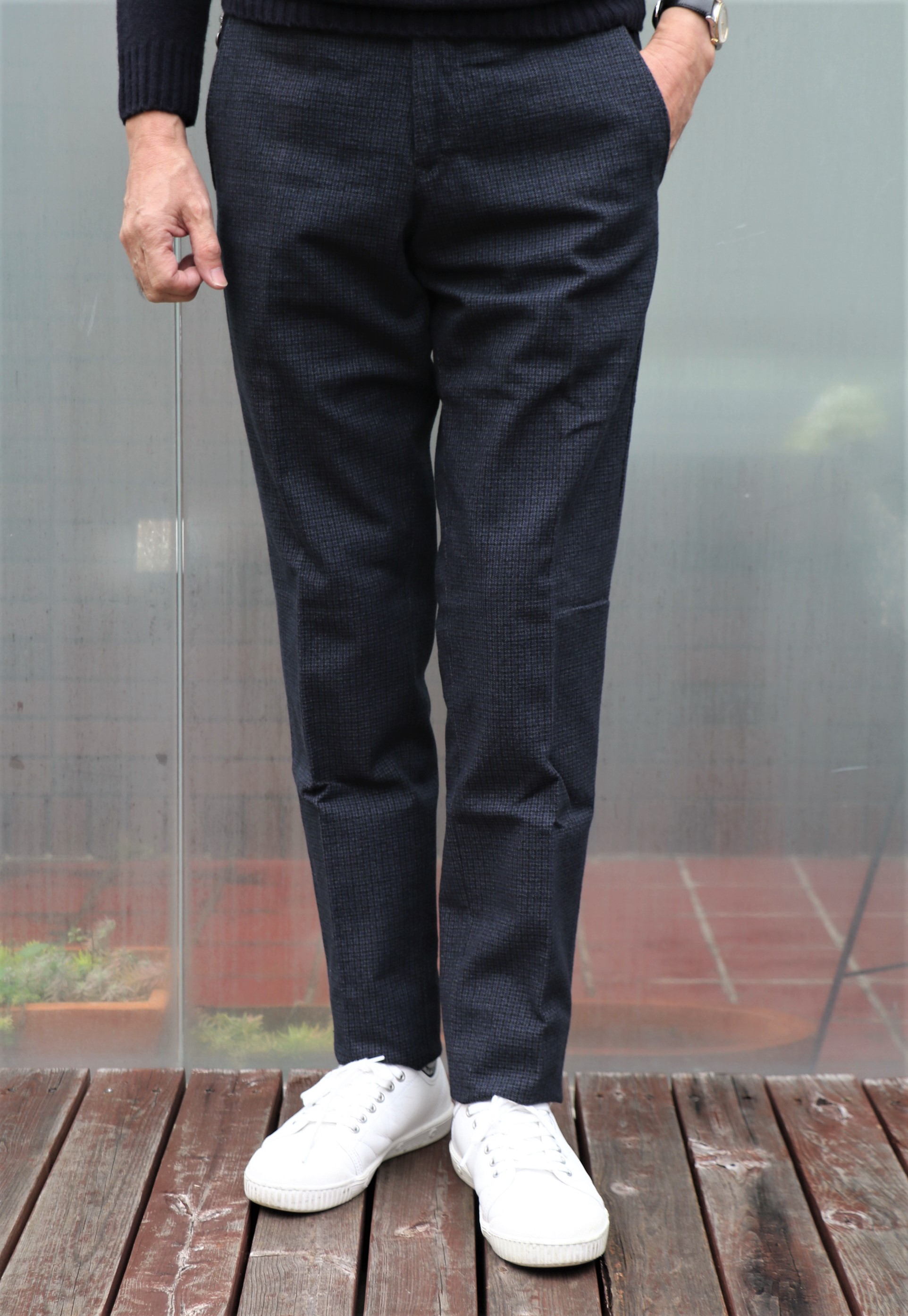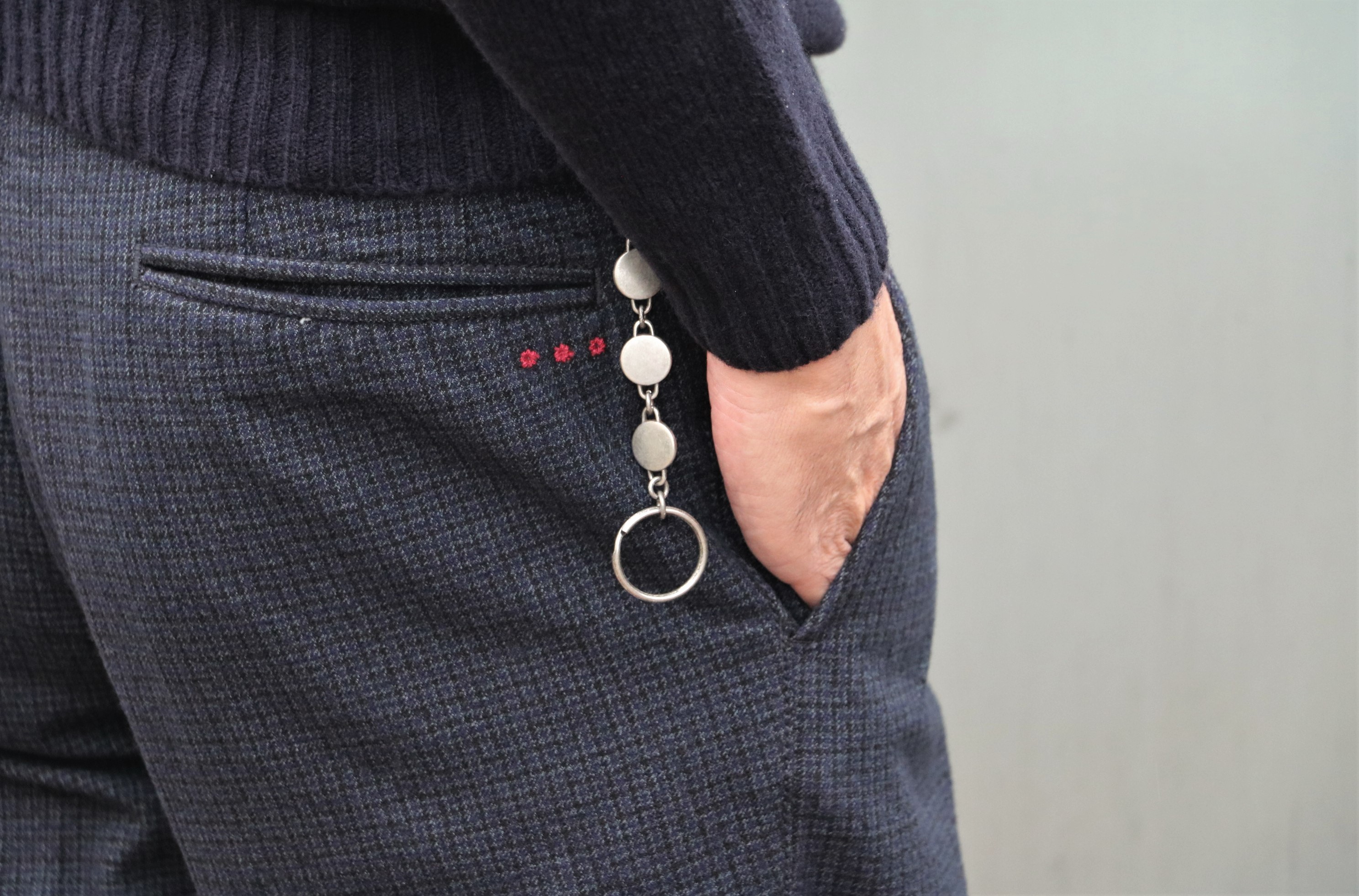 伝統柄ガンクラブチェックも、ずいぶんモダンな表情に。程よくハリコシを持たせたコットン地との相性は抜群。控えめな柄だけに無地に飽きた方が揃えられるのにちょうどよいパンツになるでしょうか。安定感のある穿き心地は言うまでもありません。
