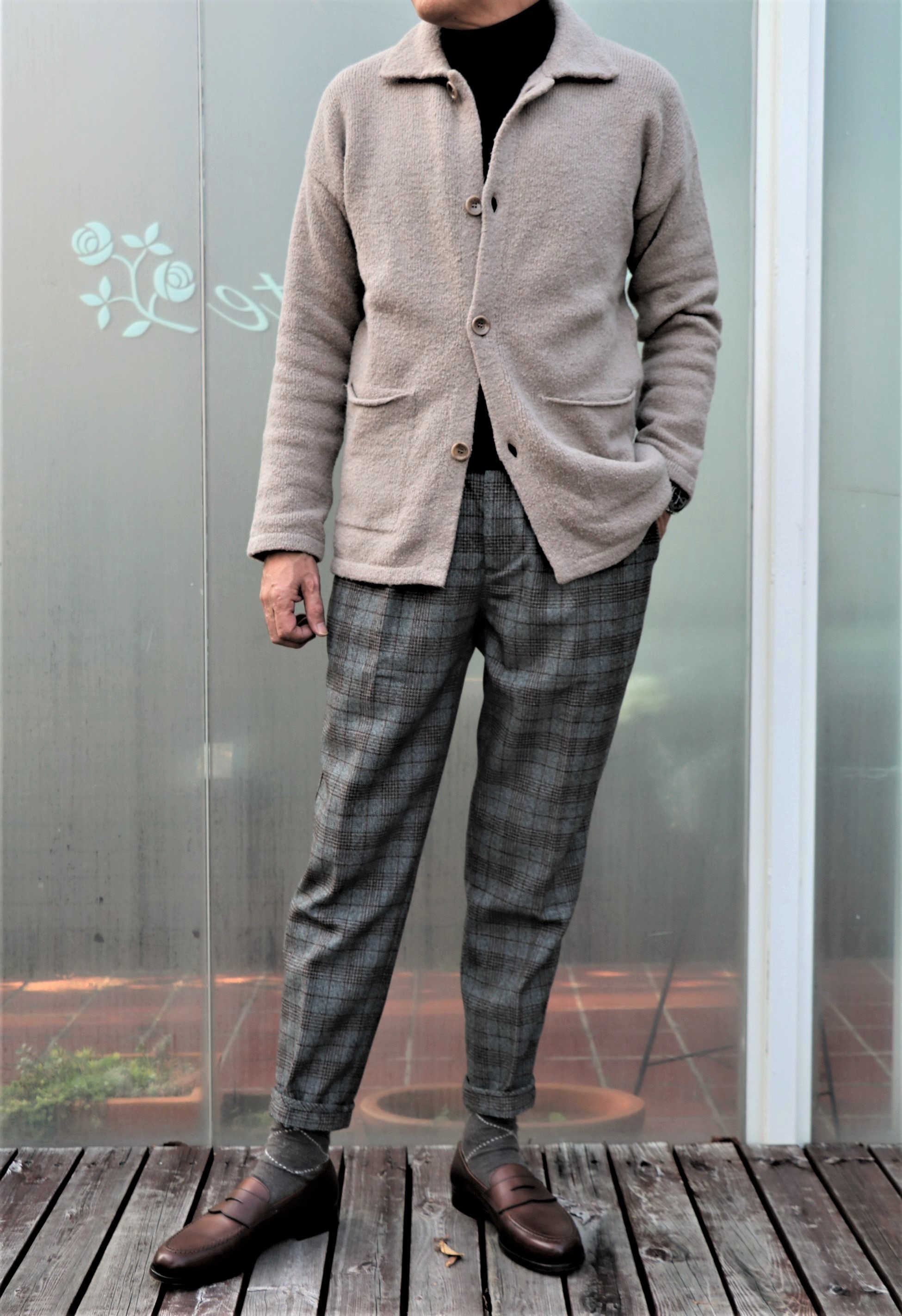 私物です。ある程度、きちんと見えて、少しでも楽な服装を...が、本日のテーマ。今日の気温を確認して、クローゼットの中を見渡し、まだ早いと思うのが、ZANONE(ザノーネ)のミドルゲージタートル。まだまだ、そこまでは寒くはありません。ならば、これと選んだのが、オーストリアのニットブランド【PHILL PETTER/フィルペター】。今季のご案内は、10月23日のブログでした。そしてボトムはベルギーの【Borelio/ボレリオ】。どちらも力の抜け具合が似ていて、ここ数年、自分のワードローブに最も多く加わっているブランドです。
