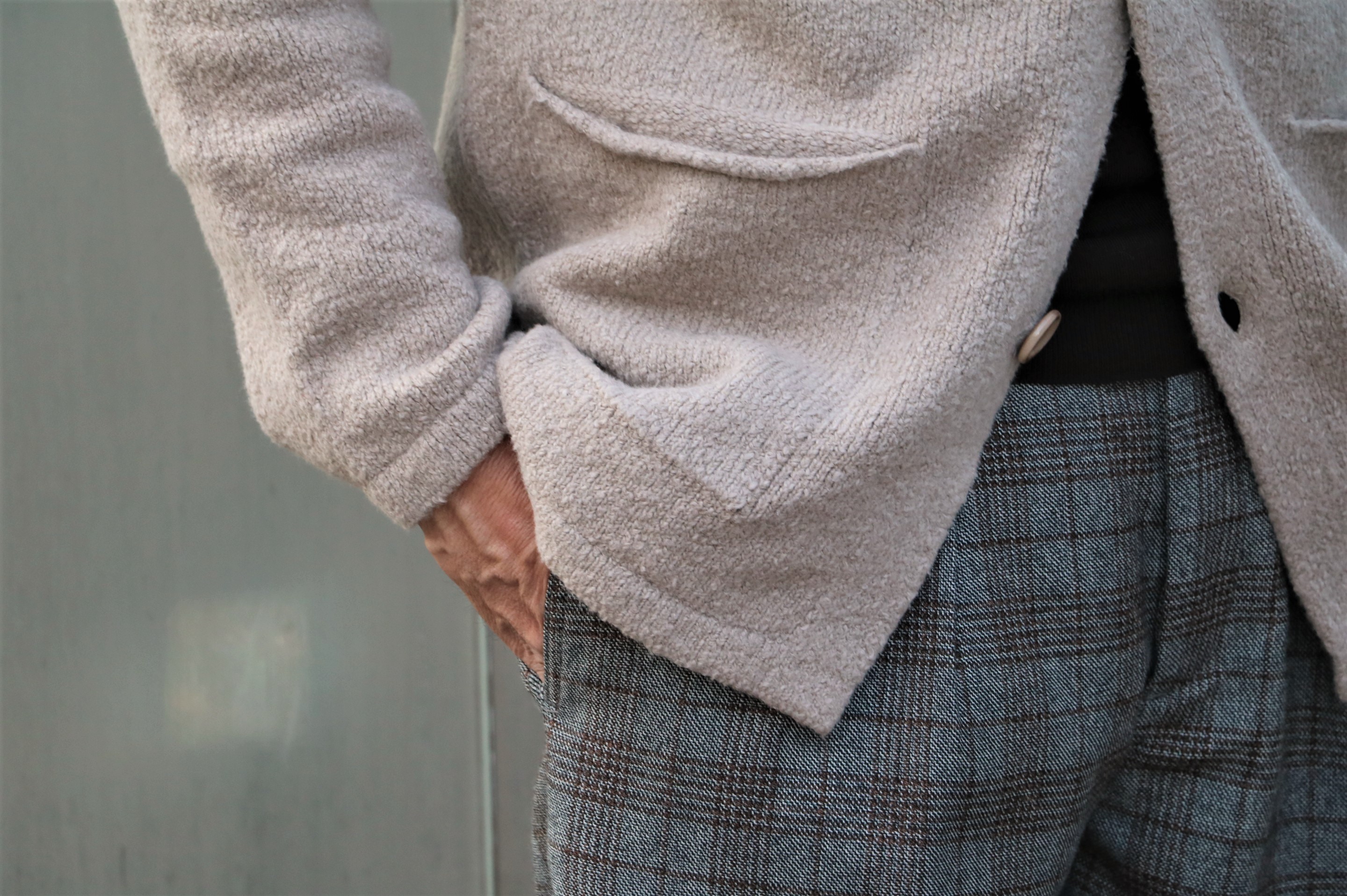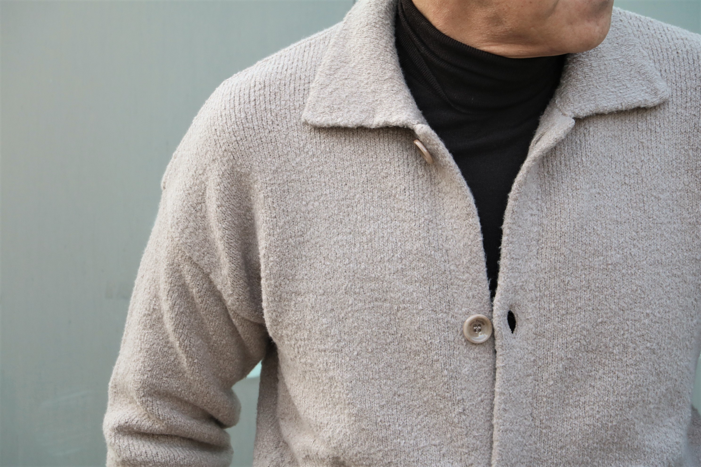 温かみなる表情ながらも肌への当たりはコットンの優しさ。そして一番の魅力は、着用感のない軽さでしょう。昨年、色違いのブルーも購入してしまったほどです。今季は4色オーダーしていましたが、1色はキャンセルになってしまいました。