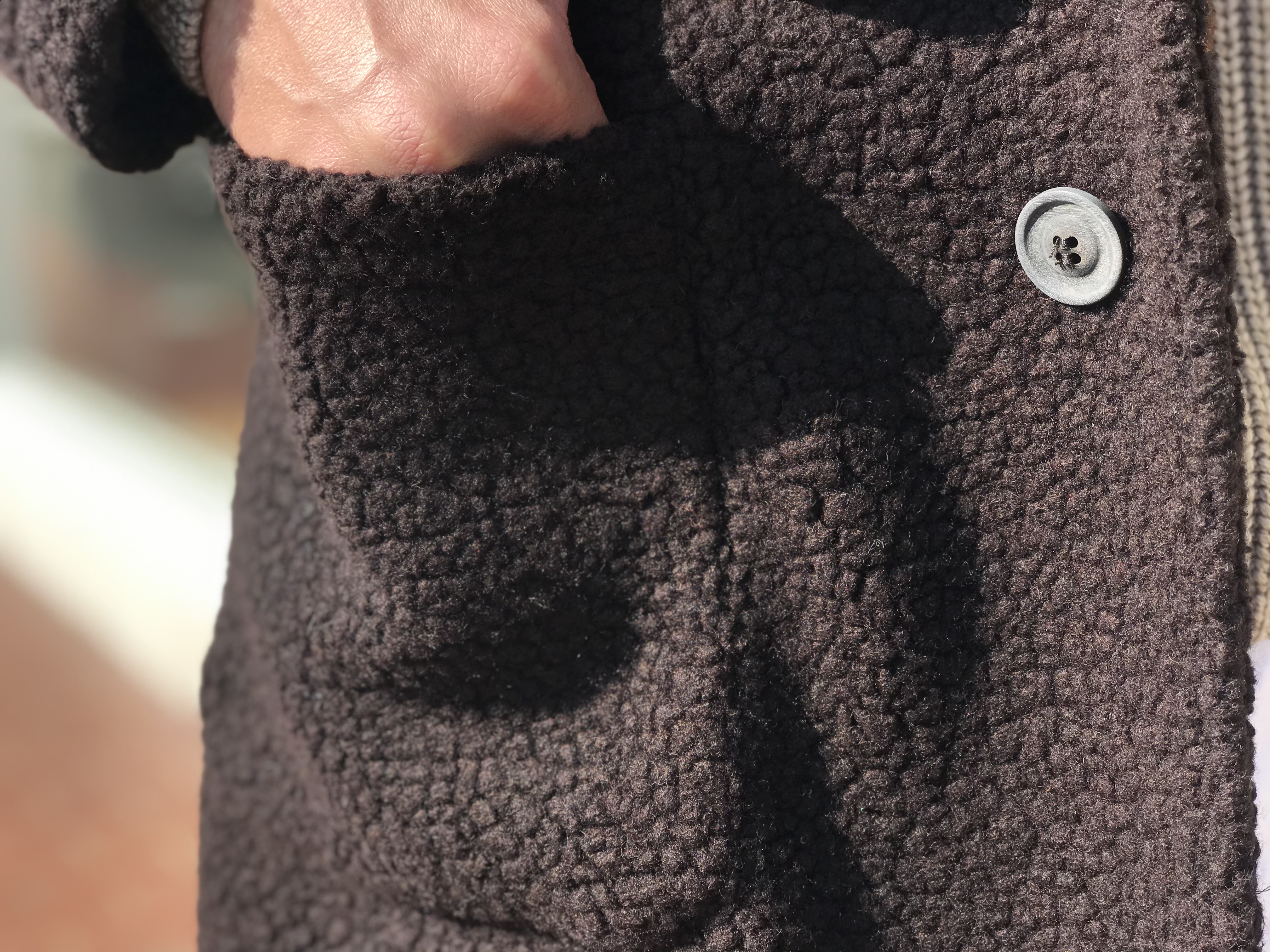 モコモコとした可愛げのある見た目が女子目線を奪う...なんて邪な話は某雑誌にお任せ。男子目線で見れば、キッチリかっちりをひと休みした、親しみやすい羽織りものといったところでしょうか。