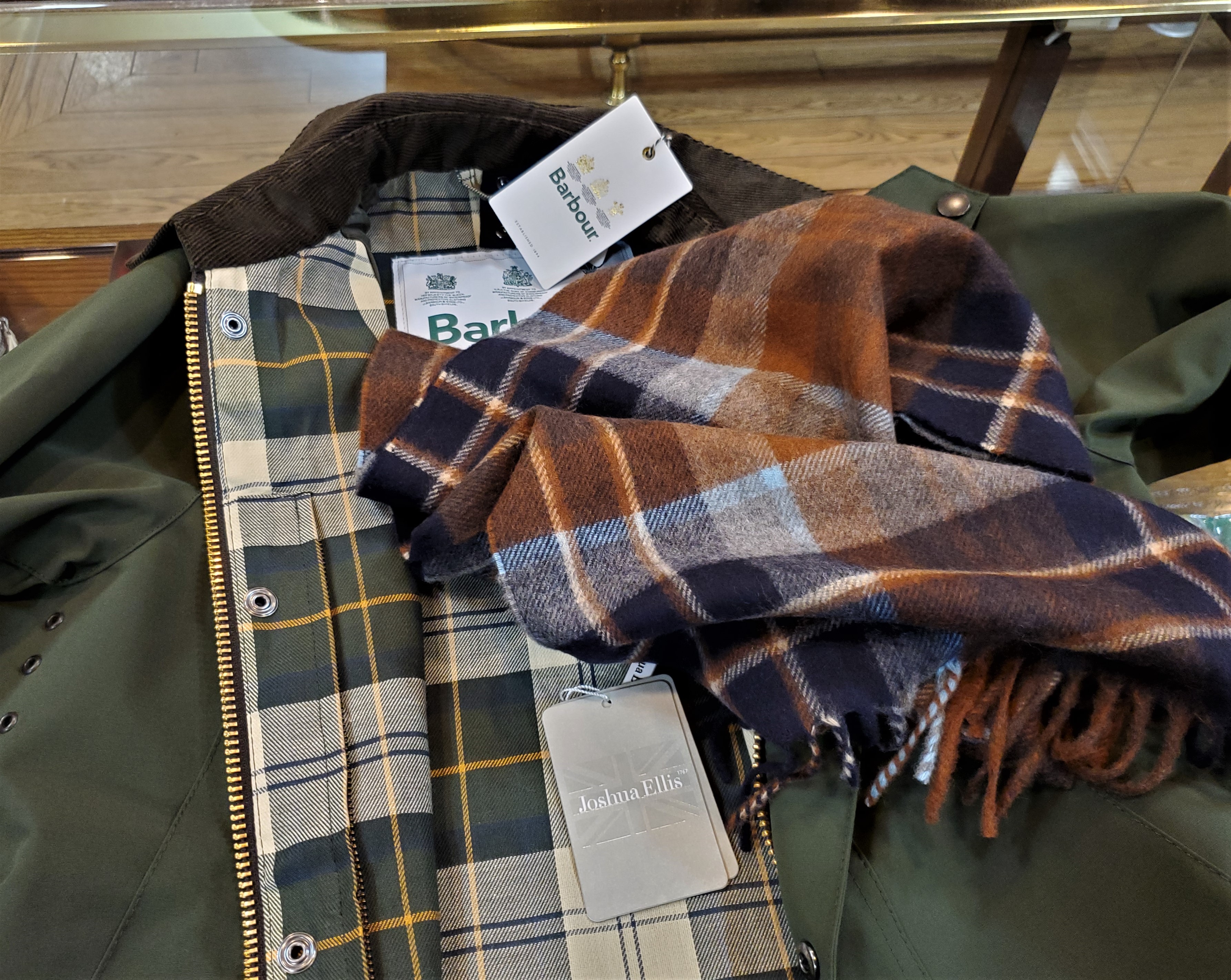 誰かと思えば、やはりこの方、ナグラさんです。英国歴50年?だけに、このブランドには目がないはず。酒と車の次ぐらいでしょうか。隠れ場カシェートで展開中のBarbour(バブアー)。実は、このジャケットは現在、海外で仕事をされておられ、12月に一時帰国されるお客様のもの。この「SL Bedale」に合わせてマフラーを選んで欲しいというご要望があり、グローリーガイに移動させたのです。そこをすかさずは、さすが。でもよく似合っていました。いつか、彼は隠れ場カシェートの担当になるかもしれません。