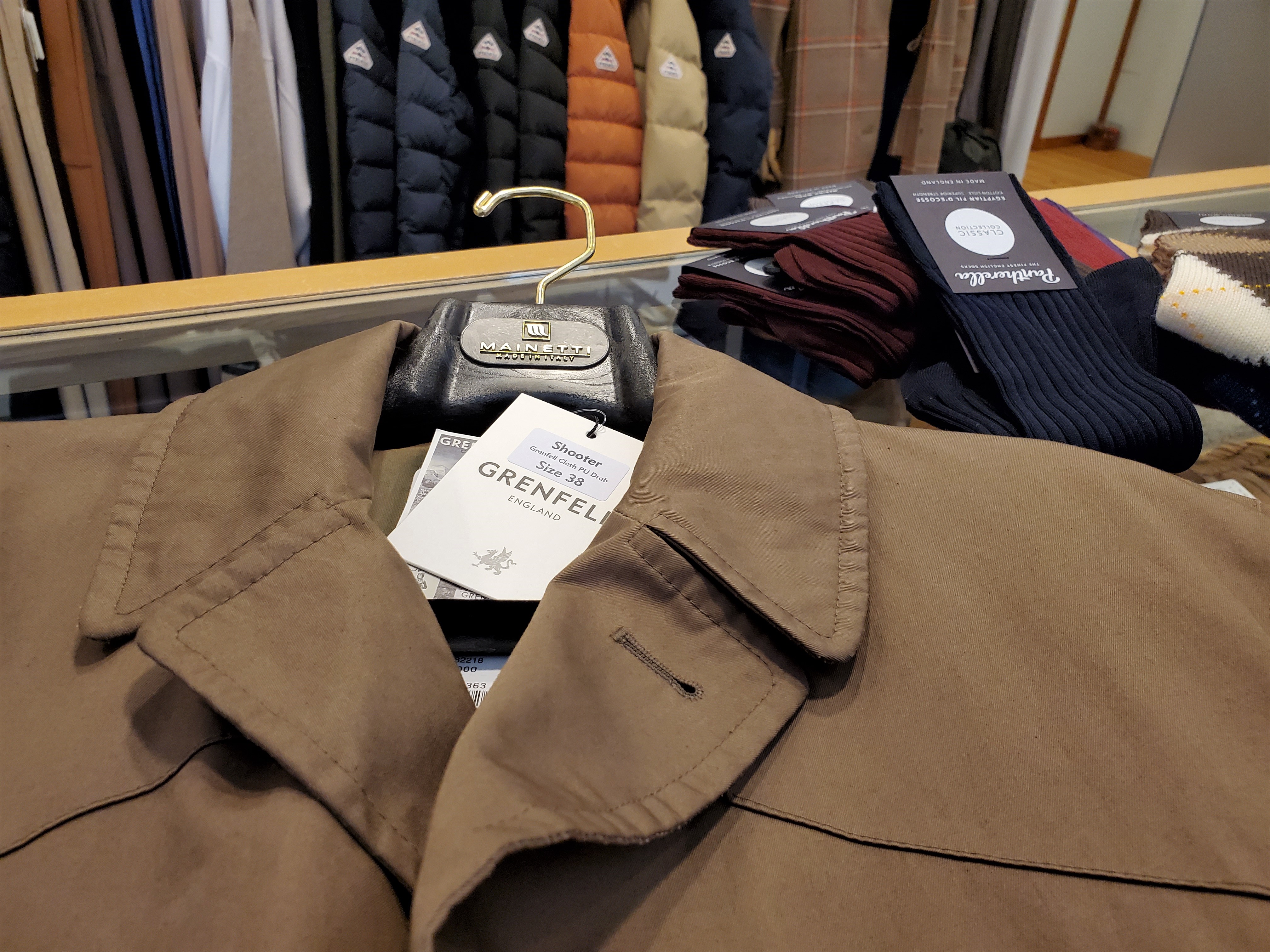 BARACUTA(バラクータ)、Barbour(バブアー)と並び、隠れ場カシェートの看板ブランドの【GRENFELL/グレンフェル】。公開されたYou Tube「SUGURU STORY by gloryguy」の特集の際には入荷していなかったモデルで、まだブログにも未公開の「Shooter」。色目もブラウンと魅力的です。カシェートオーナーのよしのさんは「買っちゃったらぁ~」なんて気軽に押してくれましたが、それはまずい。後で何を言われるか分かりませんので、一先ず熱を冷まします。