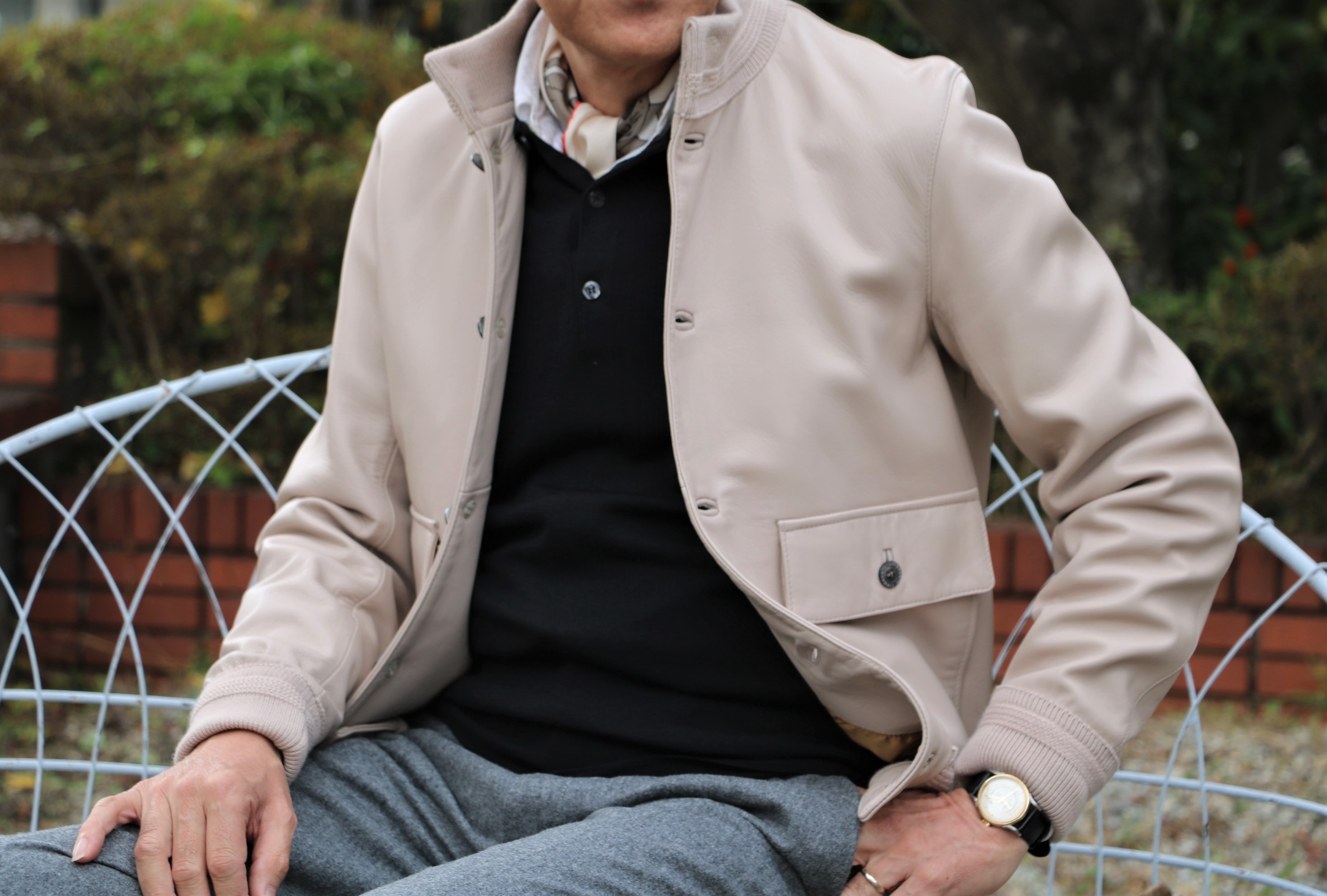 ベンチに座ると、どうも爺臭くなってしまうのはどうして?がテーマではありません。昨日の出で立ちが本日のご提案です。その前に、久しぶりにモックネックが人気という話。昔はハイネックといってオジサンたちのゴルフウェアとしてのイメージで、当時の私たち若者は敬遠していた襟型です。モックネックのモックは「偽の」という意味で、偽タートルのこと。言い方が変わるだけで、新鮮に見えるのが時代のマジック。タートルネック人気がきっかけで延長線上にあるモックネックタートルが再び注目を浴びているのでしょうね。