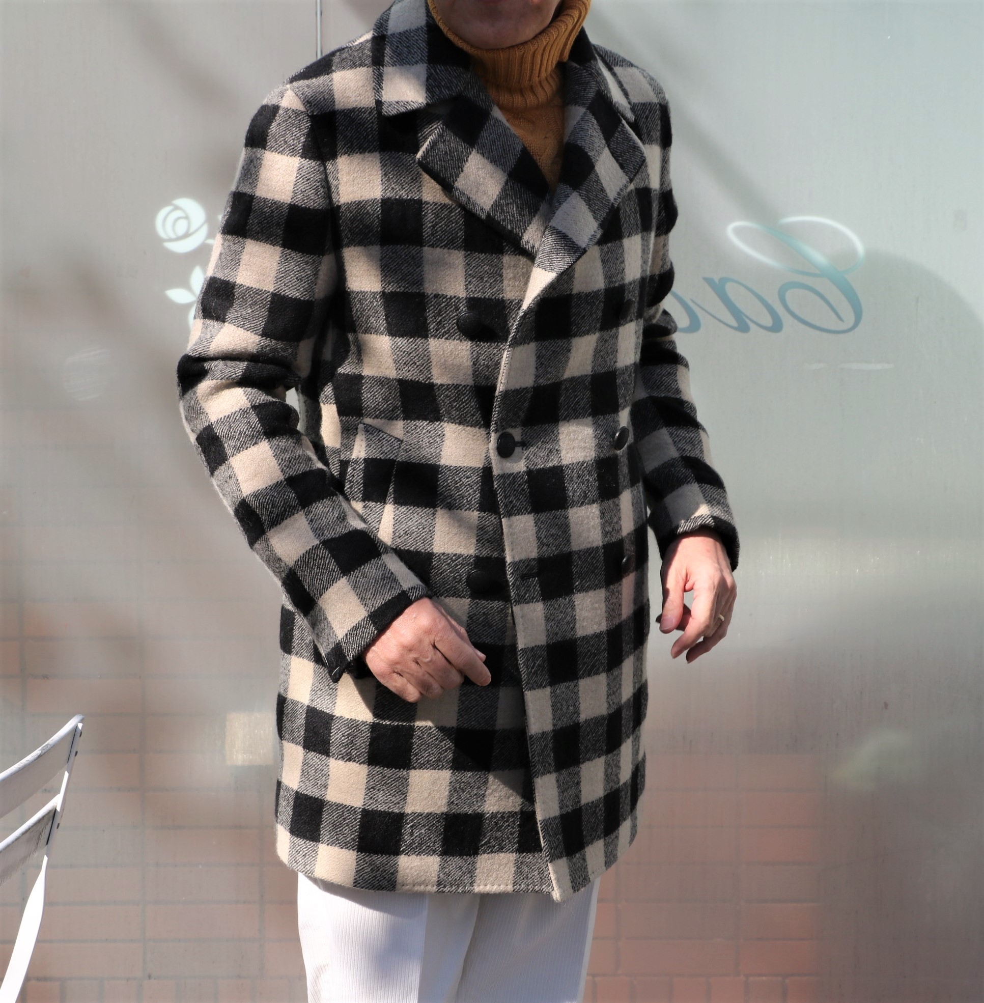 TAGLIATORE(タリアトーレ)の綾織りチェック柄ダブルブレストコートです。