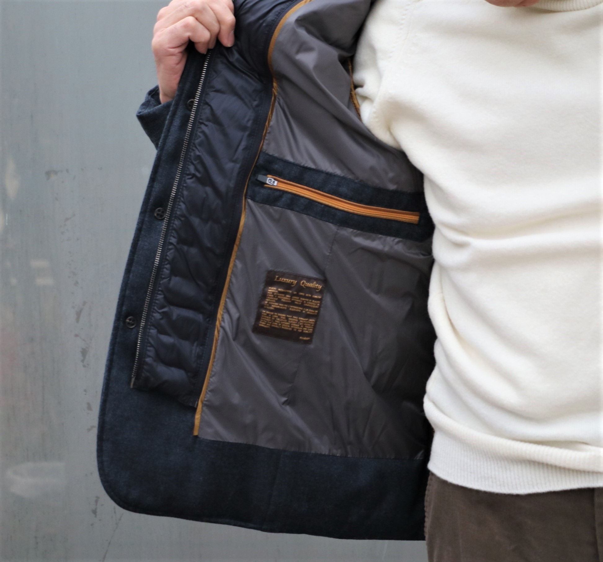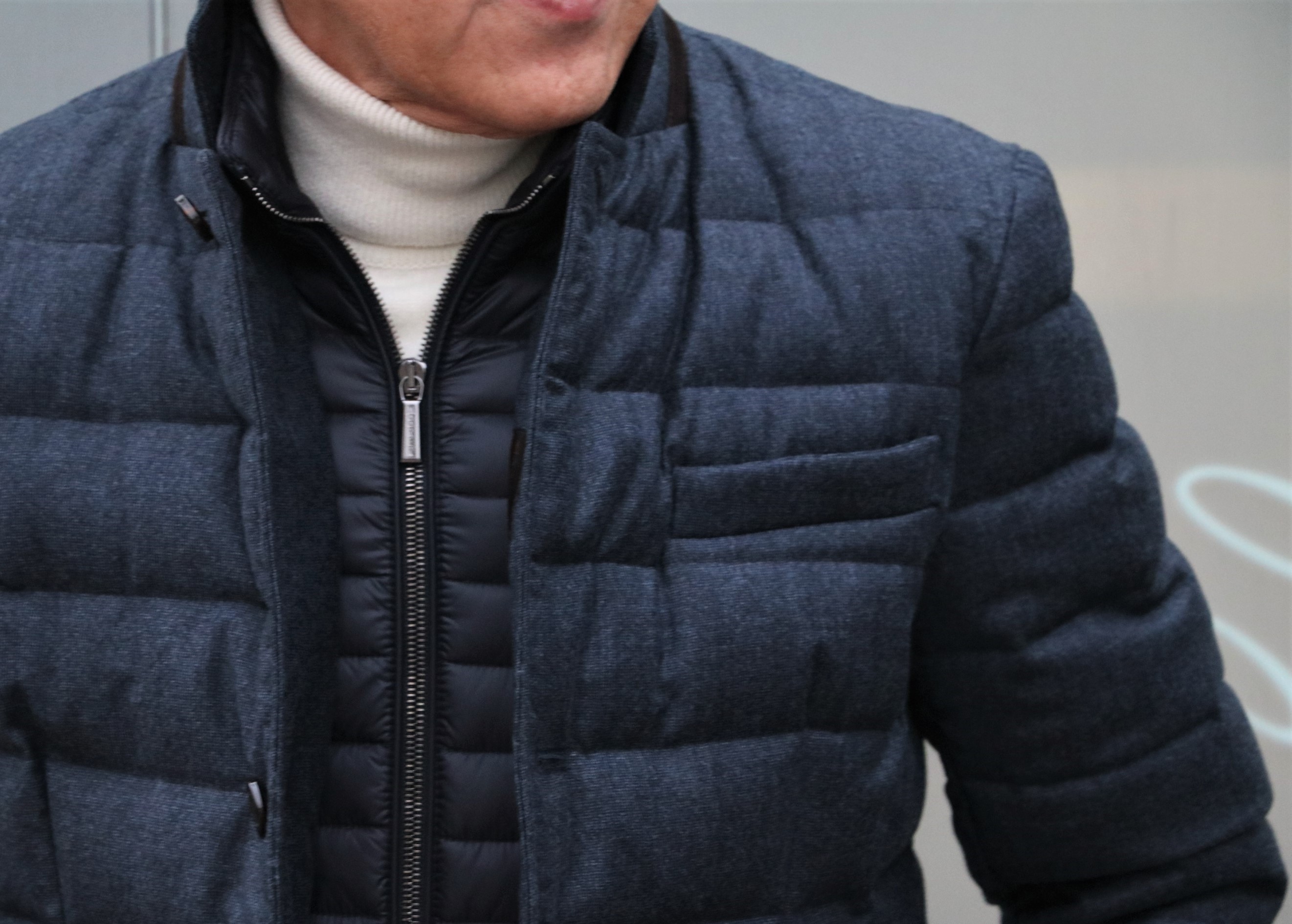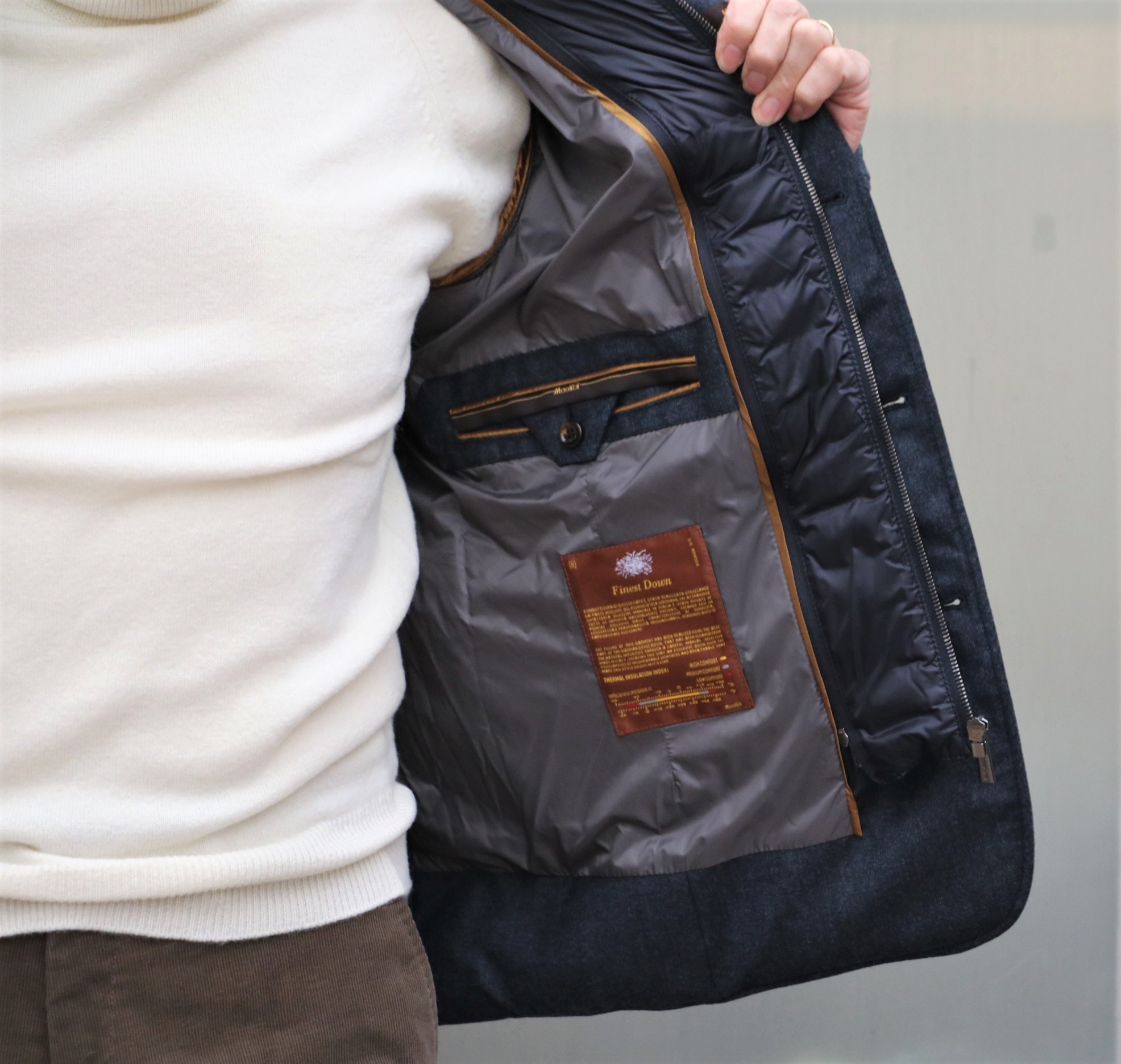 そんなスコットランドニットに羽織ったのは、1999年にイタリアのヴェローナで創業したアウターメーカー。MADE IN ITALY、最高品質、に拘った【MooRER/ムーレー】。例年以上に気温の下がった11月、12月。これから花見の時期まで需要があるのに、今の在庫では心もとない。そんな状況を代理店さんに伝えたら、素敵なダウンジャケットを送ってくれました。
