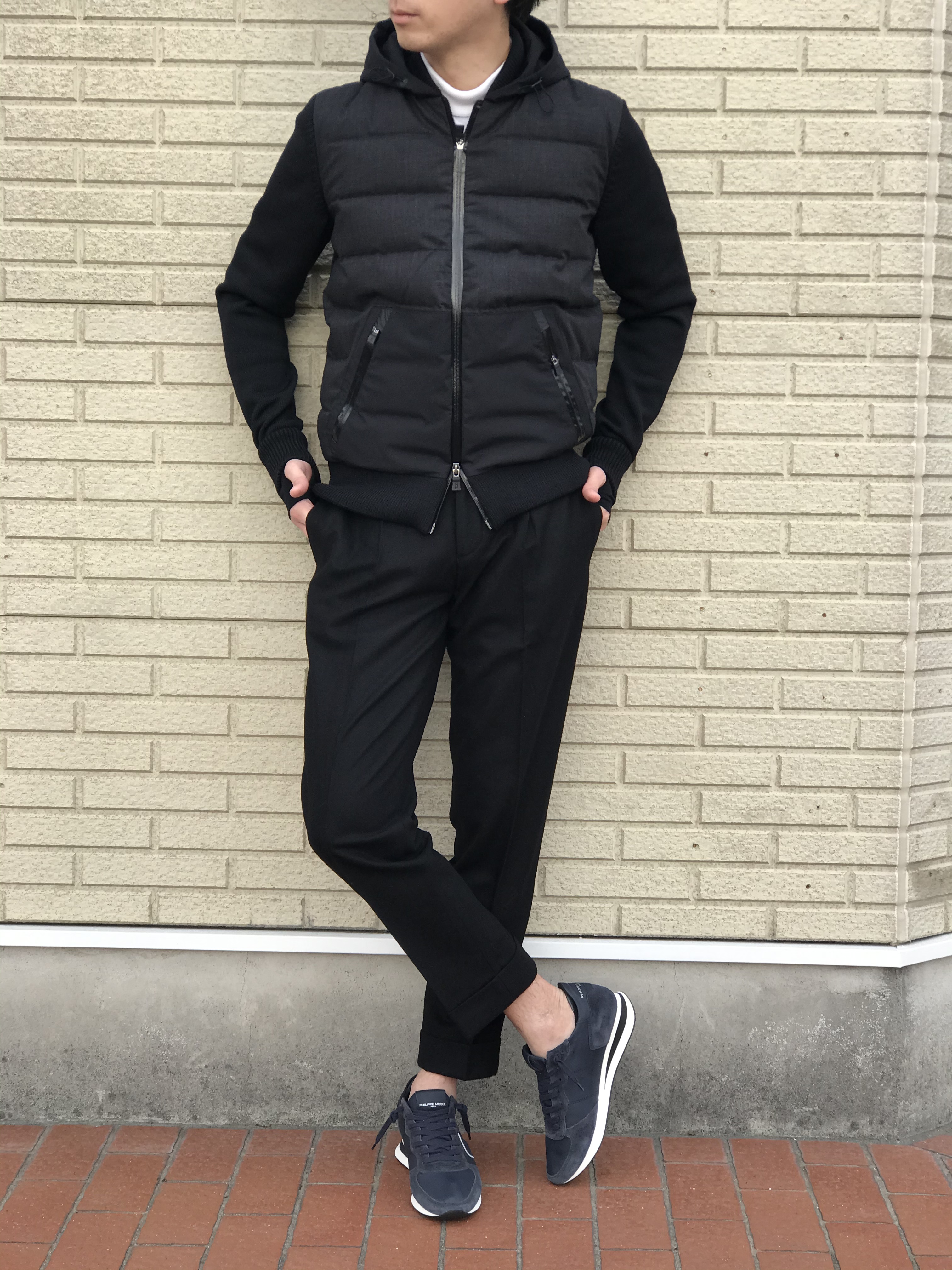 最後は、「Resort」ではなく「Laminar」シリーズから。「Laminar」らしくブラックで提案するのが、ニット×ダウンのスポーツブルゾンです。