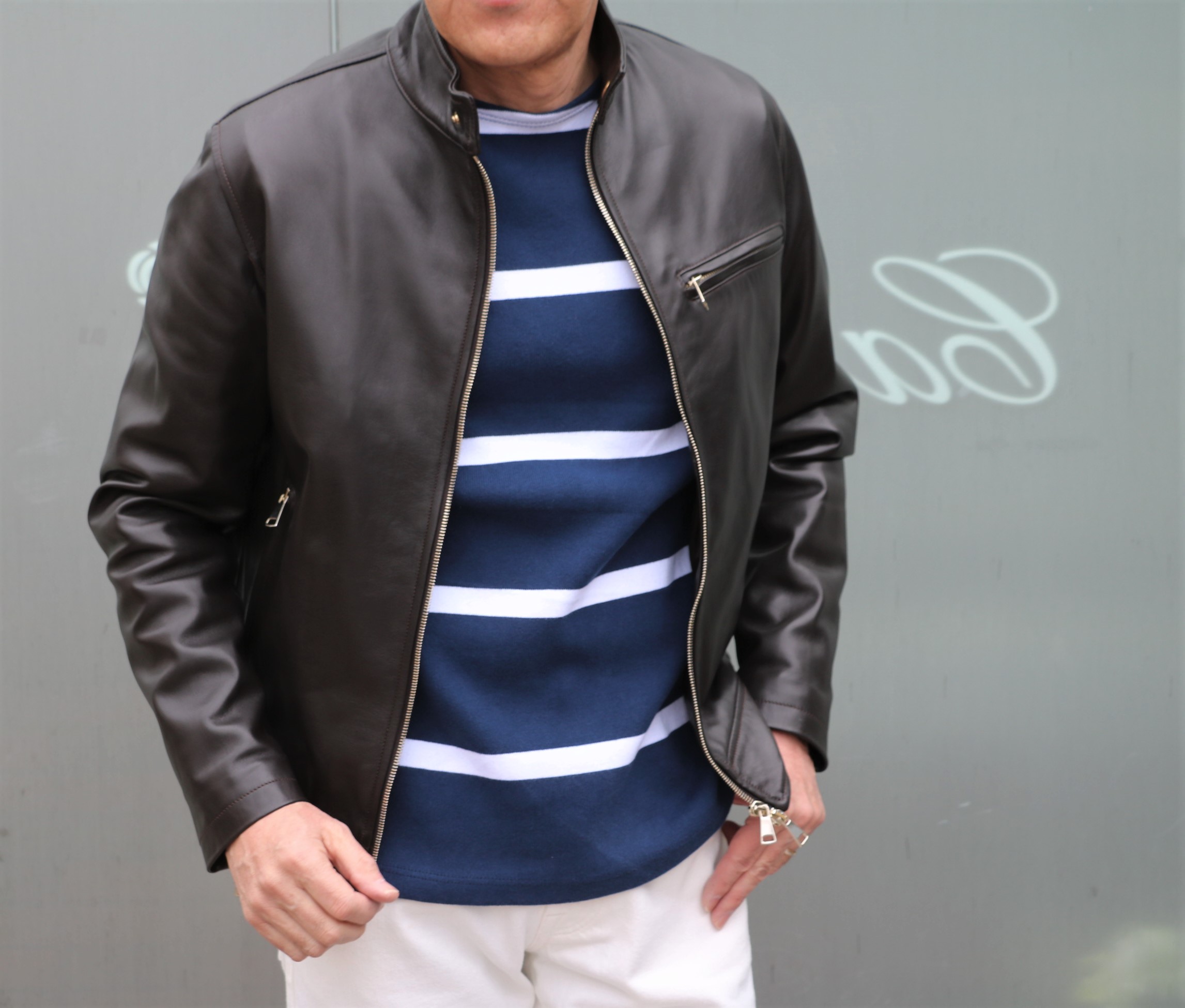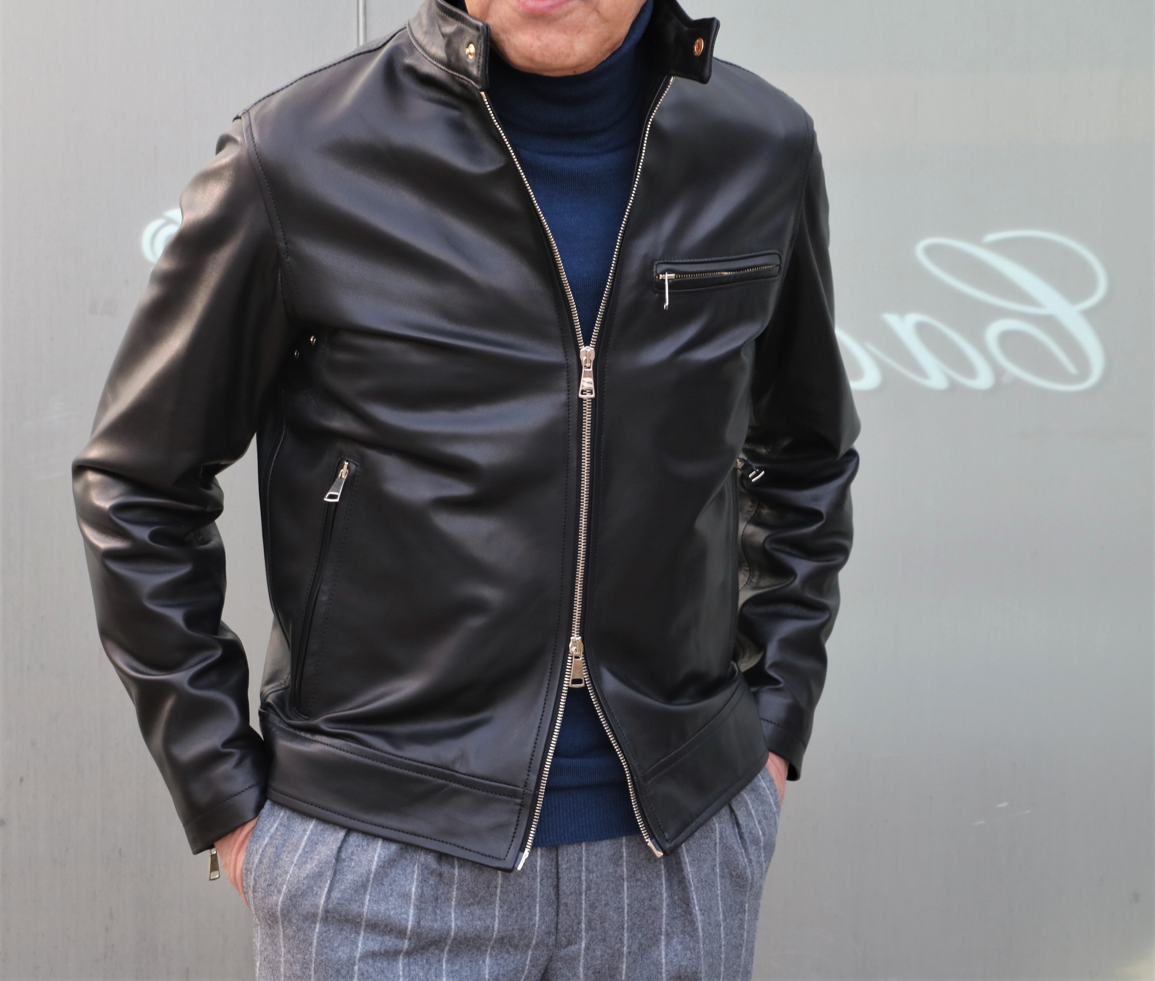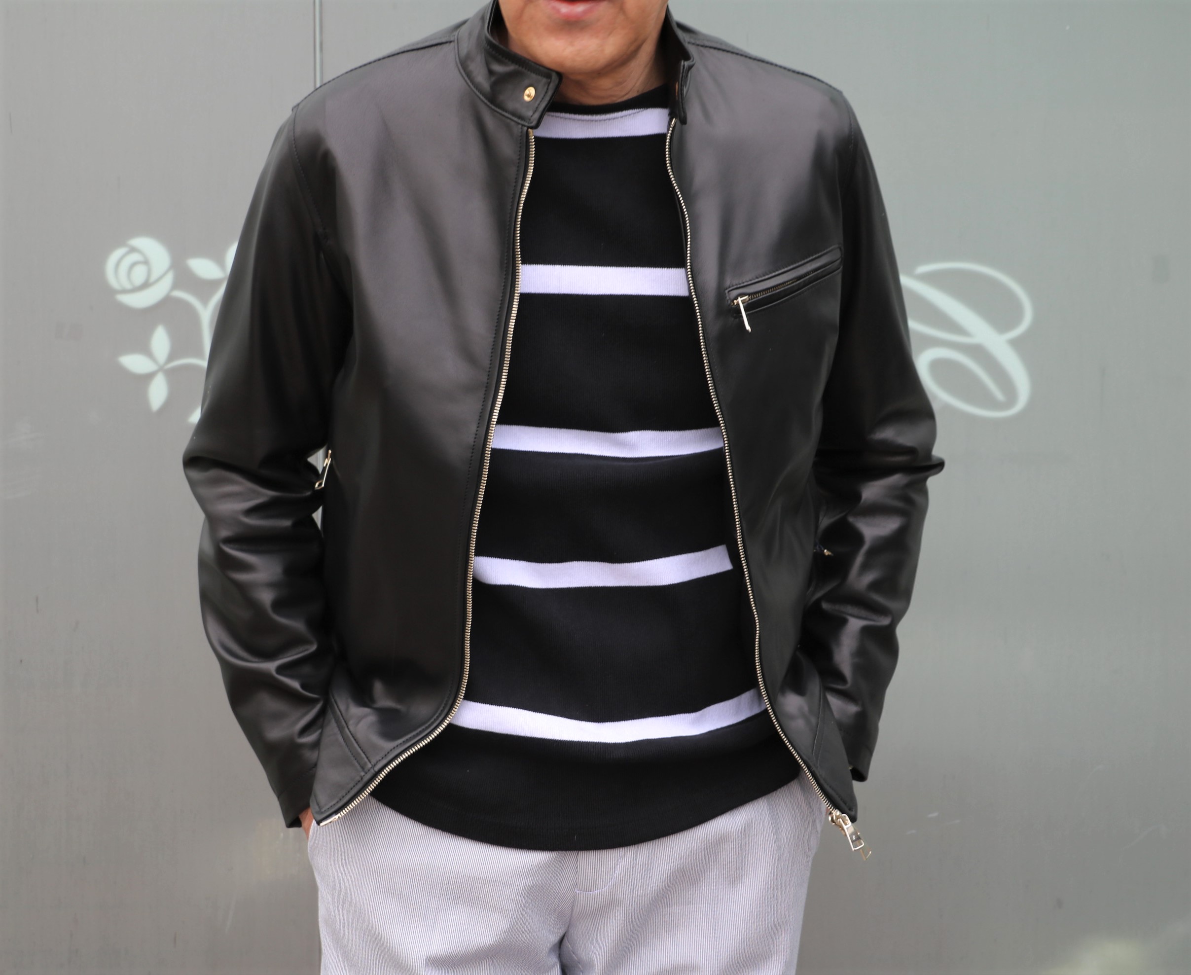 新作とはいえ、いきなり春夏の装いではありません。真夏以外、着用可能なレザーを、今から暫くは活躍するアイテムを使ってコーディネートしてみました。