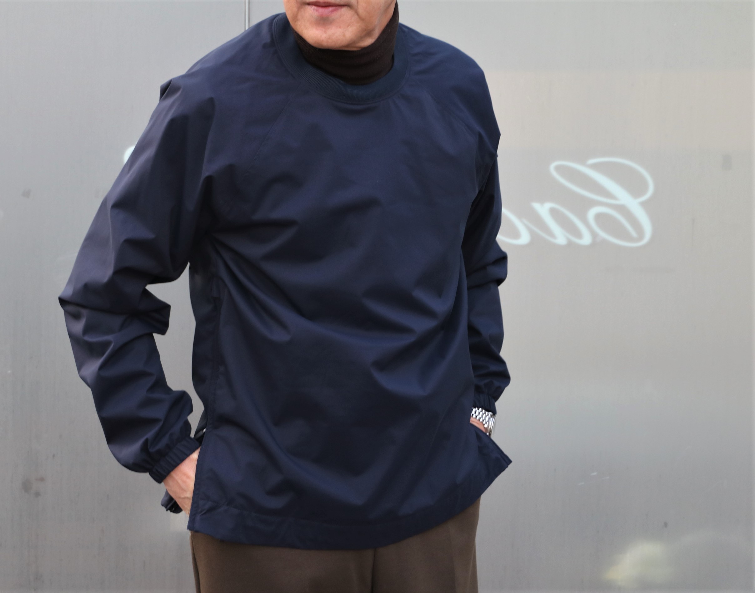 最初は、PAUL&SHARK(ポールアンドシャーク)のプルオーバーブルゾン。隠れ場カシェートからグローリーガイに移動させた際、飛びついたのがマスヤマ。オフだけではなく、売り場で着ている彼の姿をよく見かけます。実は私も、へっへっへ~です。