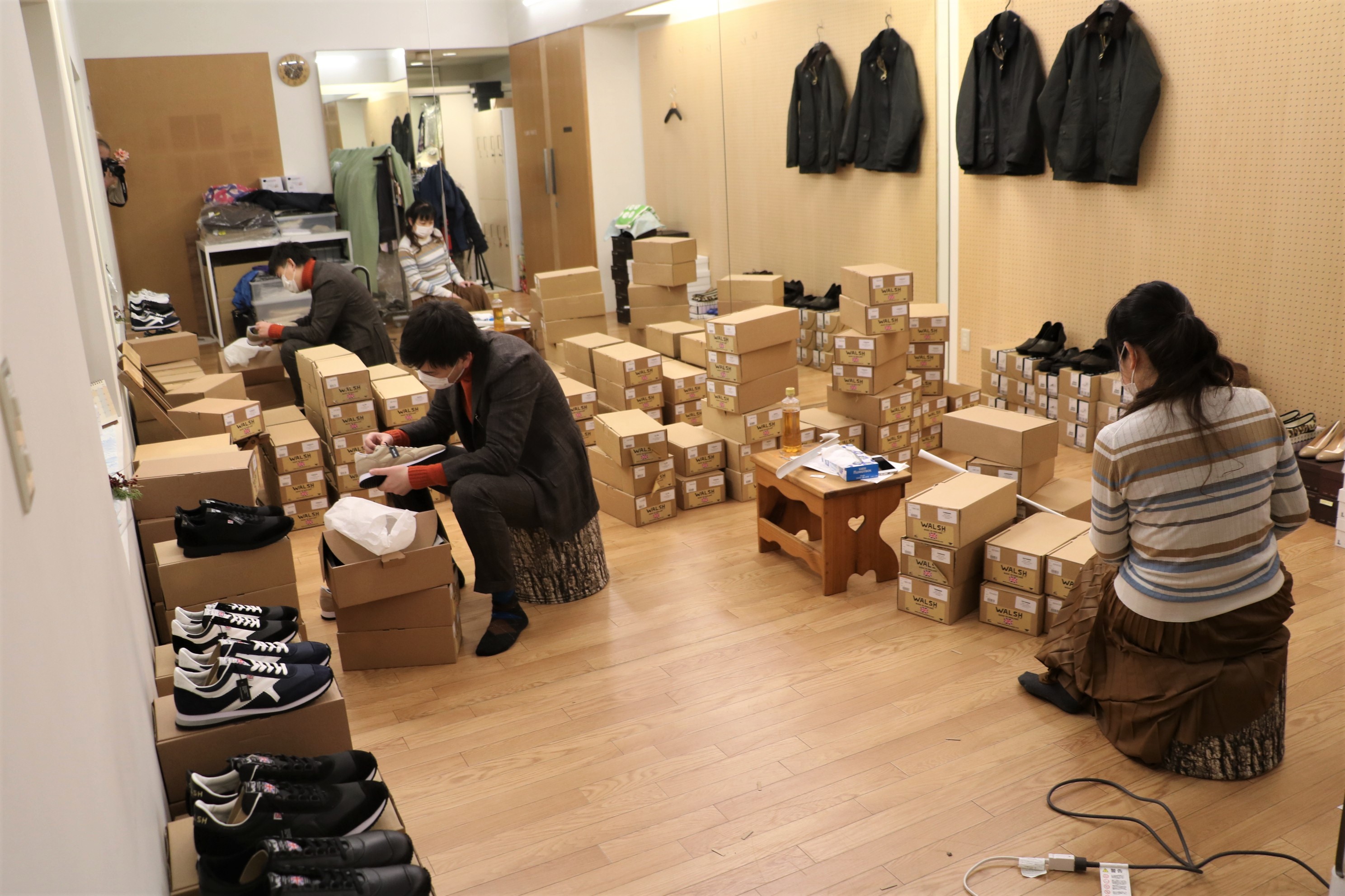 本来なら、水曜日に届くはずだった英国発のスニーカーブランド【WALSH/ウォルシュ】。やきもきしながら待っていたのは、ジュニア。今日の昼に、ようやく荷が届きました。全部で15パッキン。タイミング悪く、運び入れたのは、最年長の私スグル。本日より期間限定のモアバリエーションが始まります。詳しくは、SUGURU blogをご覧ください。