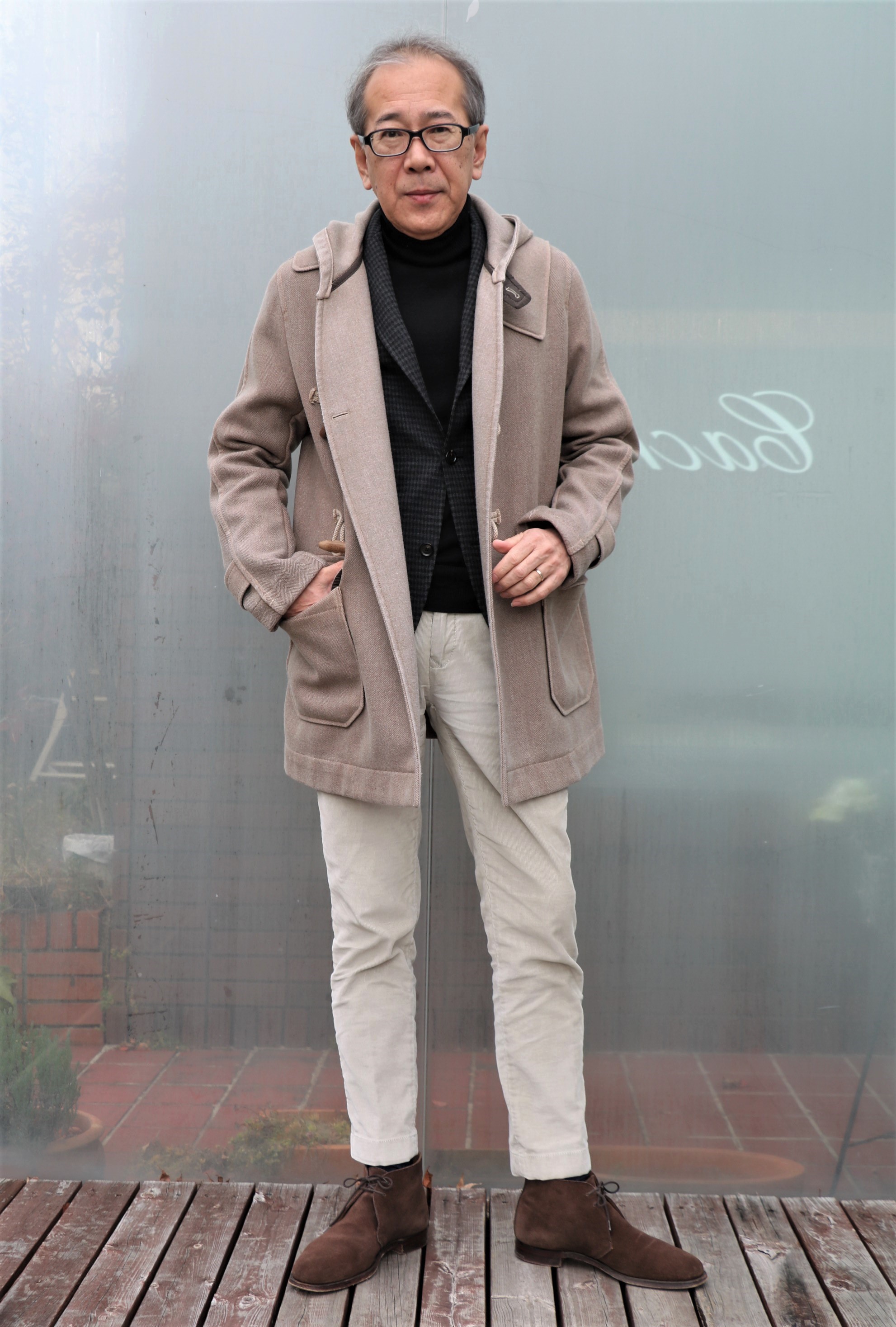 このダッフルコートはミラノにあるボリオリのショールームで一目ぼれ。鈴木卓爾氏とのコラポによる「T.SUZUKI」。確か、2012年頃でしょうか。即座にオーダーし、入荷と同時に購入。今でもお気に入りです。