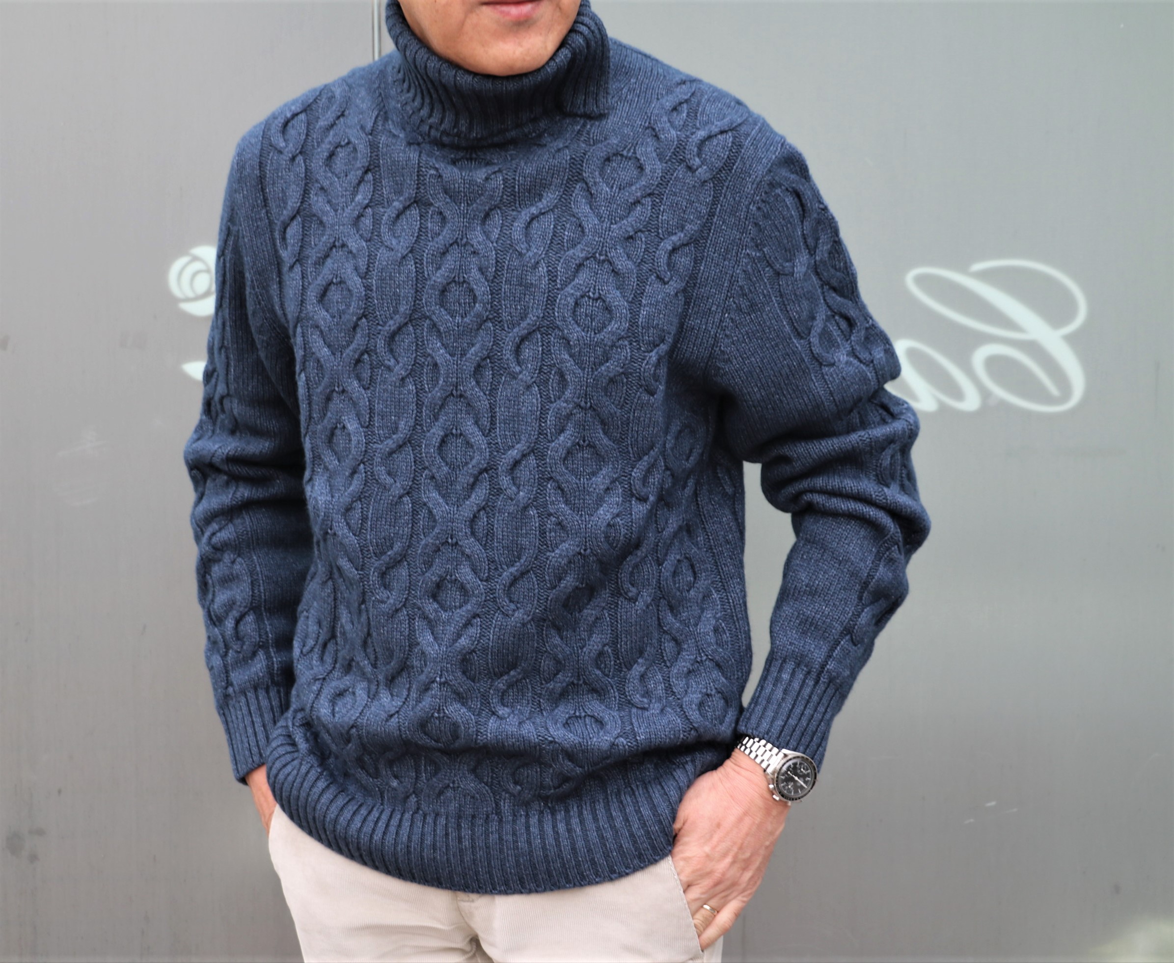イメージが完成したなら、購入...というわけにいかないのが、この時季のサイズ在庫。残念ながら、46が完売。着用しているサイズは48と若干大きいのです。モデルによって個体差のあるSettefili Casmere(セッテフィーリ カシミア)。ケーブル編みは、どれも比較的ゆとりがあります。