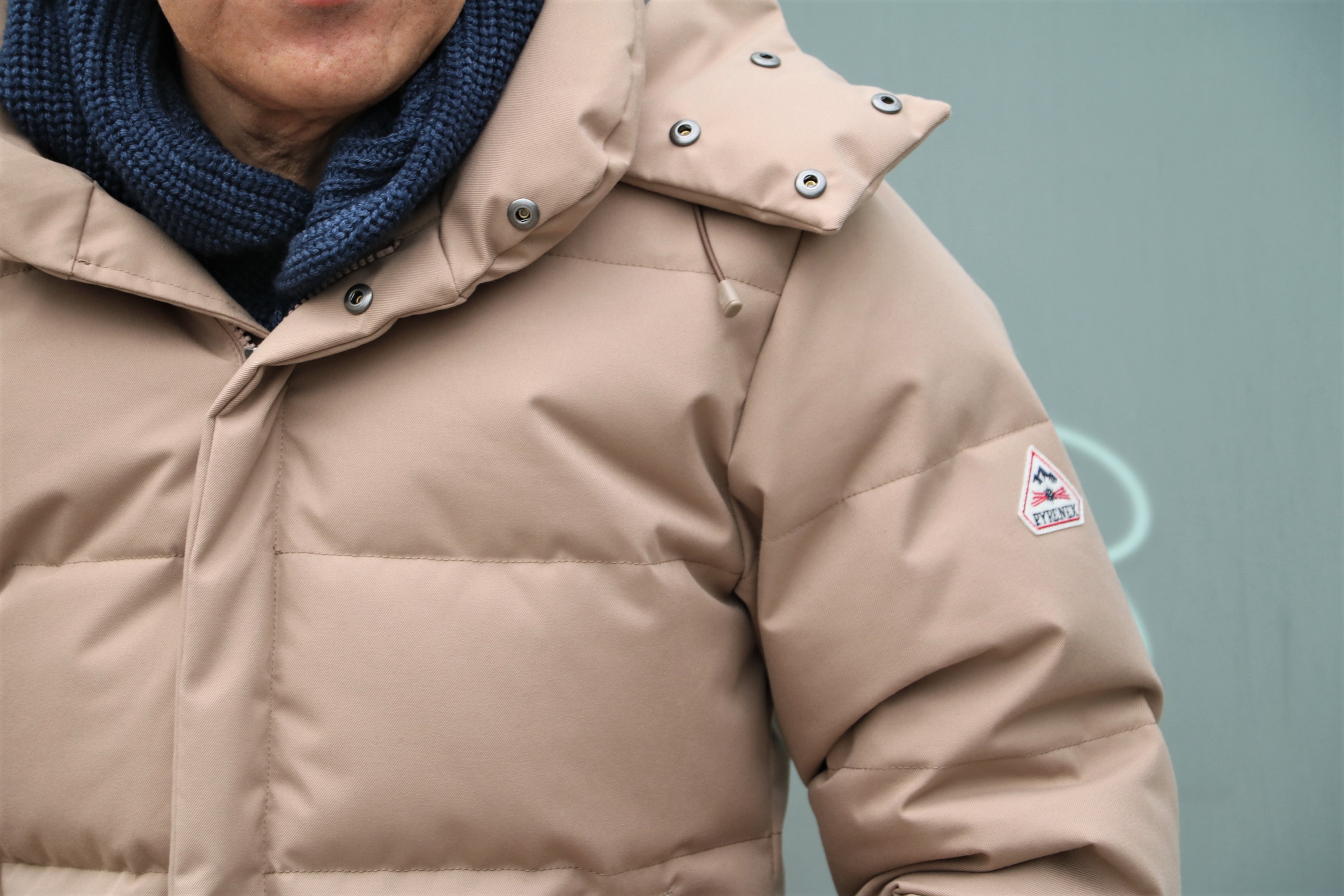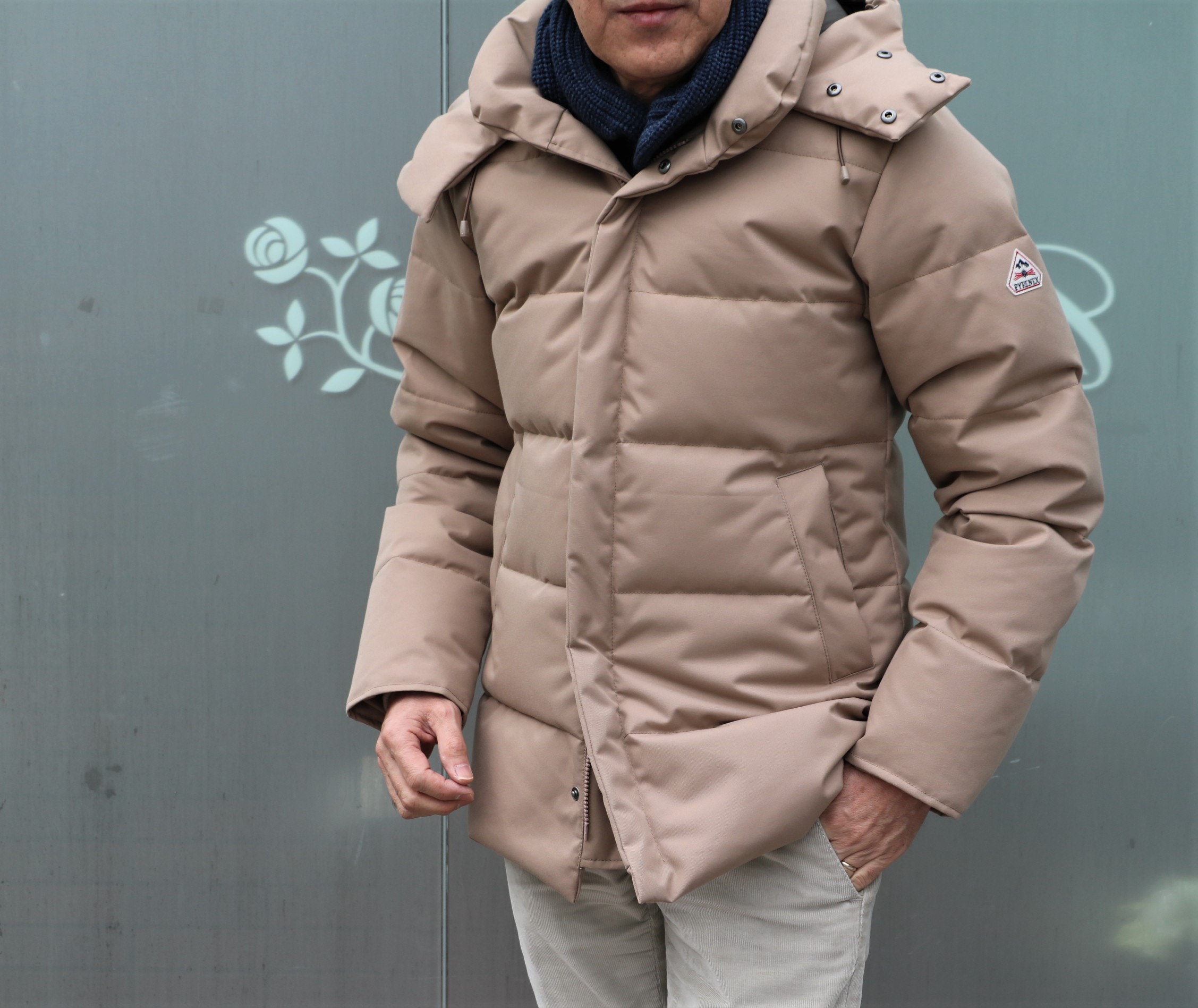 ダウンジャケットの下に着てみました。PYRENEX/ピレネックスの「BELFORT/ベルフォール」のLight Taupe、サイズSです。