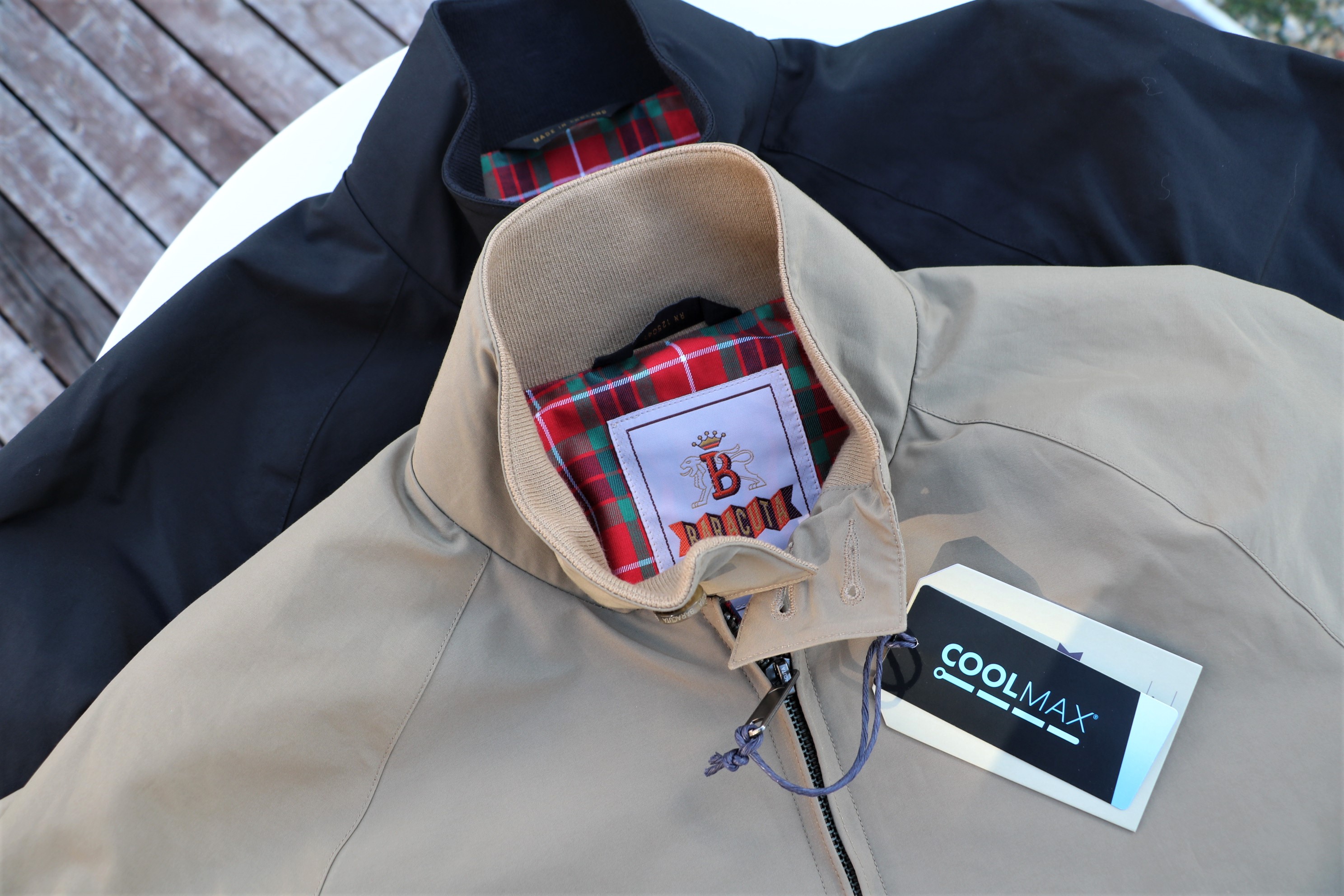 と、私も本日は薄着です。少し前まで着ていたタートルネックをポロニットに替え、BARACUTA(バラクータ)の「G9」ハリントンジャケットを羽織りました。呼び出しがいつあっても良いように、クローゼットの奥にしまい込むことはありません。気温の変化が激しいこの季節、出番の多いブルゾン。内緒ですが、入荷情報を教えちゃいます。