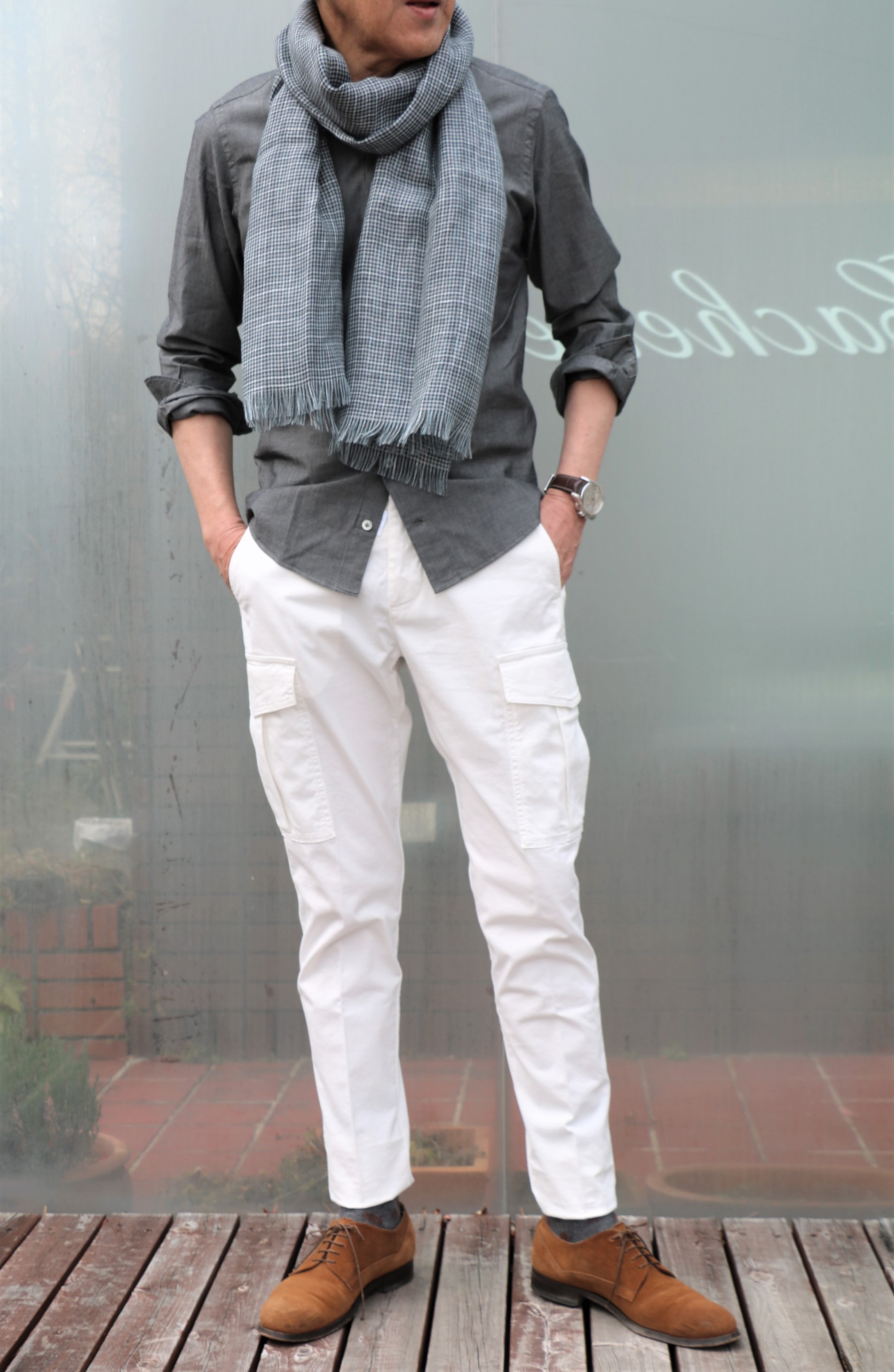 こちらも、冷房対策や日除けに。今年の夏コーデは、Tシャツにカシミアストールです。