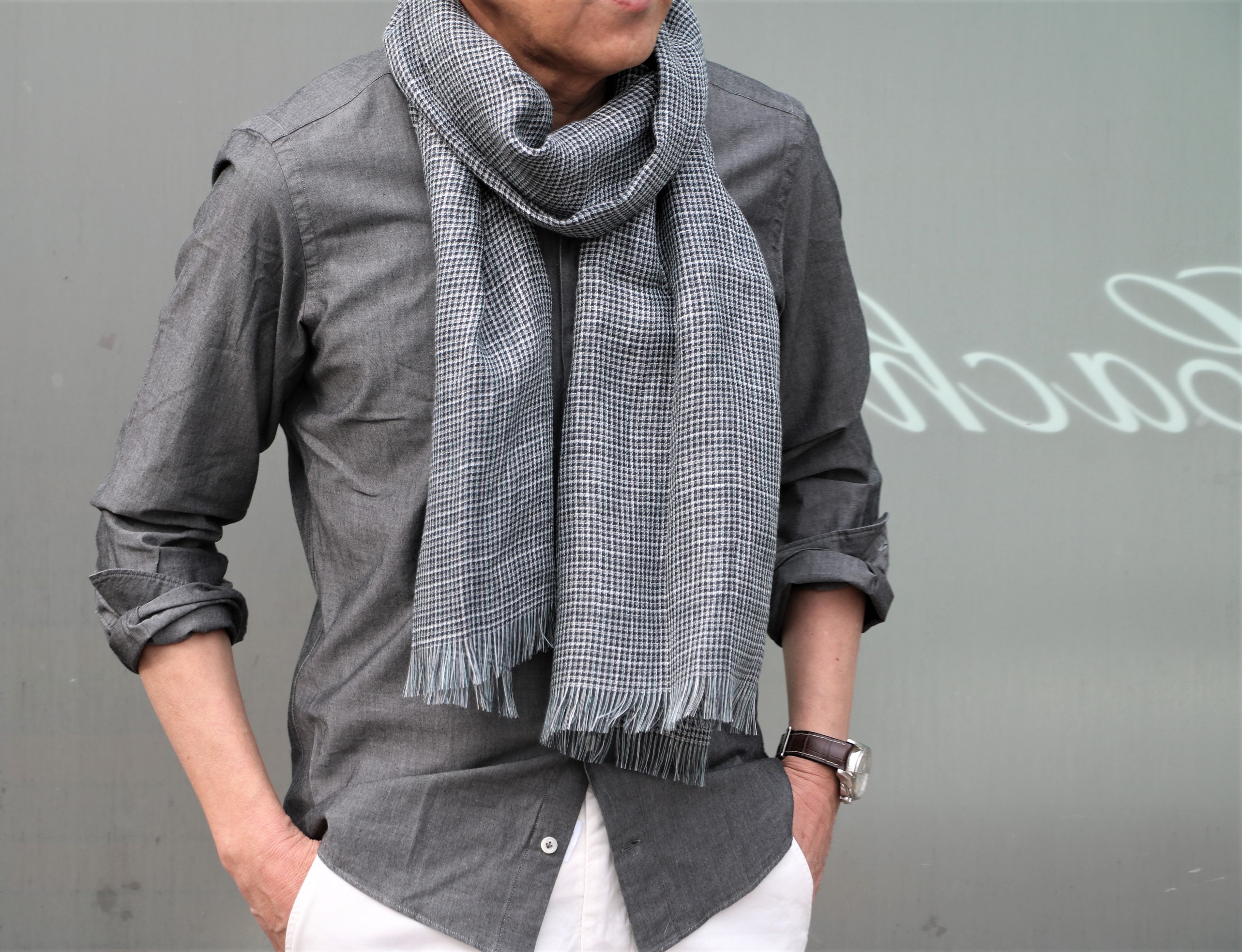 夏にカシミアとは、馴染みのない方もいらっしゃるかと思いますが、吸湿性の良さで肌触りはサラッと、きめ細かな繊維がボリュームを抑えてくれるので、夏場でも首元が大げさに膨れることなく、巻き心地も快適です。