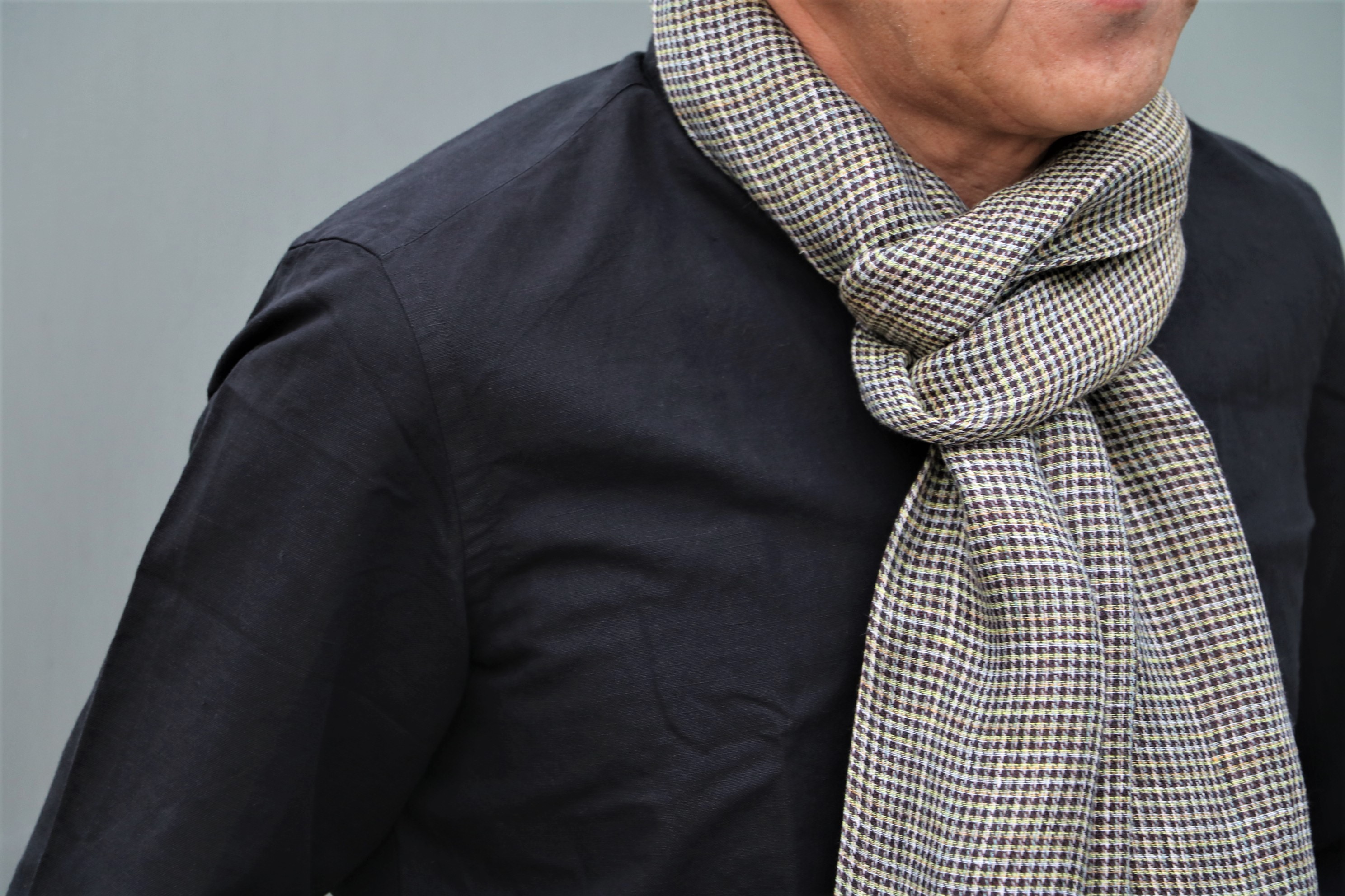 まだまだ冷たい春風や埃を防ぎ、夏の強い日差しから襟元を守る、そんな使い方ができるリネンストールです。