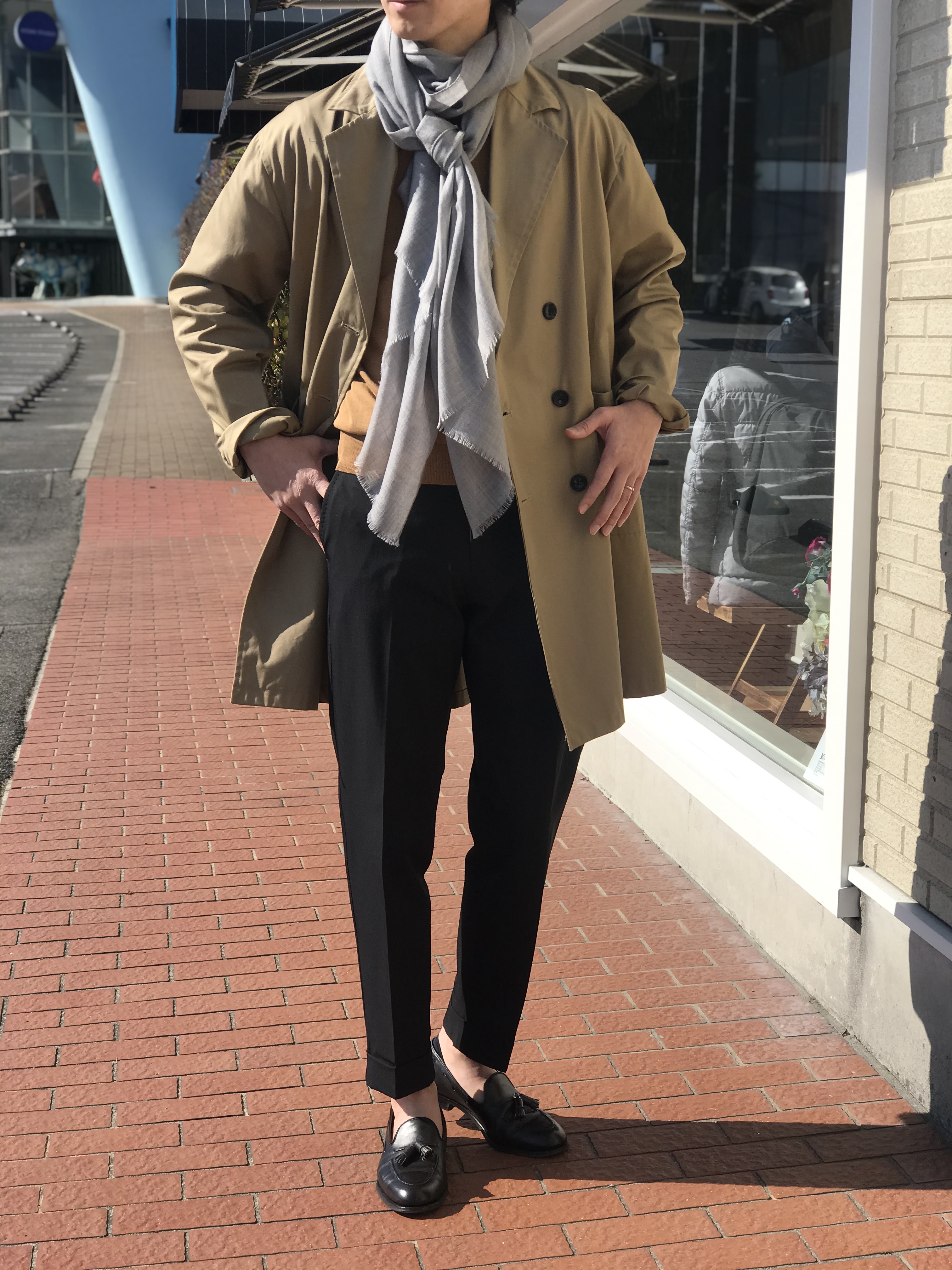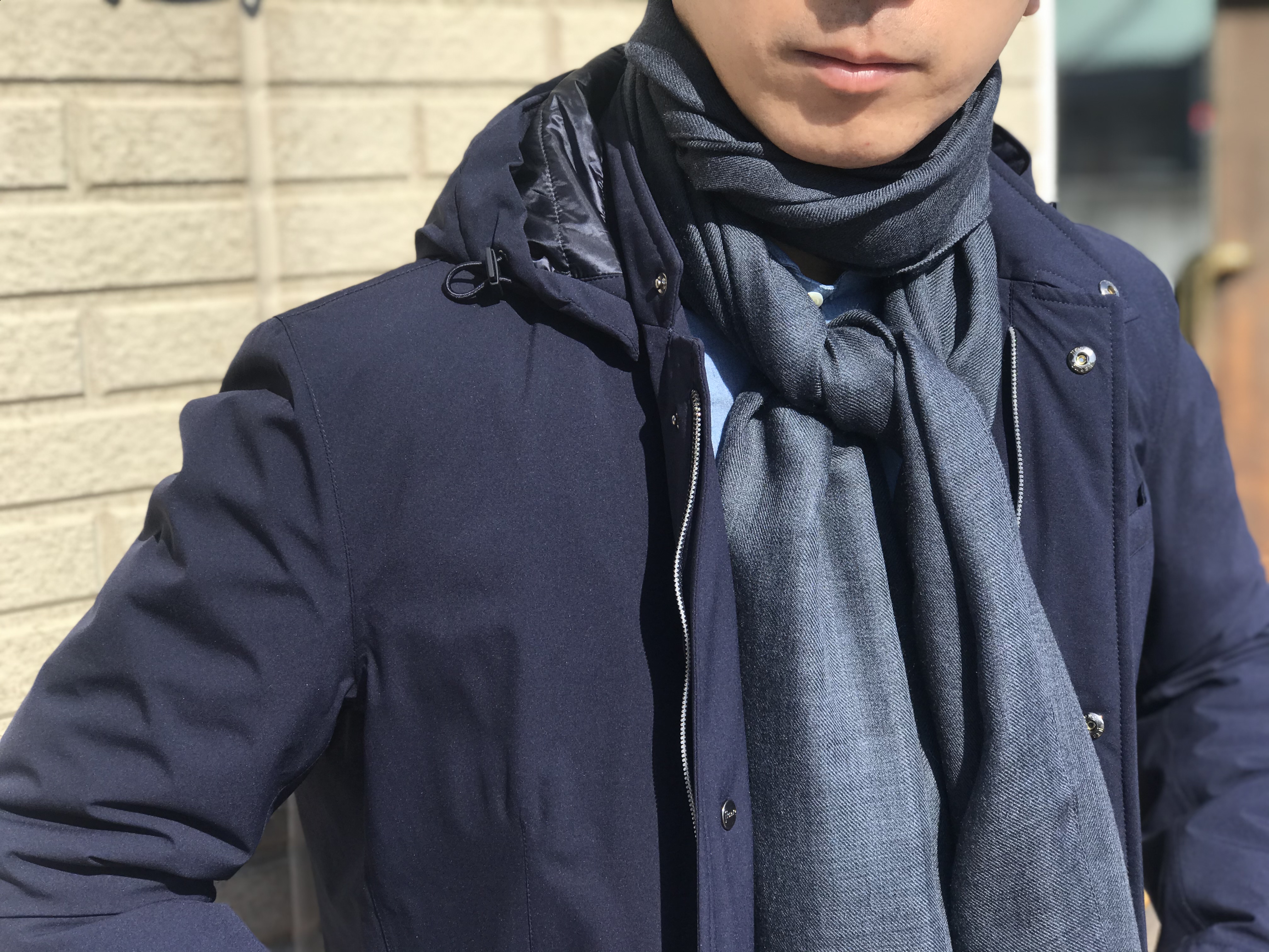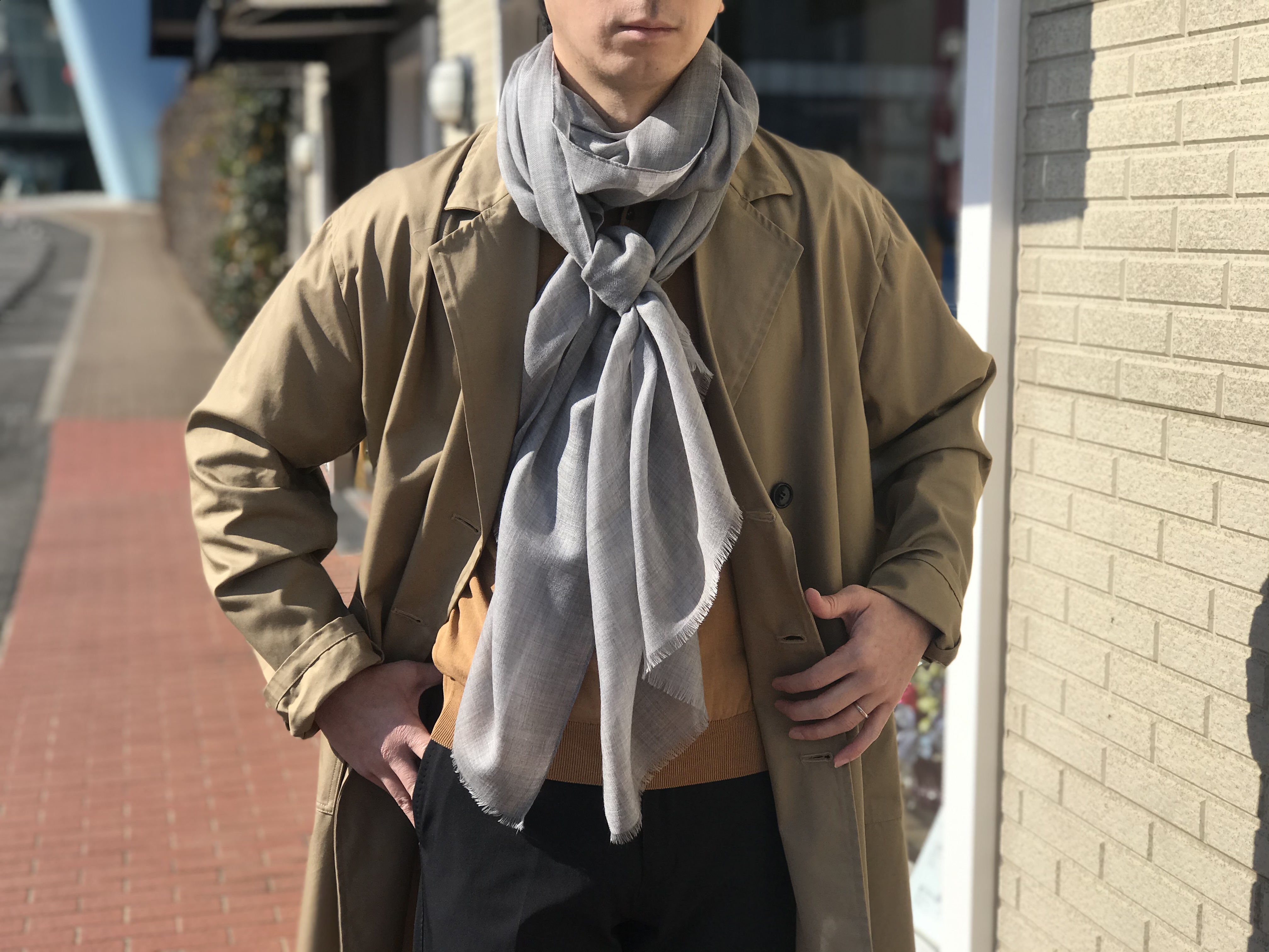 本来なら、巻物担当はタカイ。ただ、Giannetto(ジャンネット)のご紹介の際、先駆けて巻いてしまいましたので、流れに沿います。彼の出番は、この後、カシミアのストールを紹介してもらいます。