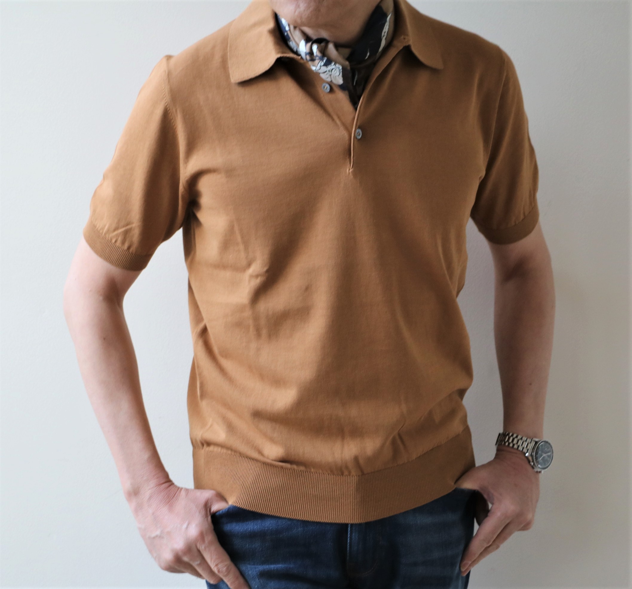 1月29日のFumagalli(フマガッリ)のご案内の際に寒々と登場。着るのはまだまだ先ですが、この夏、ぜひ揃えておきたいのが、Settefili Cashmere(セッテフィーリ カシミア)のポロニット。ドライ感のあるコットン素材は、後染めの優しい表情を醸し出しています。フロント3釦の美しい衿のロールが特徴です。
