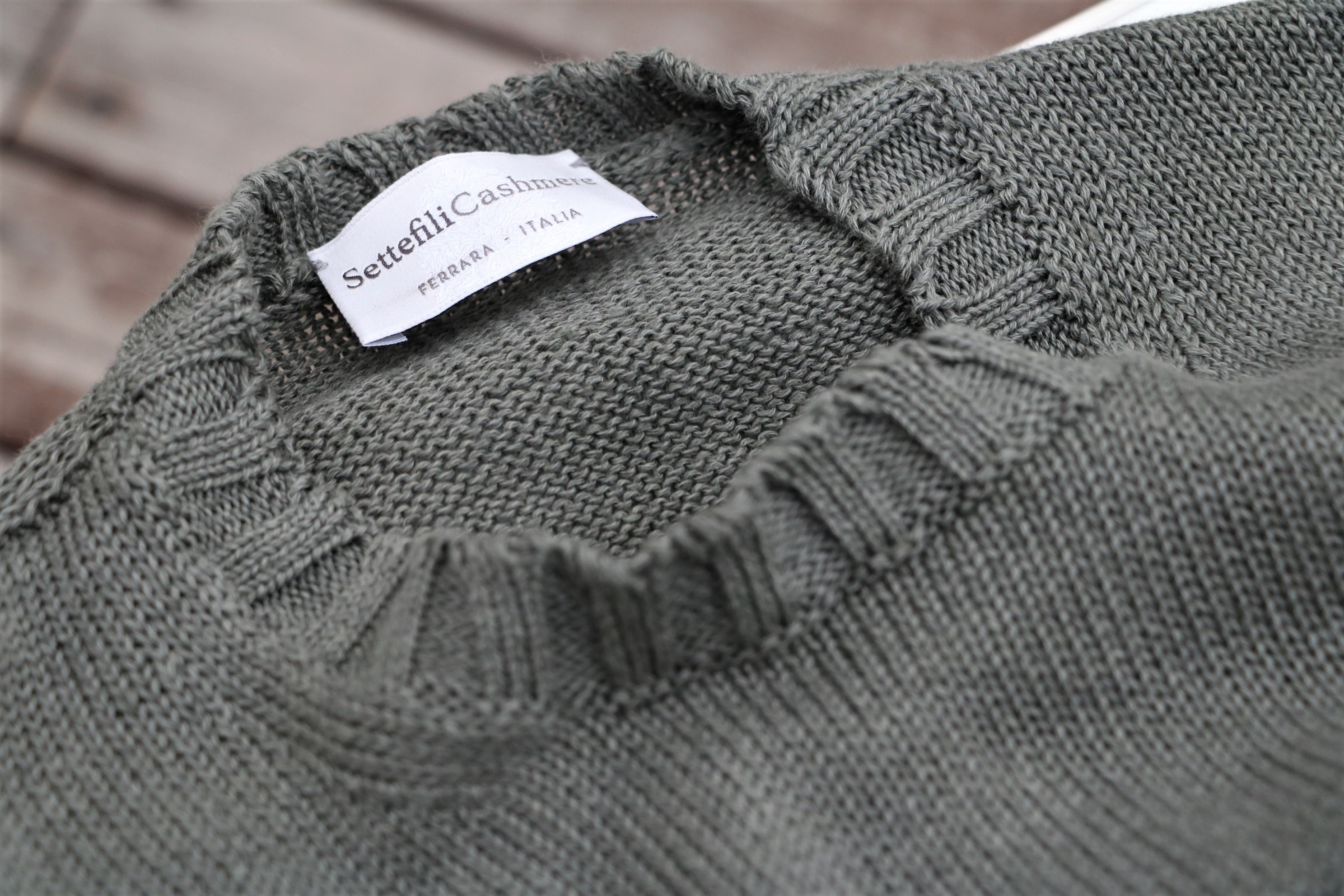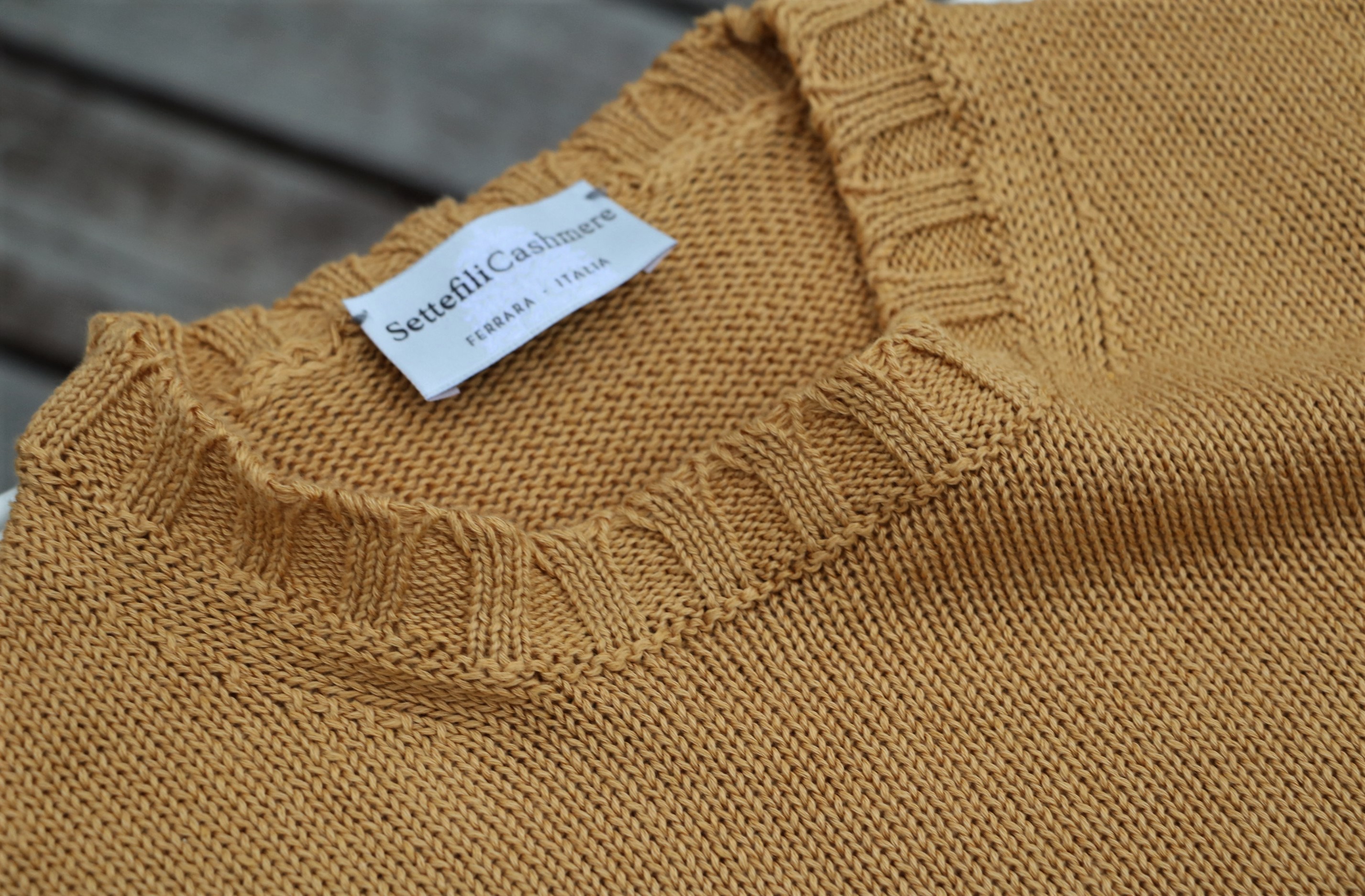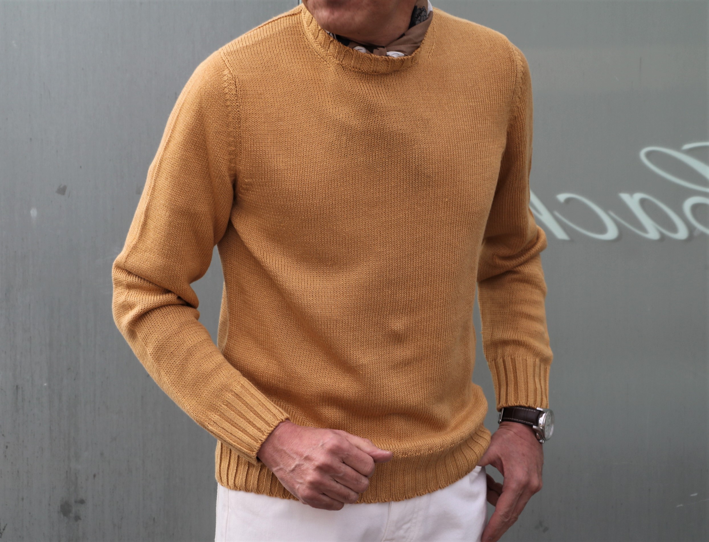 軽やかな装いです。気になるのはジャケット...でしょうが、本日はインに着ているニット、【Settefili Cashmere/セッテフィーリ カシミア】からご紹介です。