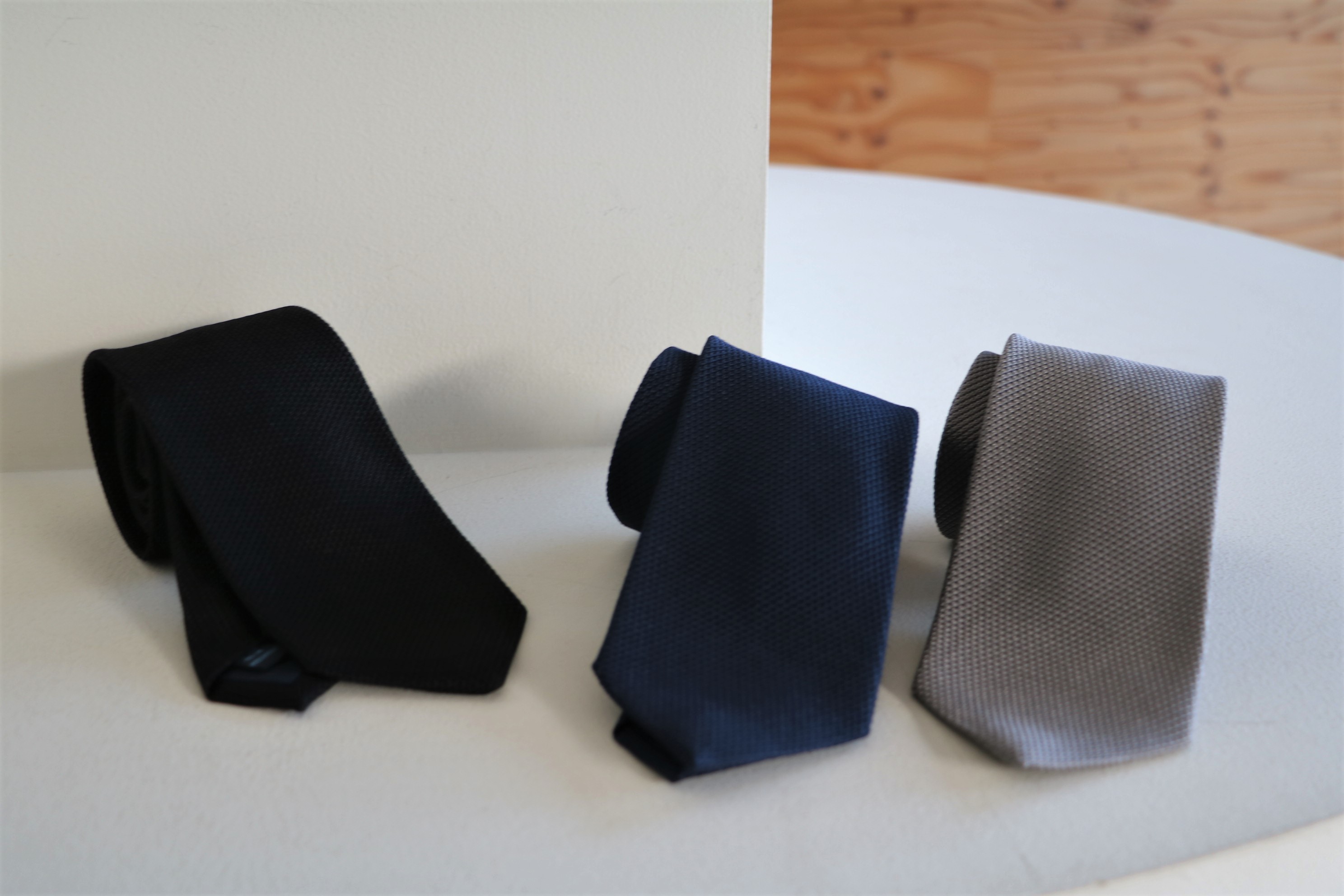 Vゾーンを飾ったネクタイは【FRANCO BASSI/フランコ バッシ】のメッシュタイ。裏地を付けることで、フレスコほど透け感はなく、清涼感がありながら端正なネクタイです。オンに使うことを前提としているだけに、イージー過ぎないが、今回のテーマです。