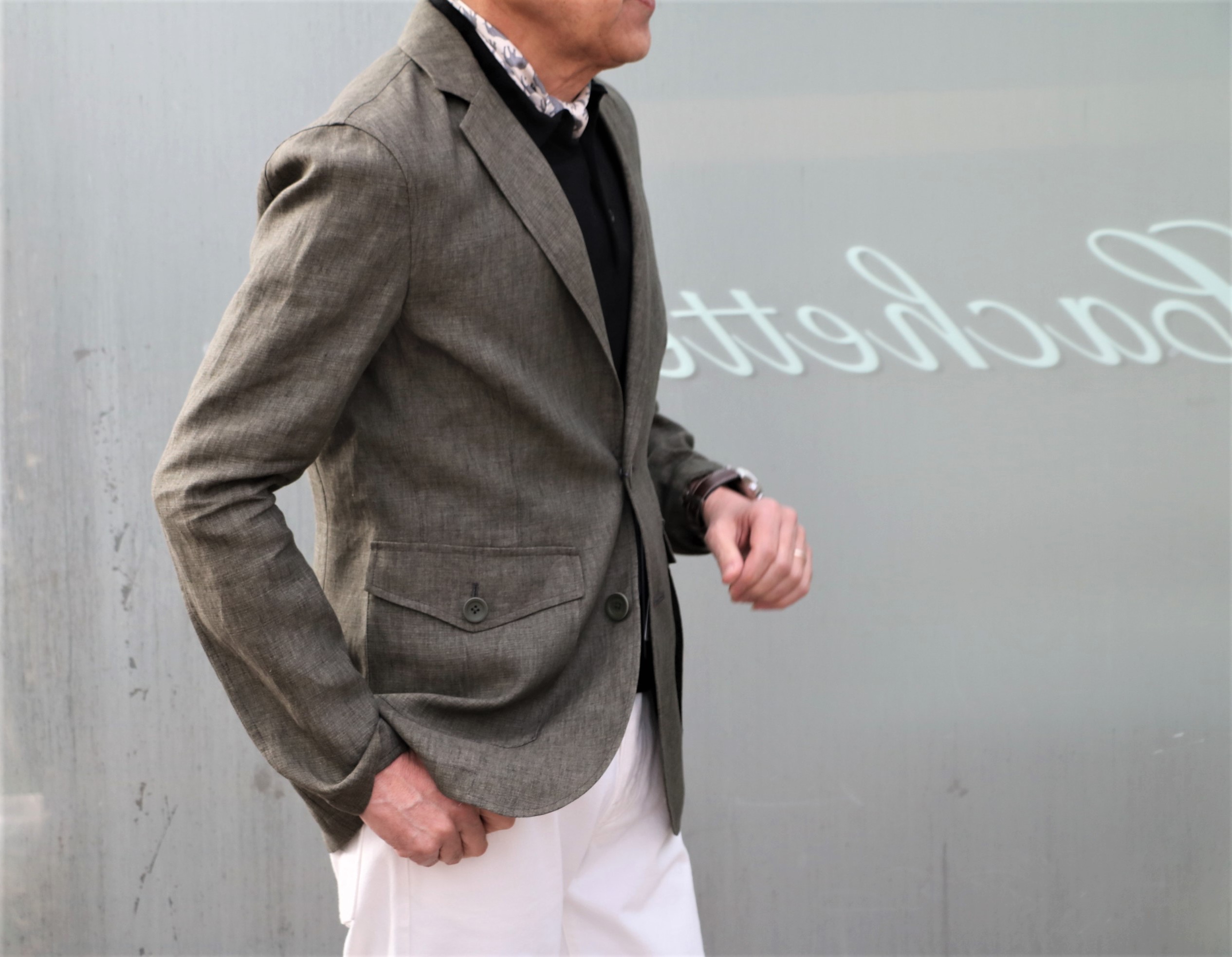 MODEL:メランジ調リネンジャケット