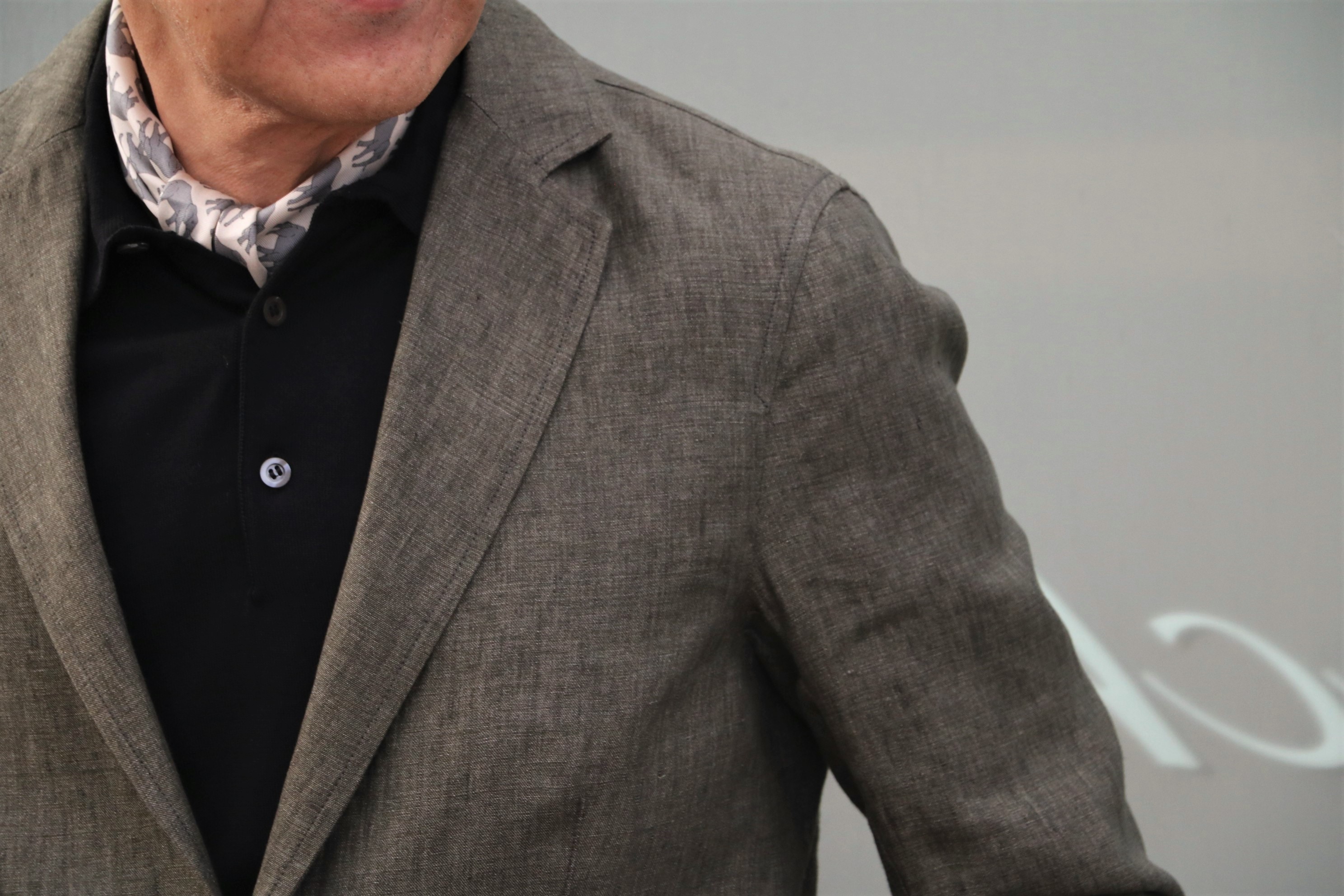 何かのご案内の際に...そうです。2月4日のブログ、Settefili Cashmere/セッテフィーリ カシミアの半袖ポロニットでした。まったく、ヘルノらしくない。でもヘルノでなければ提案できない、そんなサマージャケットなんです。