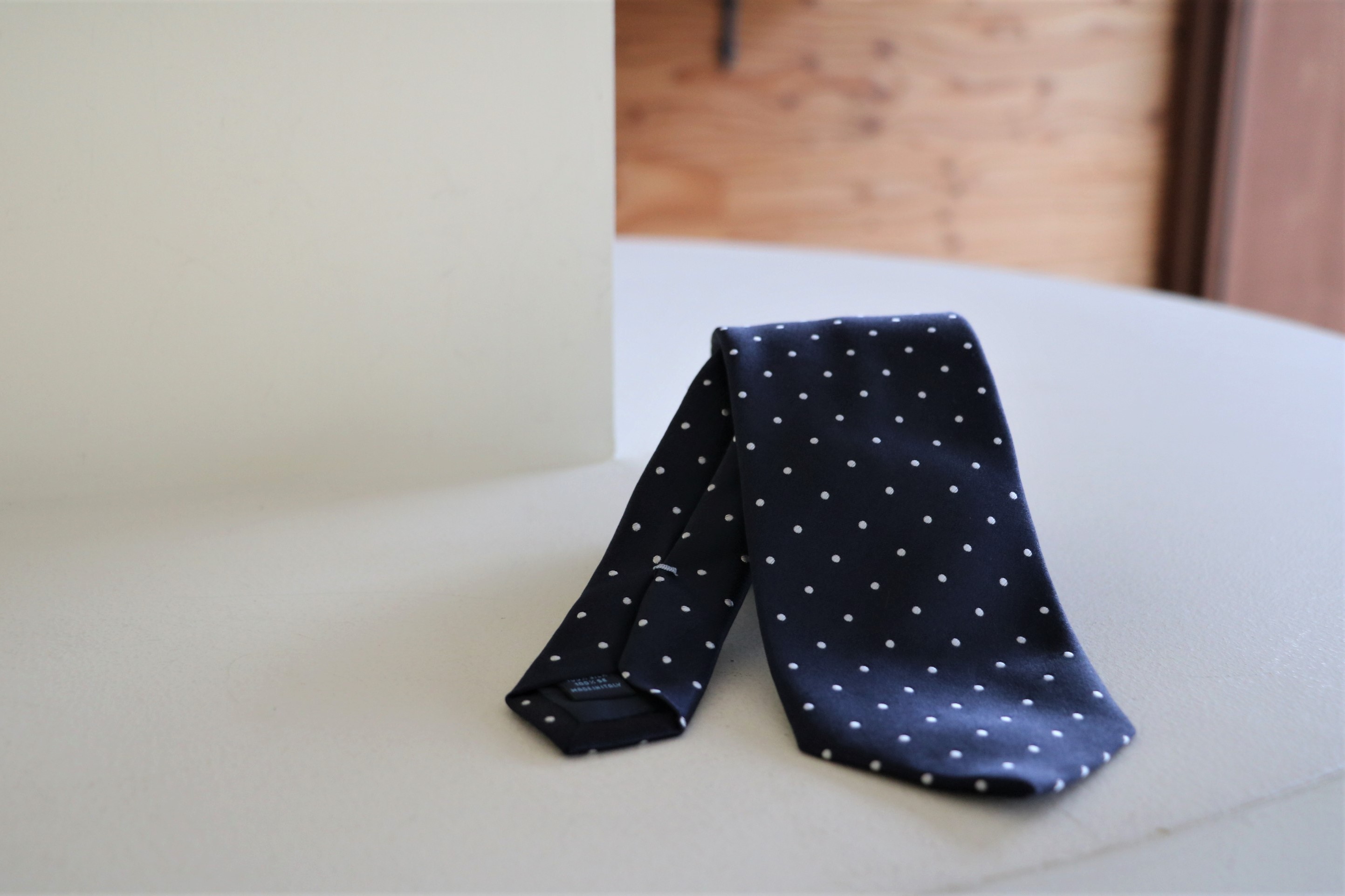 ネクタイは、ピンチェックで使ったダークネイビーの色違いです。