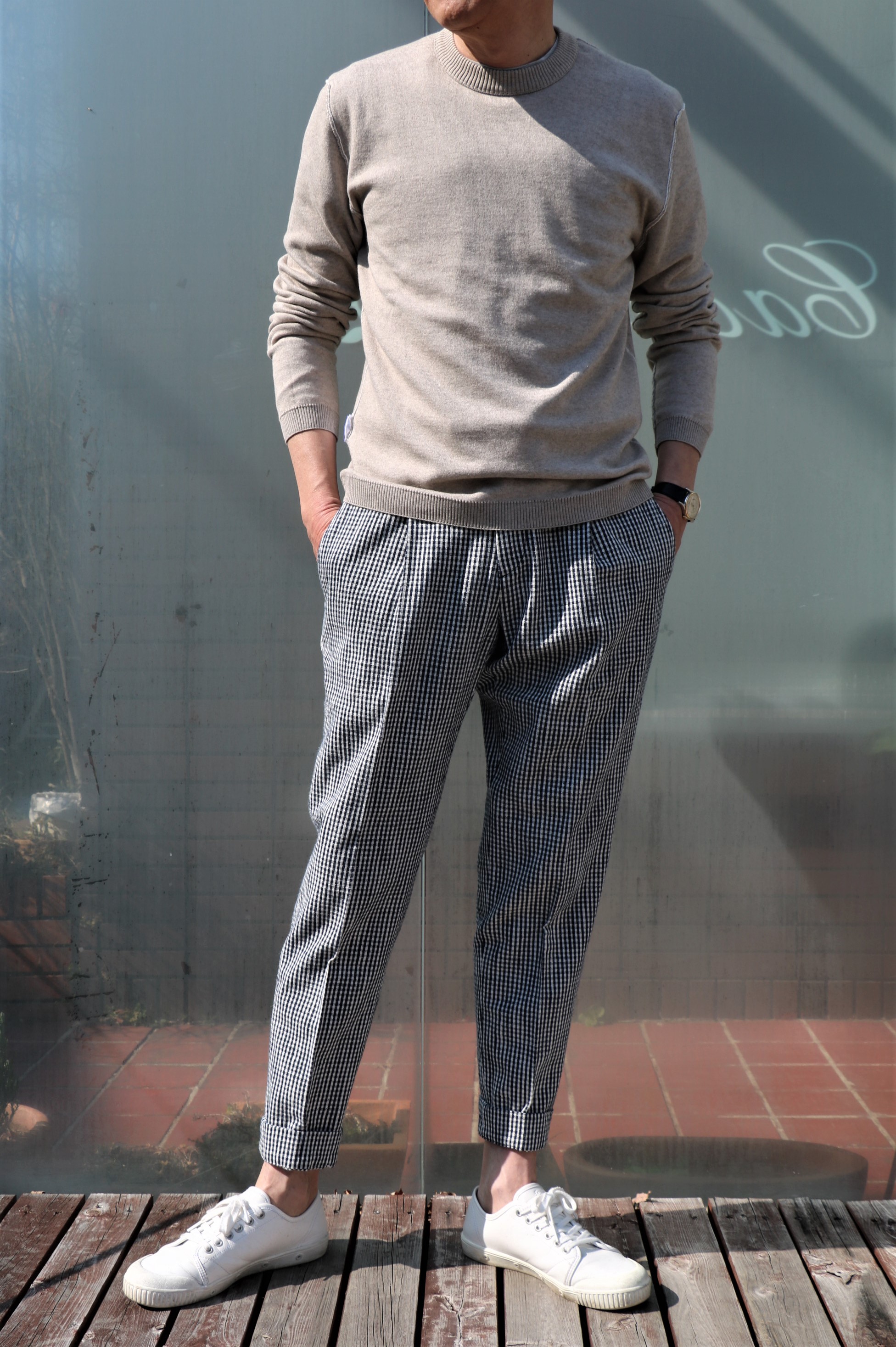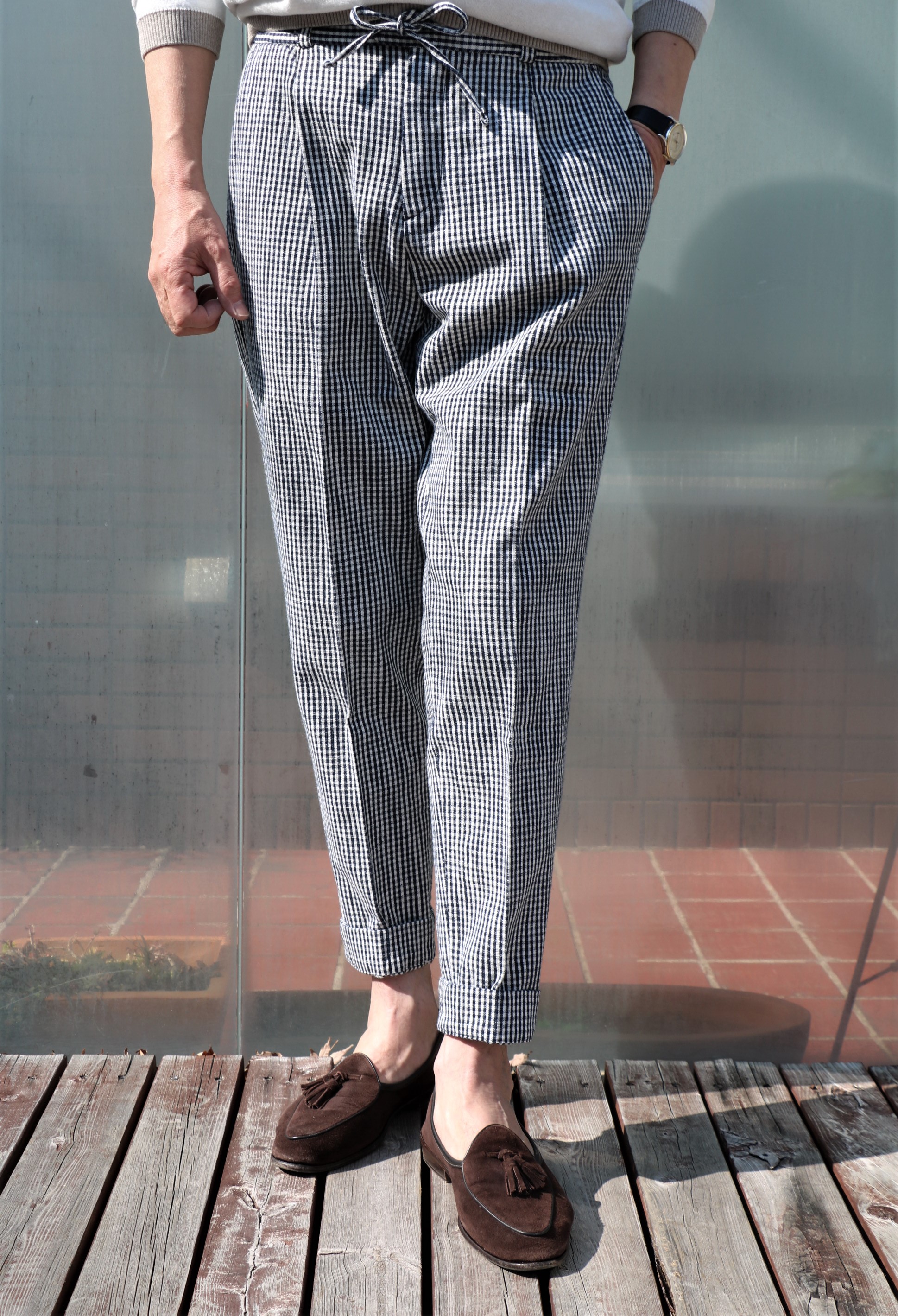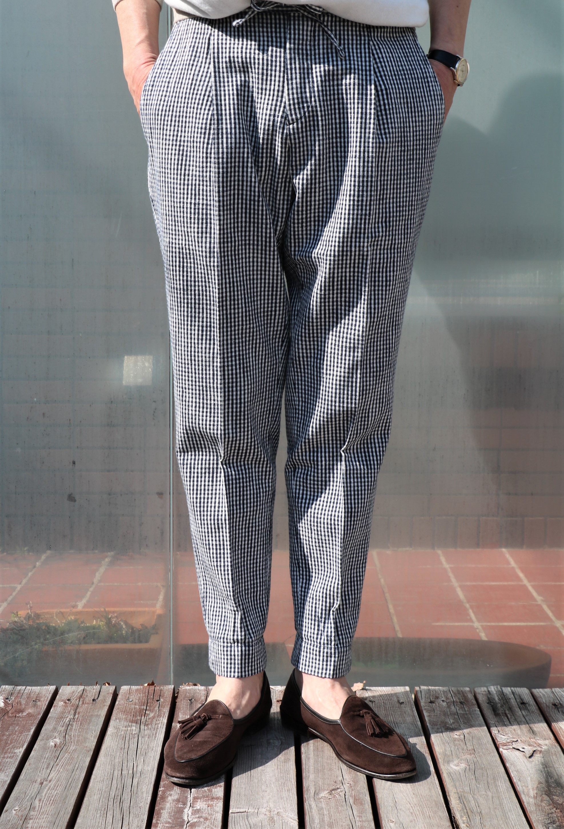 【PT TORINO/ピーティートリノ】のドローコード付きシャーリングパンツは、昨年からコレクションに加わった「Re Worked」。再作業とか再加工という意味でしょうか。コットン100%のモノクロの愛らしく、爽やかなチェック柄パンツです。