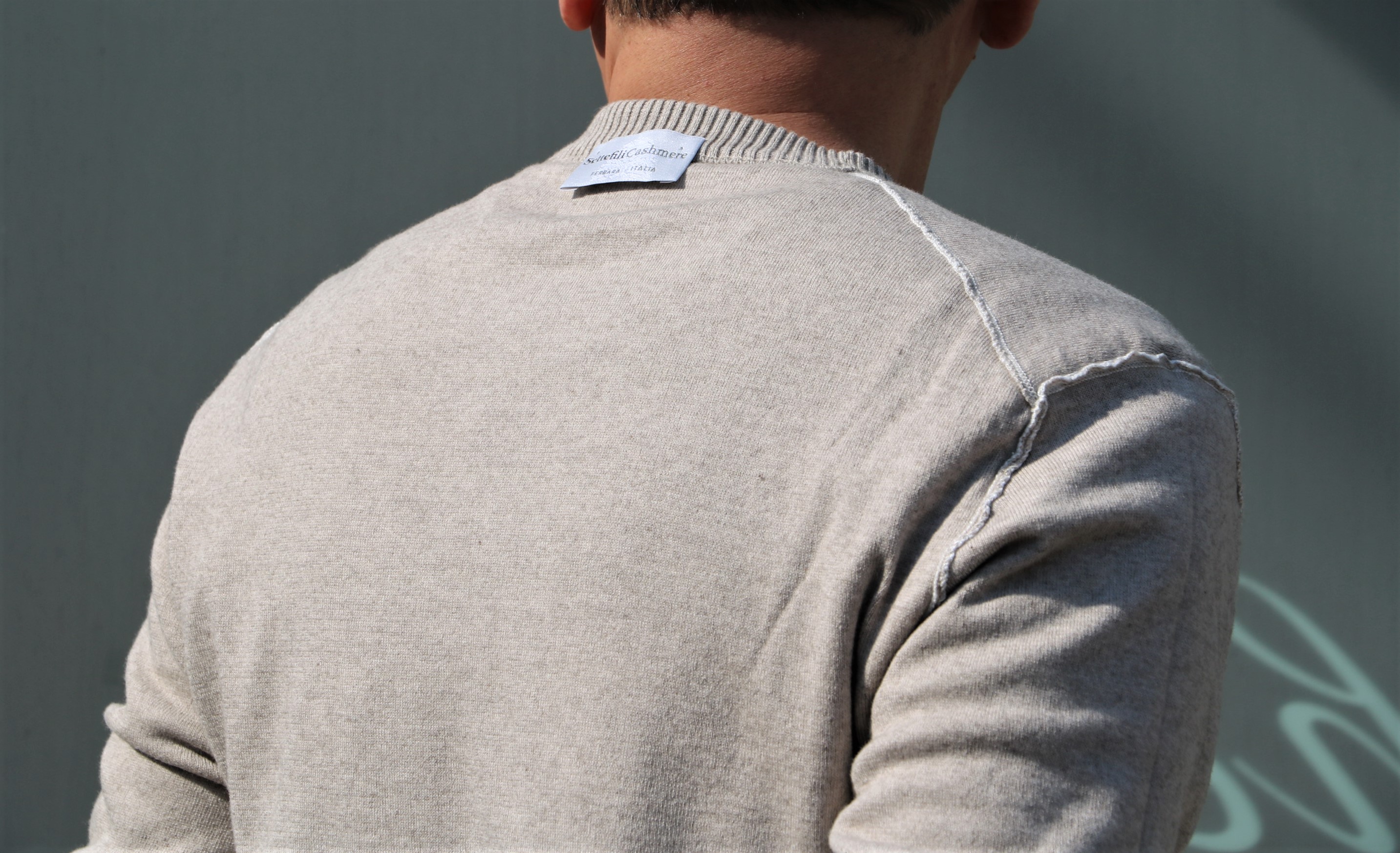 ニットは【Settefili Cashmere/セッテフィーリ カシミア】のもの。展示会で、こういう手もあったのかと感心しながらバイイングした優れものです。