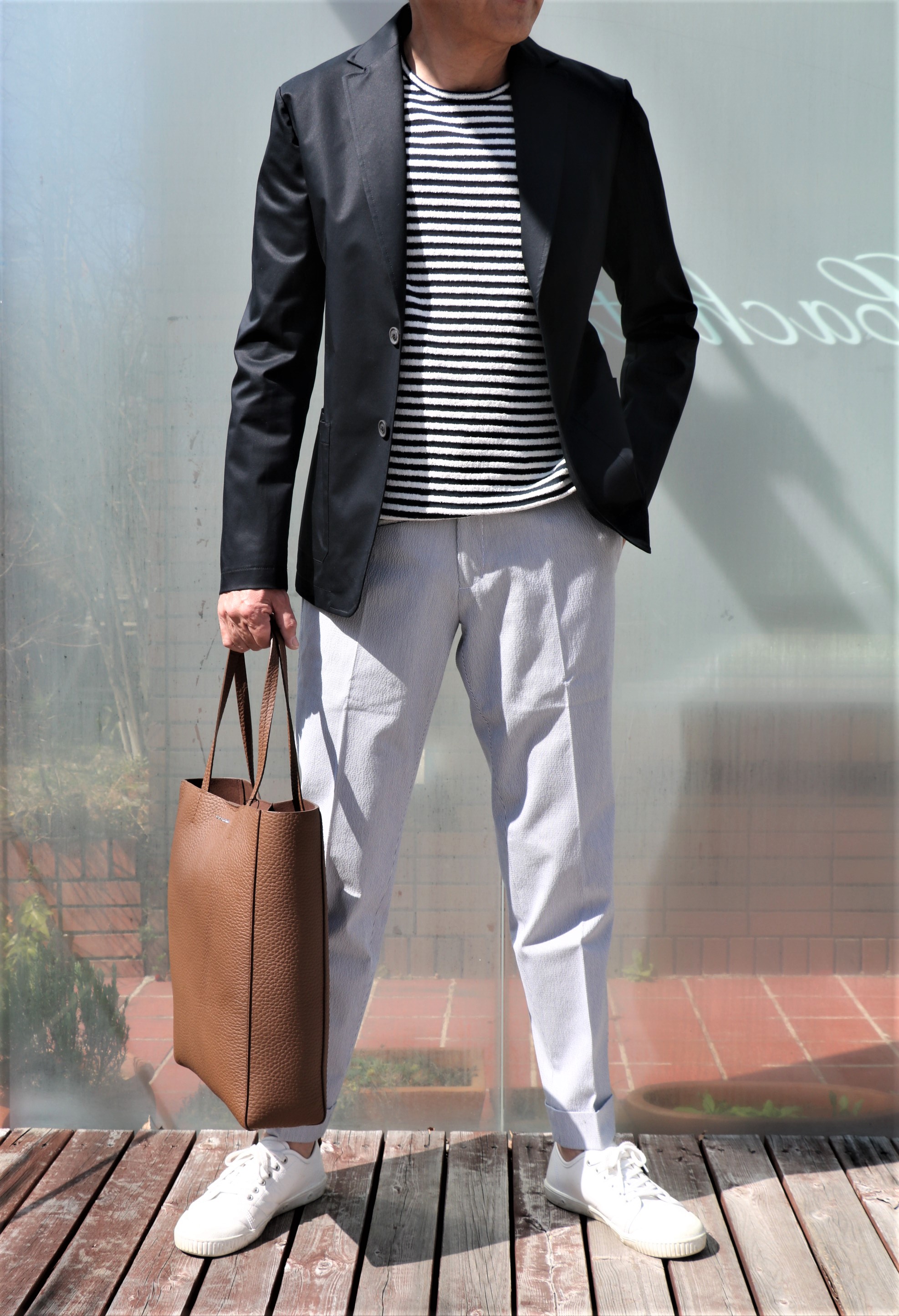 同じく【T-JACKET/ティージャケット】単品ジャケットのご提案です。その前に、ぜひお勧めしたいのが、Borelio(ボレリオ)のパンツ。2月8日のブログと、ご紹介が早かったせいもあり、やや置き去りになっているかもしれませんが、これから夏にかけて、いや夏にはかなり出番が多くなるヘビーユースのベビーコードレーンのサマーパンツです。そして、ボーダーのニットは待ちに待ったPHIL PETTER(フィルペター)の新作。あの伝説となった?いやリピート率ナンバーワンを誇る、あのTシャツも入荷してきております。手に持っているバッグも気になる?そうですよね。少し待っていてください。