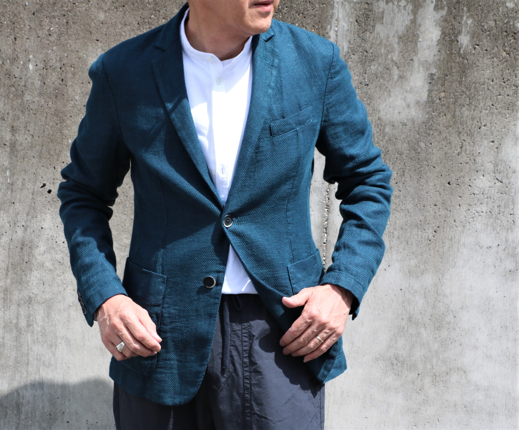 MODEL:ホップサック調 ピーコックグリーンシングルジャケット