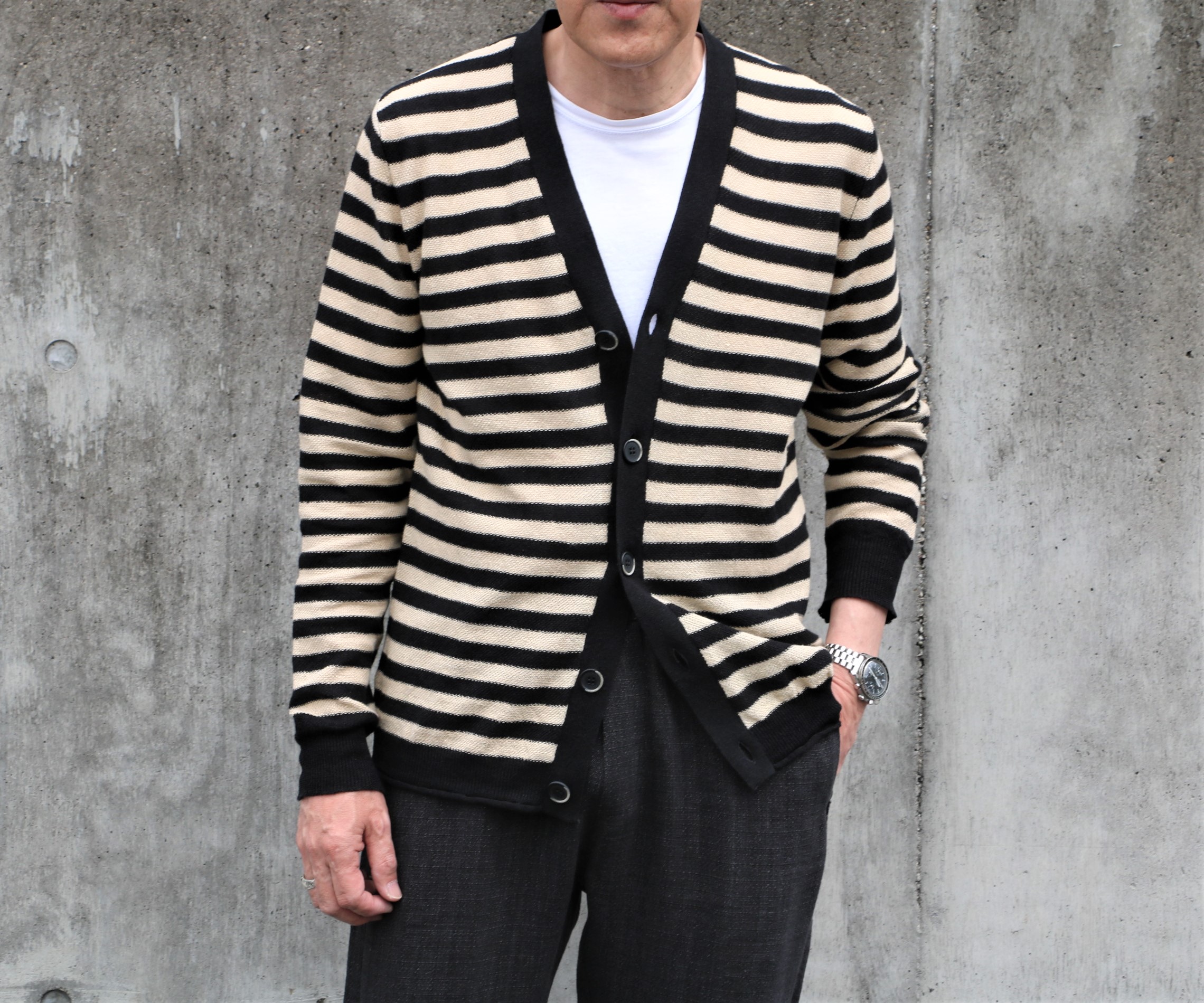 MODEL:リネン・コットン ボーダー柄カーディガン