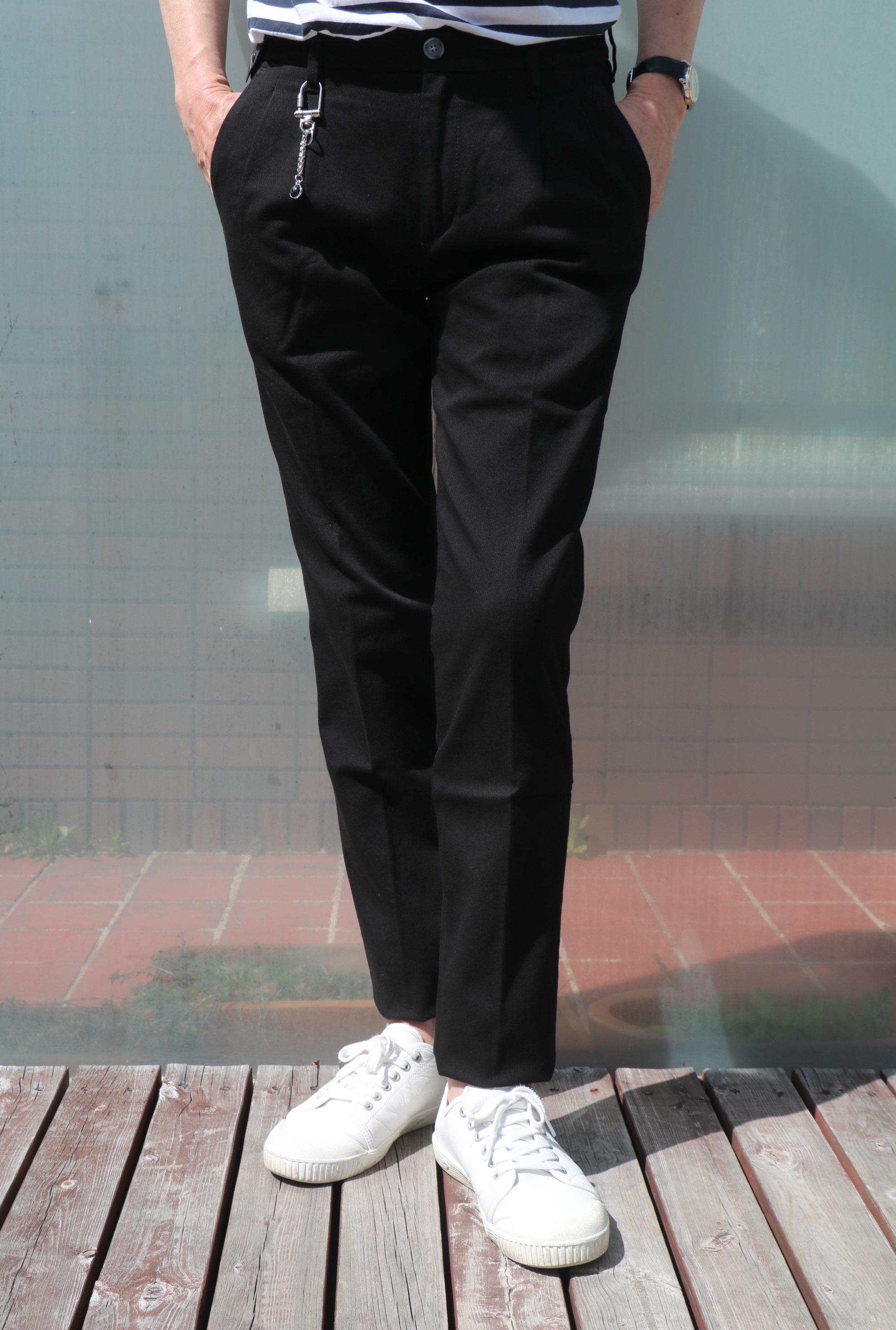 MODEL:コットンストレッチ ブラックパンツ