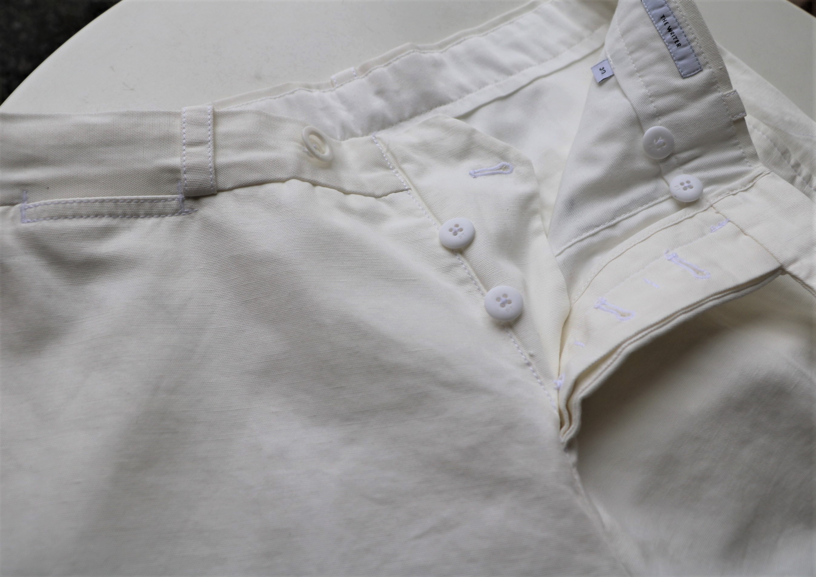 コットン・リネンのワイドストレートのフォルムを持つモデル「ReWorked」。再作業とか再加工の意味を持つリワーク。それぞれの職業をイメージして作られています。こちらは「THE WRITER」。煙草に火をつけるライター...いやいや、作家さんのことです。記者とかの意味もありますね。どこかで見覚えが...そうです。このモデルは昨年も展開。説明文も引用しております。