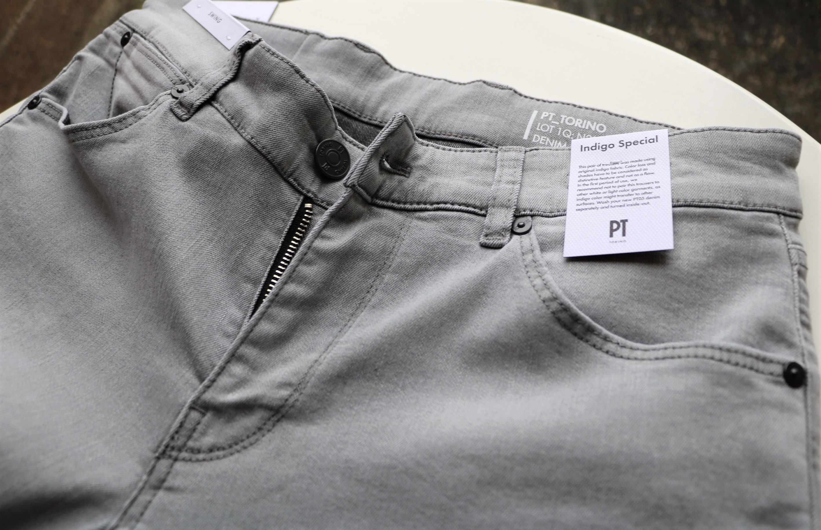 2日前のブログ、SAVE THE DUCK(セイブ ザ ダック)のナイロンアウターのご案内の際に穿いていたデニムも【PT TORINO/ピーティートリノ】。「DENIM」シリーズからライトグレイのご提案です。