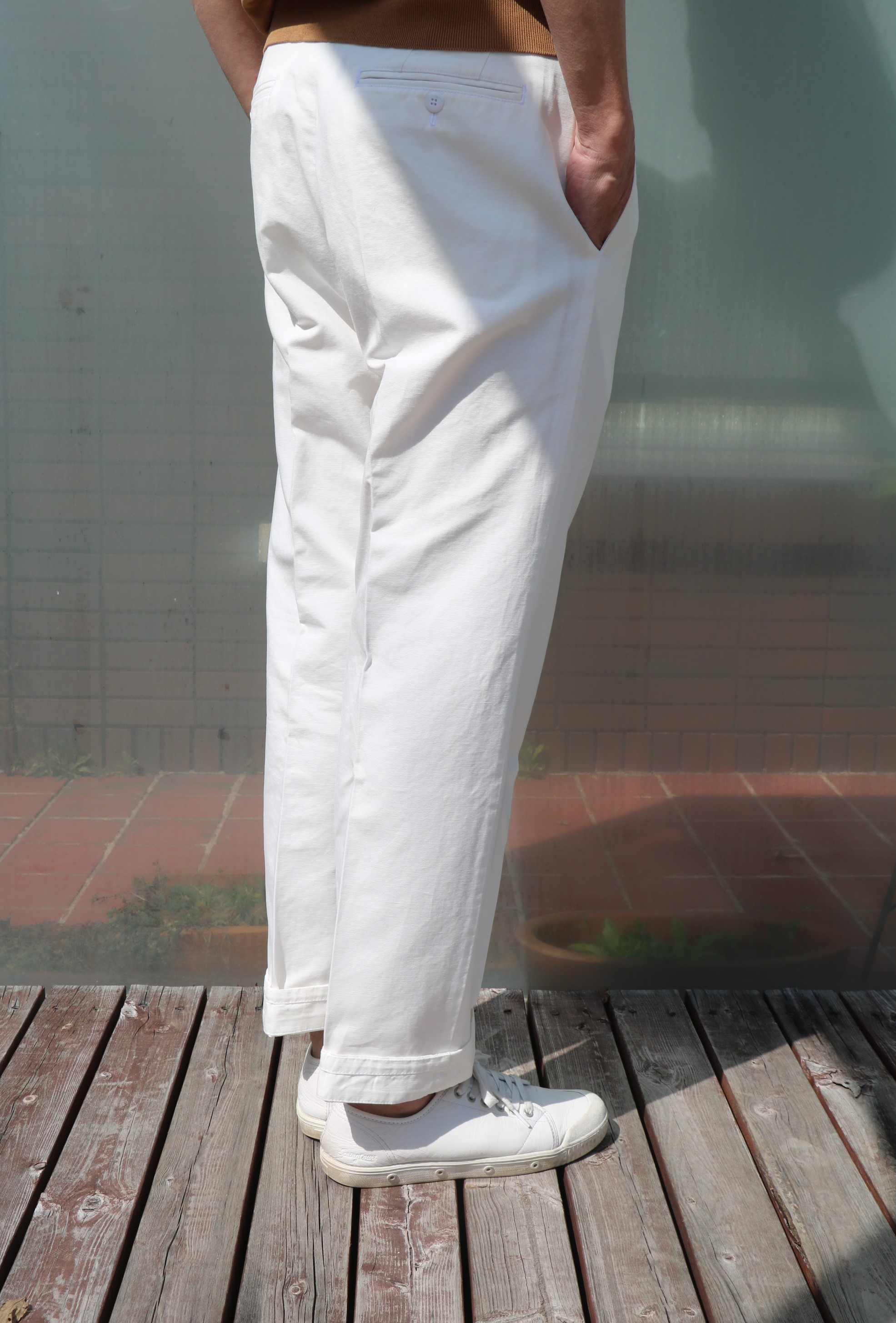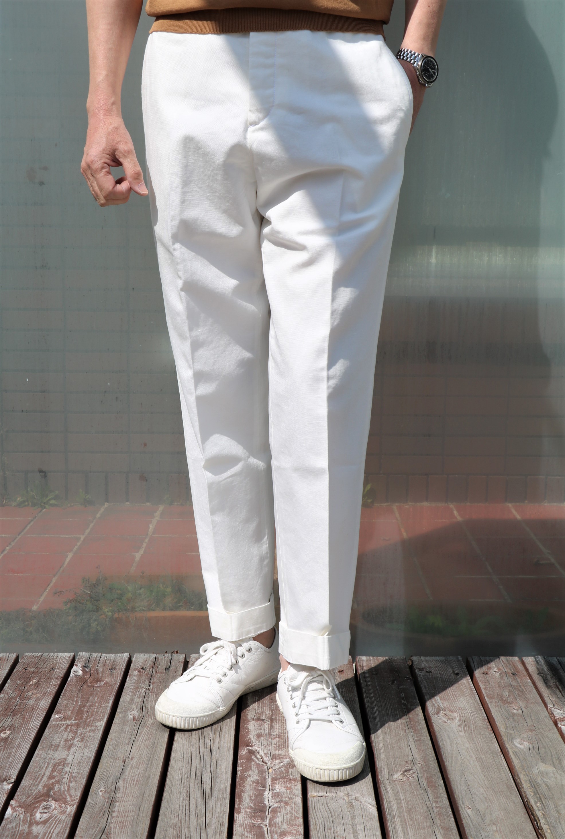 本日は、生憎の雨の為、撮影はできません。過去のブログや未公開の、コーディネートはしたけど、ご紹介できていないパンツをご提案させていただきます。