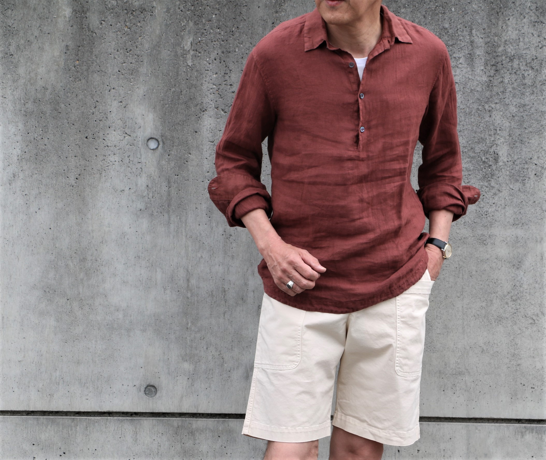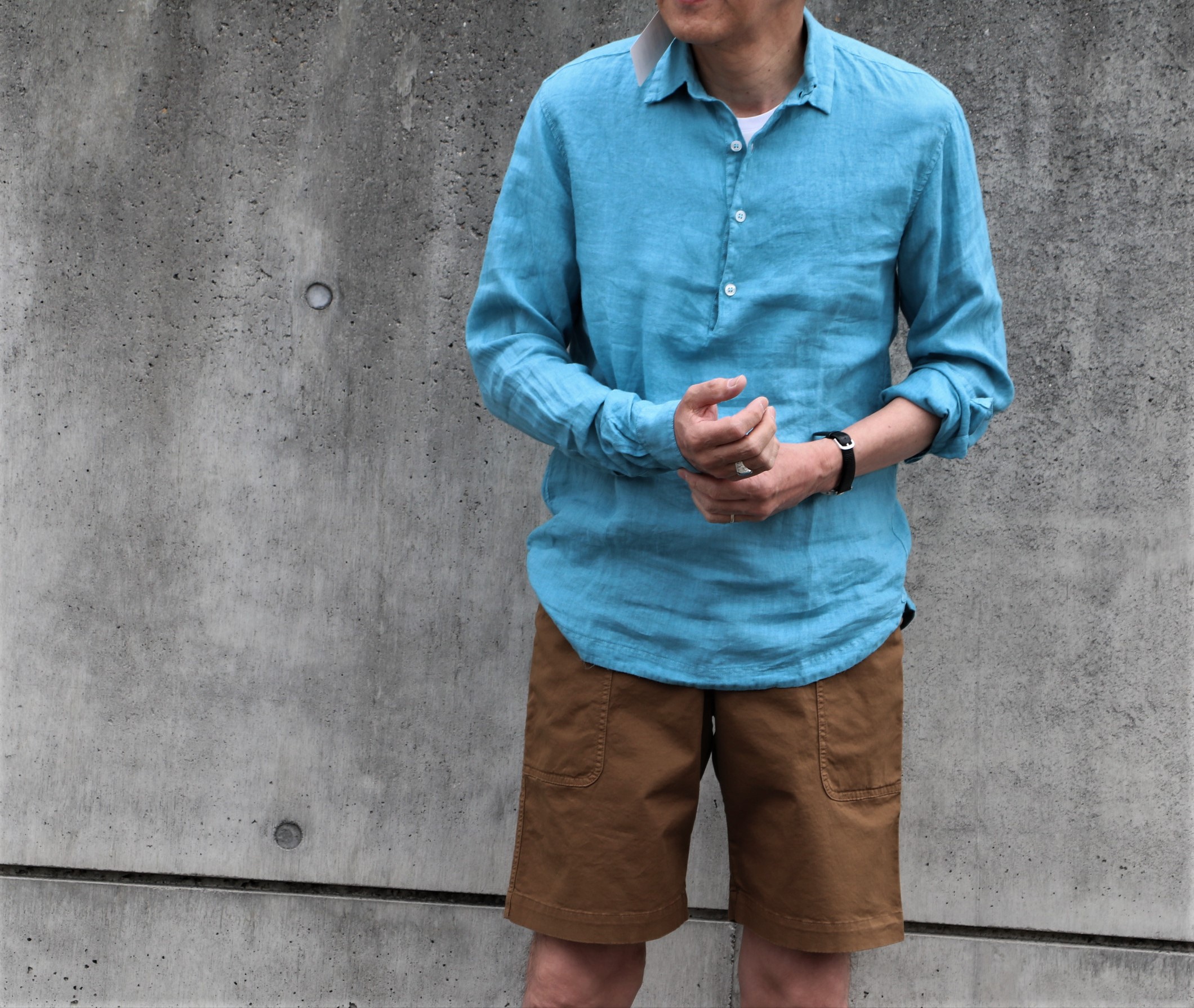 高温多湿の日本の夏。風の心地よさを最も感じることができるのがリネン素材です。同型のプルオーバーで、ただ、こちらはロングスリーブが似合います。イタリア語の"焼いた土"を意味するテラコッタとトルコ石の緑がかった青のターコイズブルーの2色をセレクト。ベネチアの空気を感じてもらえるはずです。