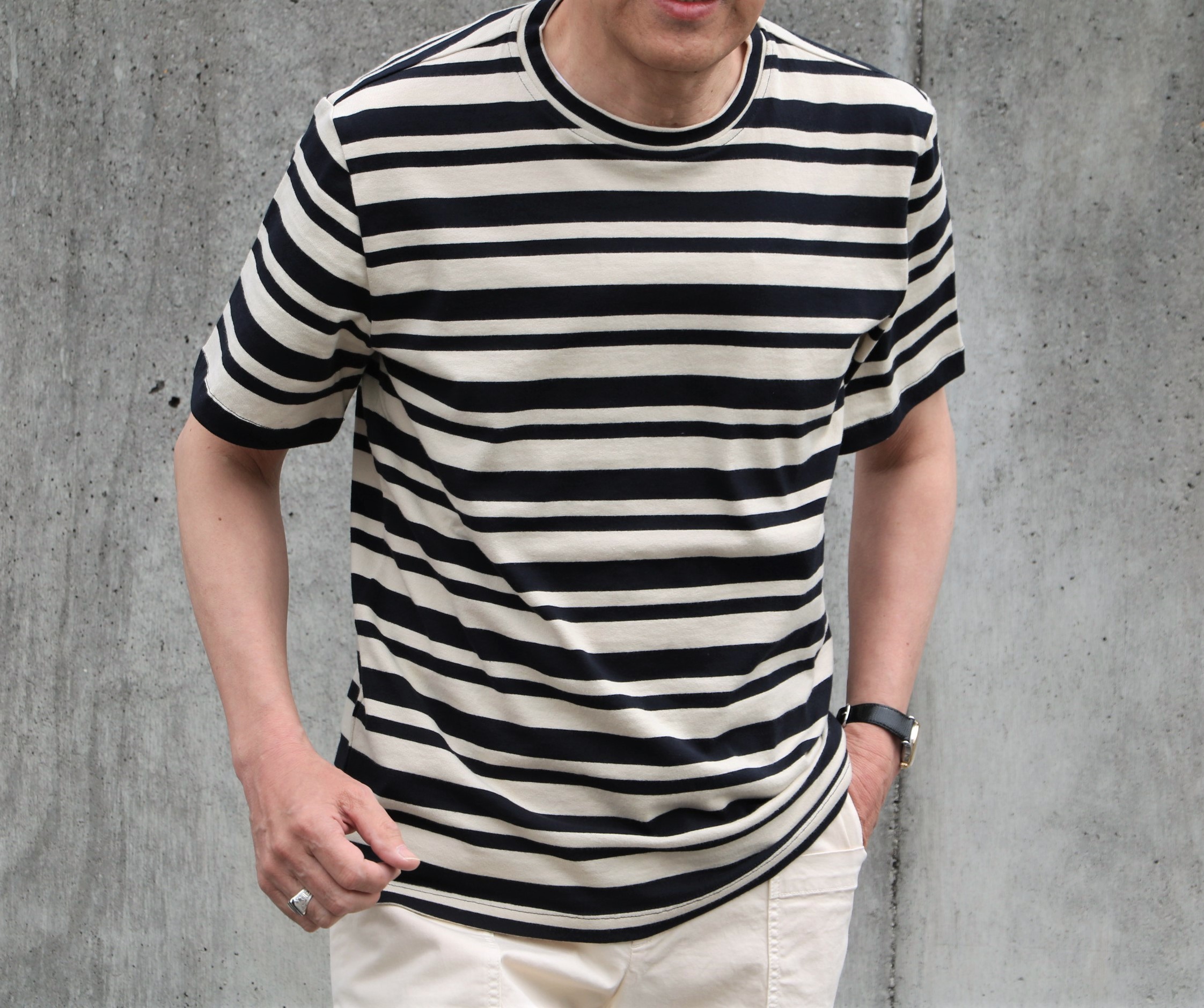 MODEL:コットンボーダー柄クルーネックTシャツ