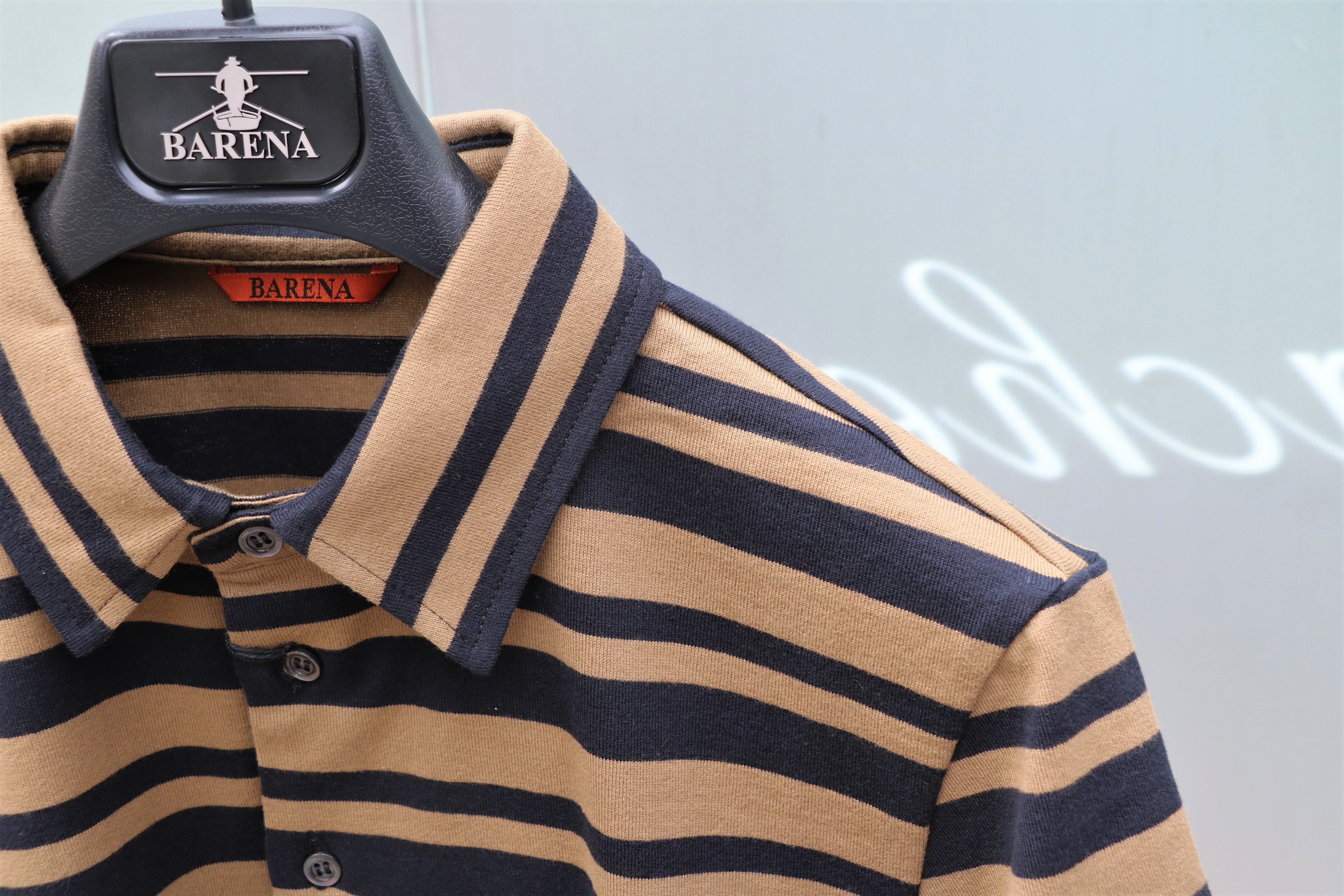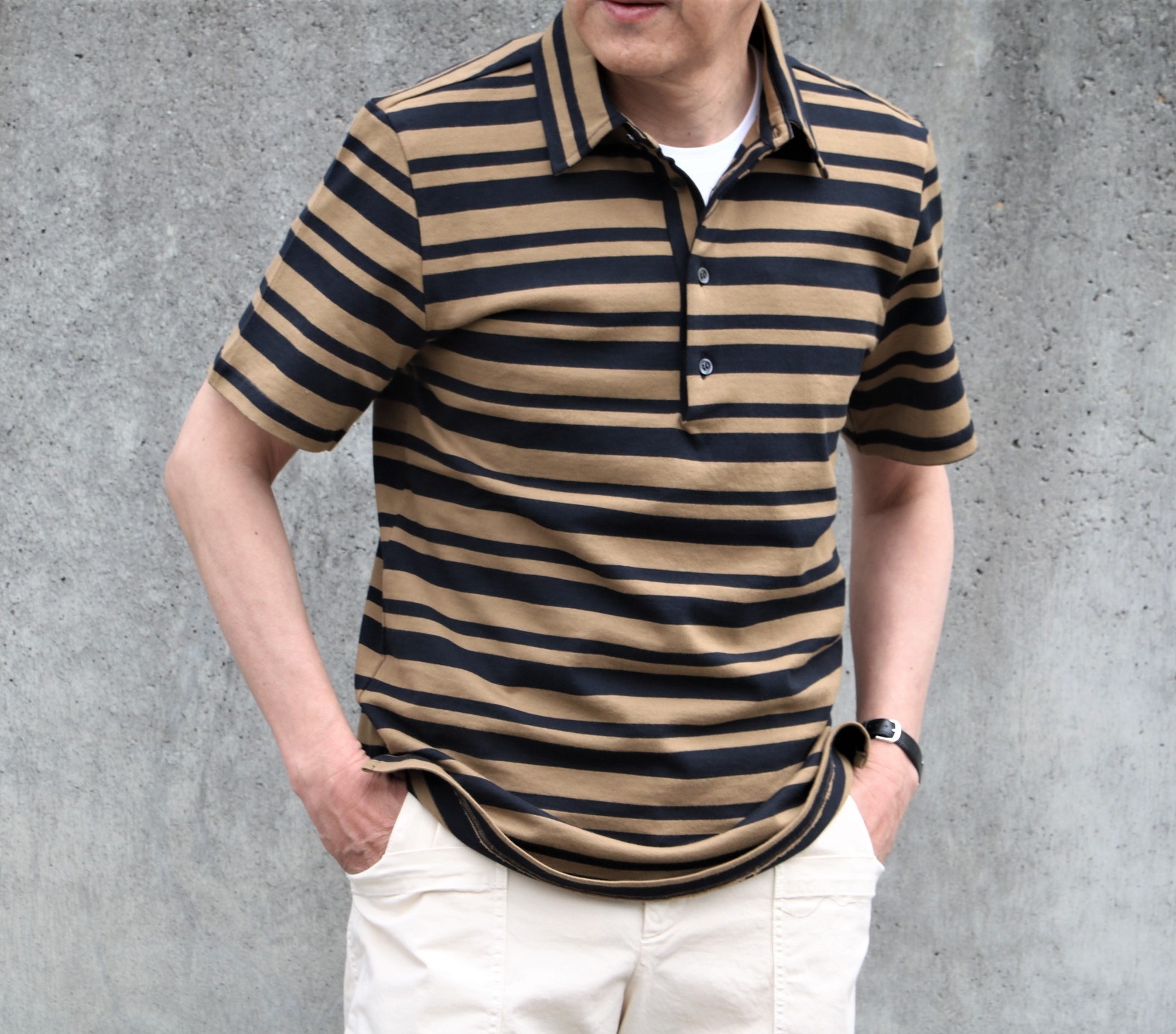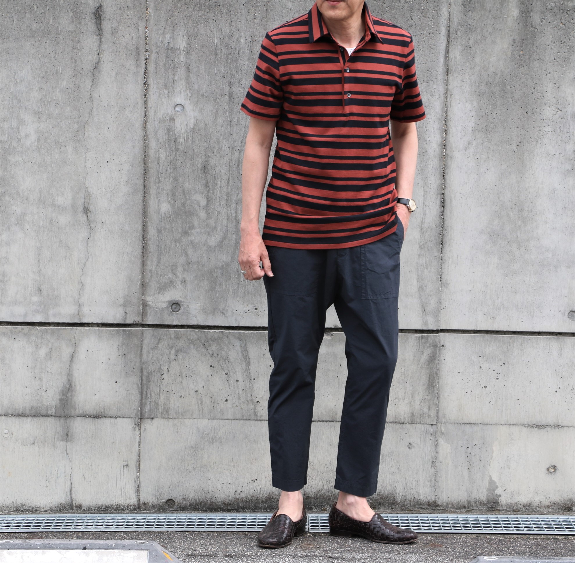 ボーダーのクルーネックTシャツは、世の中に多いだけに、襟付きを中心にセレクト。ただ、この配色は見送れません。